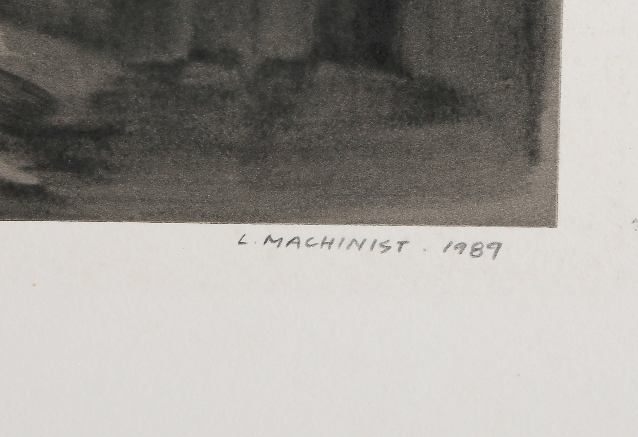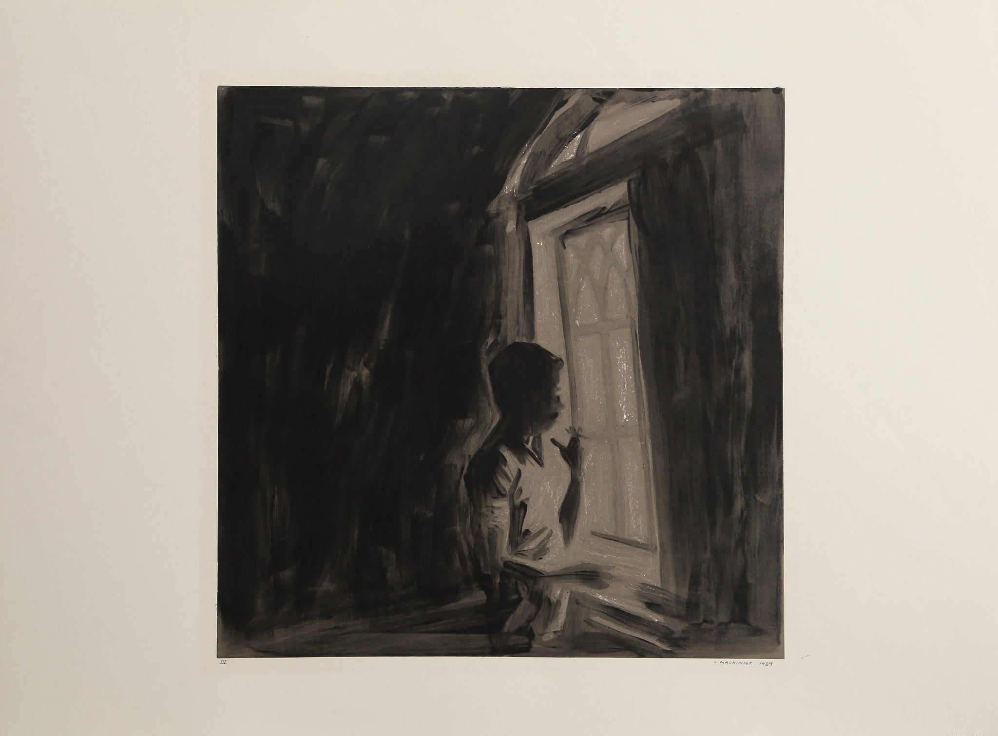 Delve into the profound emotional depth of this haunting hand-signed monotype from the prestigious Waterford Series, featuring a contemplative scene of a boy and man in a dark interior setting, with one figure smoking by a window. This powerful piece by Leslie Machinist exemplifies the Impressionist movement's approach to Portraits and Interior scenes, where light filtering through the window creates dramatic contrasts that illuminate the psychological complexity of confinement and contemplation. The artwork bears the authentic Waterford Series blind stamp in the bottom right corner, certifying its place in this important artistic collection. Perfect for collectors who appreciate narrative-driven art that explores themes of isolation, reflection, and the human condition through masterful Impressionist techniques and atmospheric interior compositions.