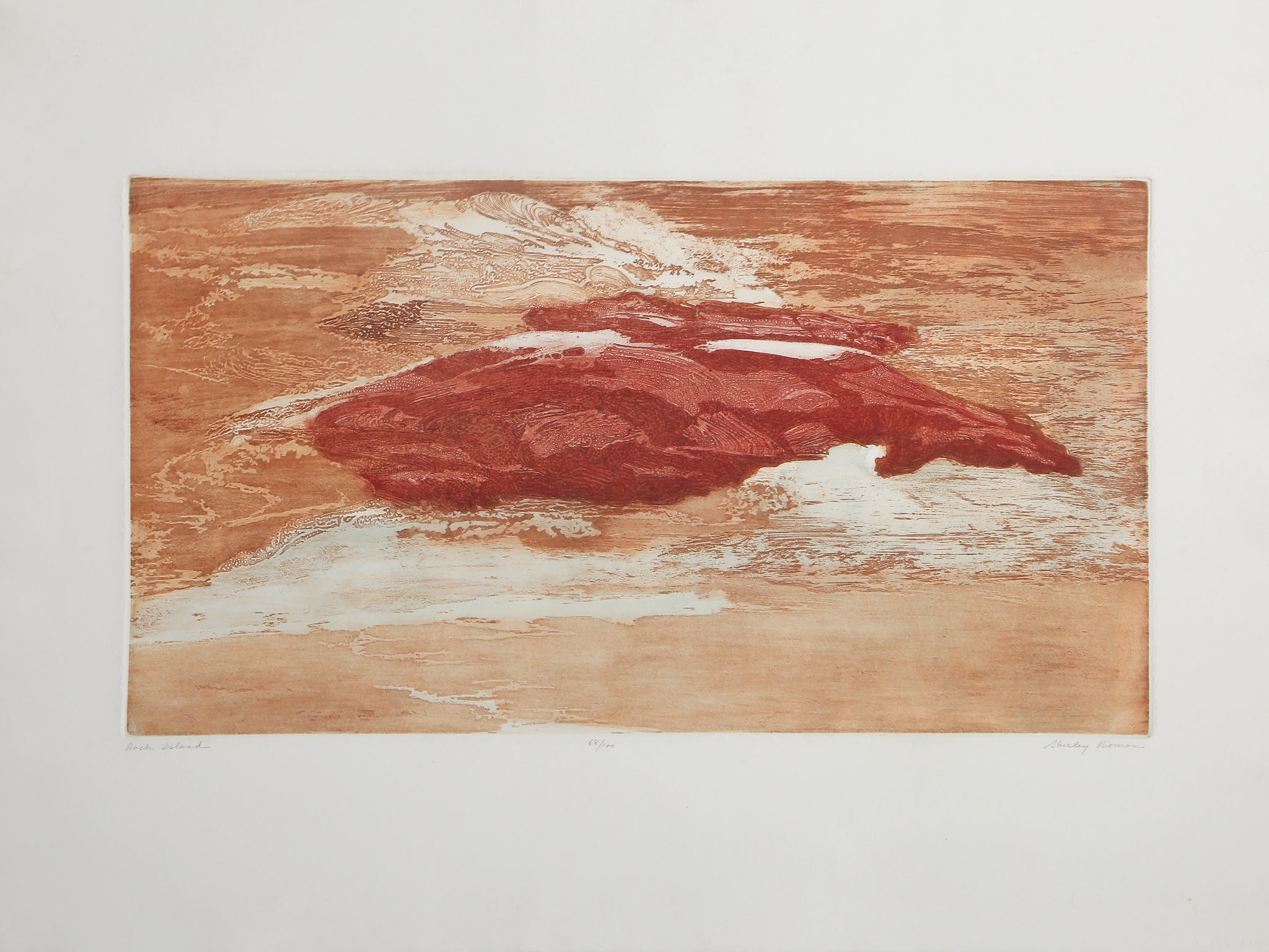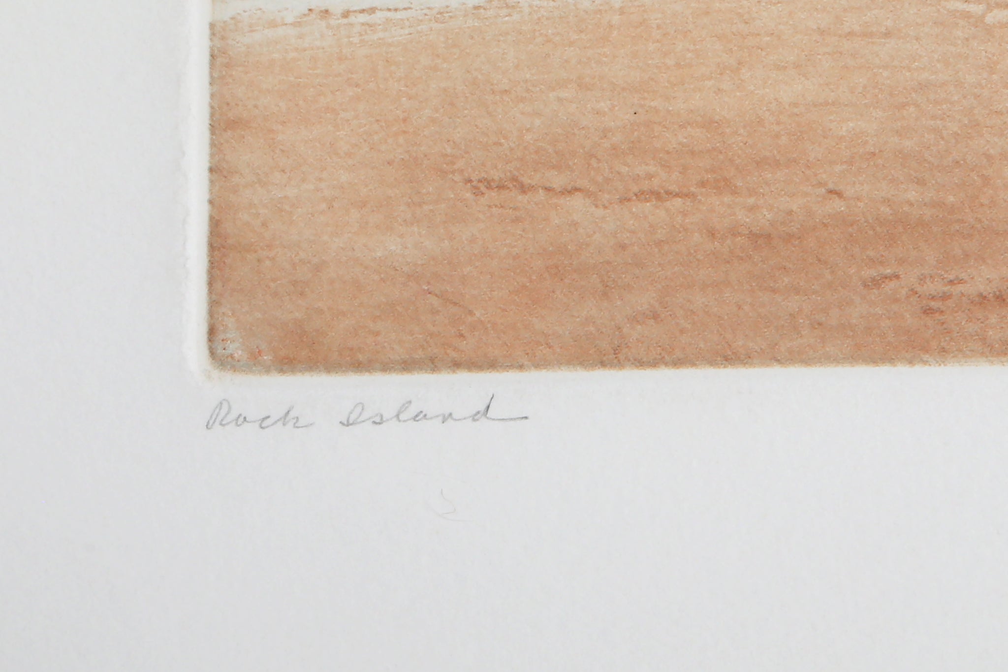 Experience the serene beauty of this exquisite hand-signed landscape etching that captures the rugged charm of Rock Island with masterful Impressionist technique. This numbered print features rich textured surfaces that bring the natural landscape to life, showcasing the artist's skillful interpretation of light and shadow across the island's distinctive terrain. The piece bears the prestigious Bermond blind stamp in the bottom right corner, authenticating its quality and provenance. Perfect for collectors who appreciate the timeless appeal of Impressionist landscapes and the enduring beauty of island scenery rendered with exceptional artistic detail.