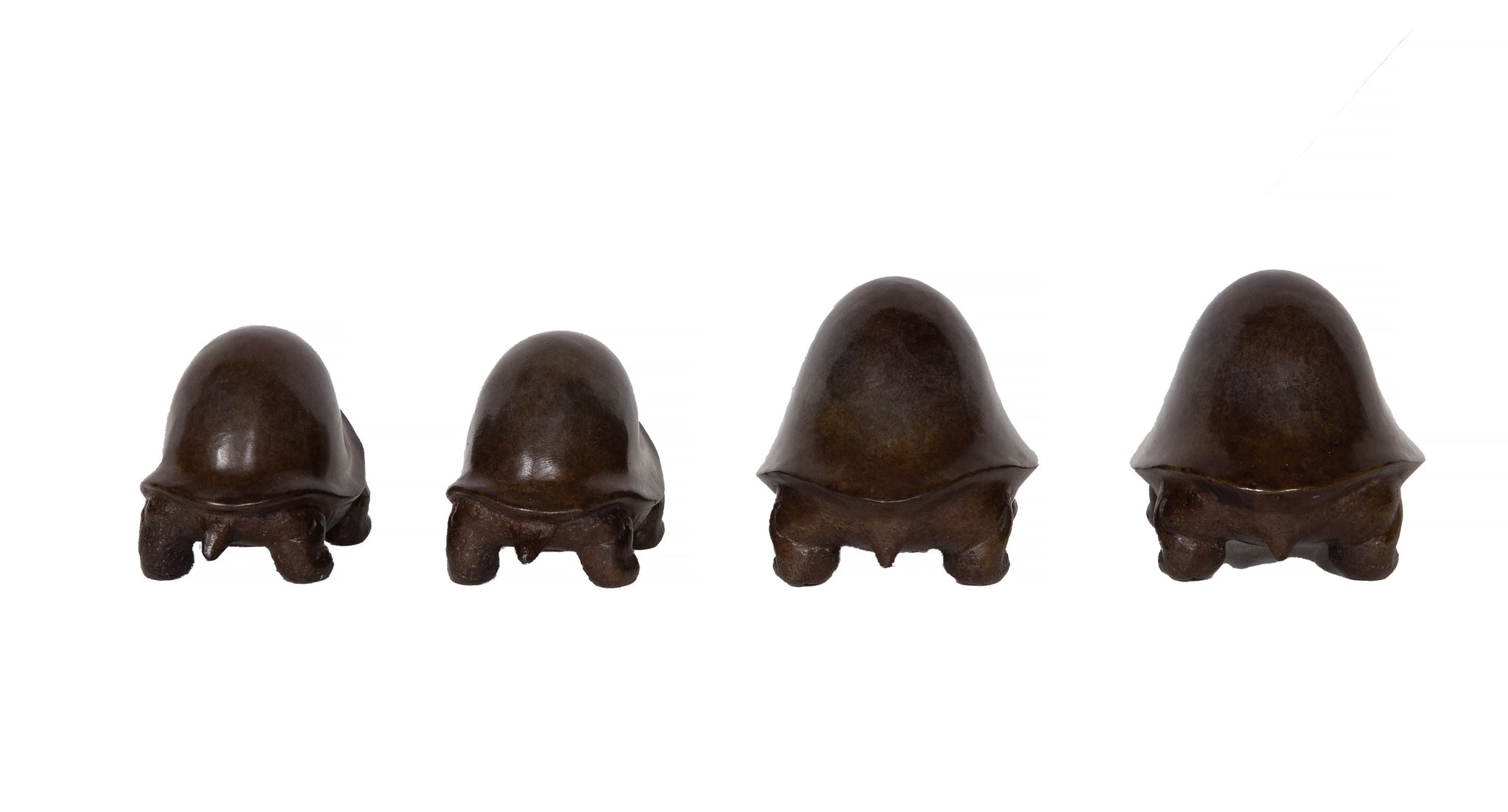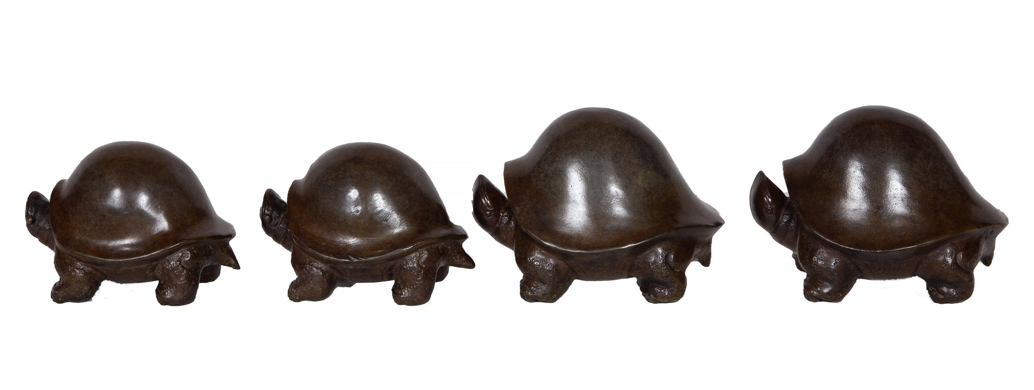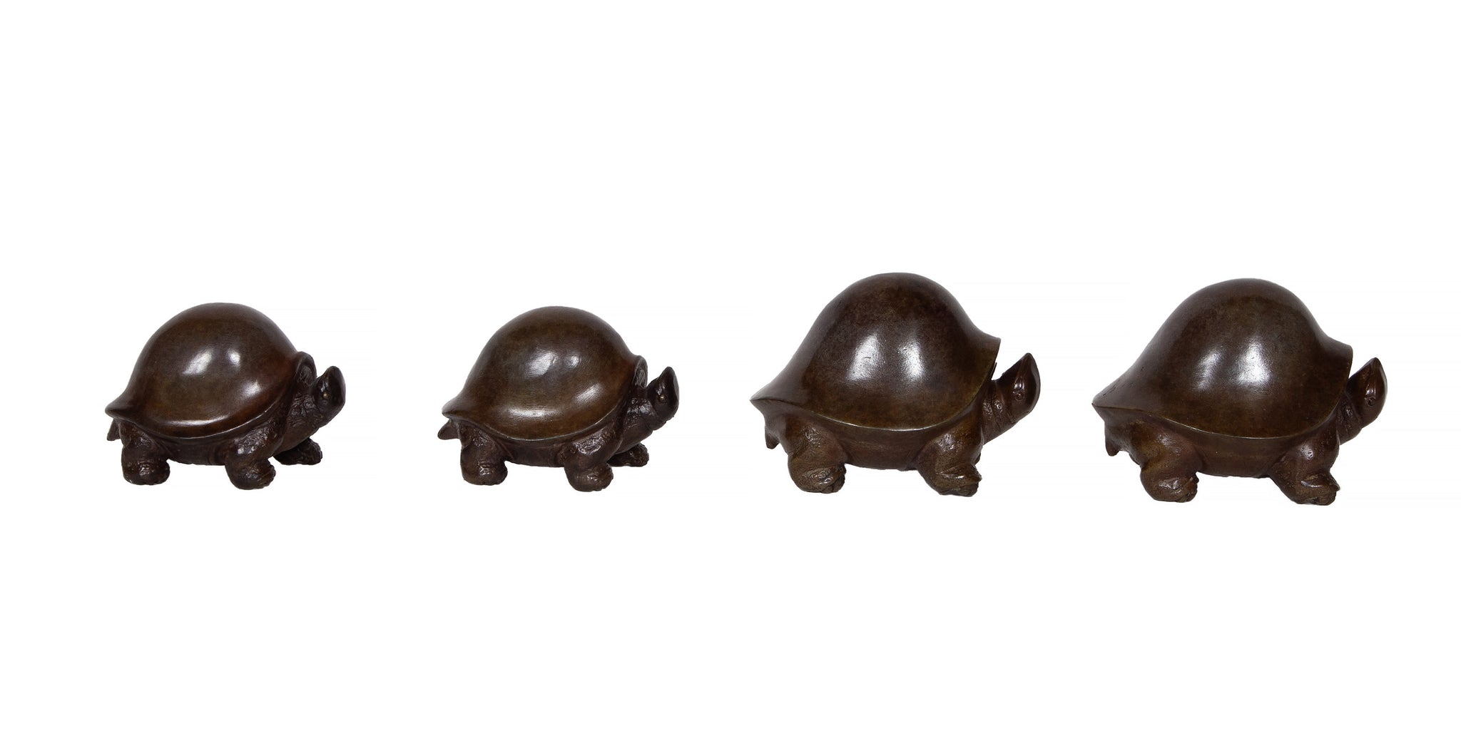 Unknown Artist - Turtle Set. Medium: Bronze Sculpture, Image Size: Large turtles: 5 x 4 x 3.5 inches, Frame Size: Small Turtles: 4 x 2.5 x 3 inches
