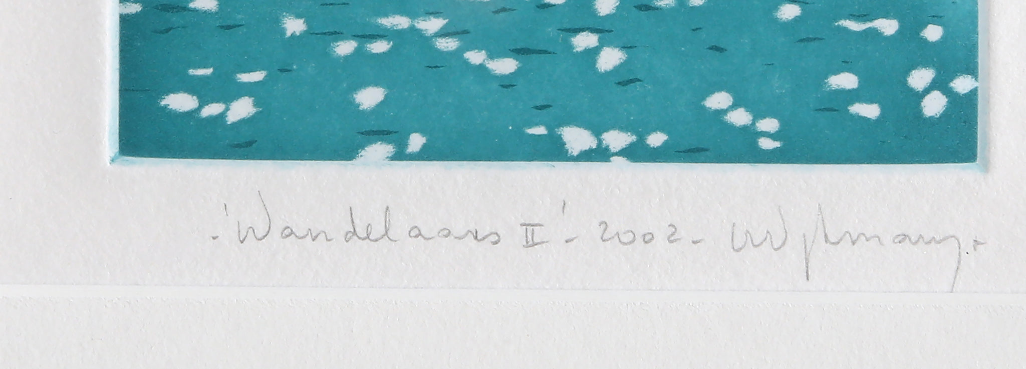 Anne Dykmans, Belgian (1952 - ) - Wandelaars II. Year: 2002, Medium: Mezzotint, signed, titled, numbered and dated in pencil, Edition: 50, Image Size: 2.5 x 3.5 inches, Frame Size: 12 x 18 inches