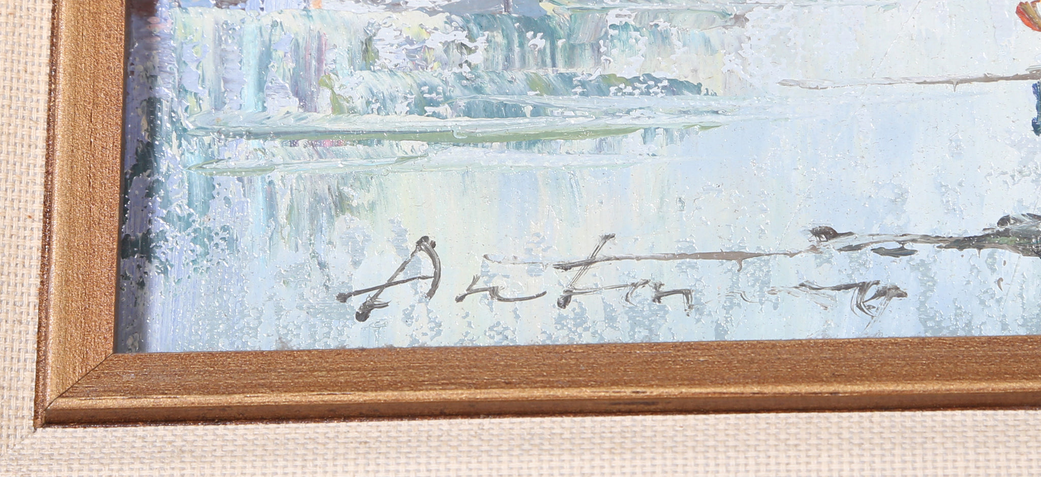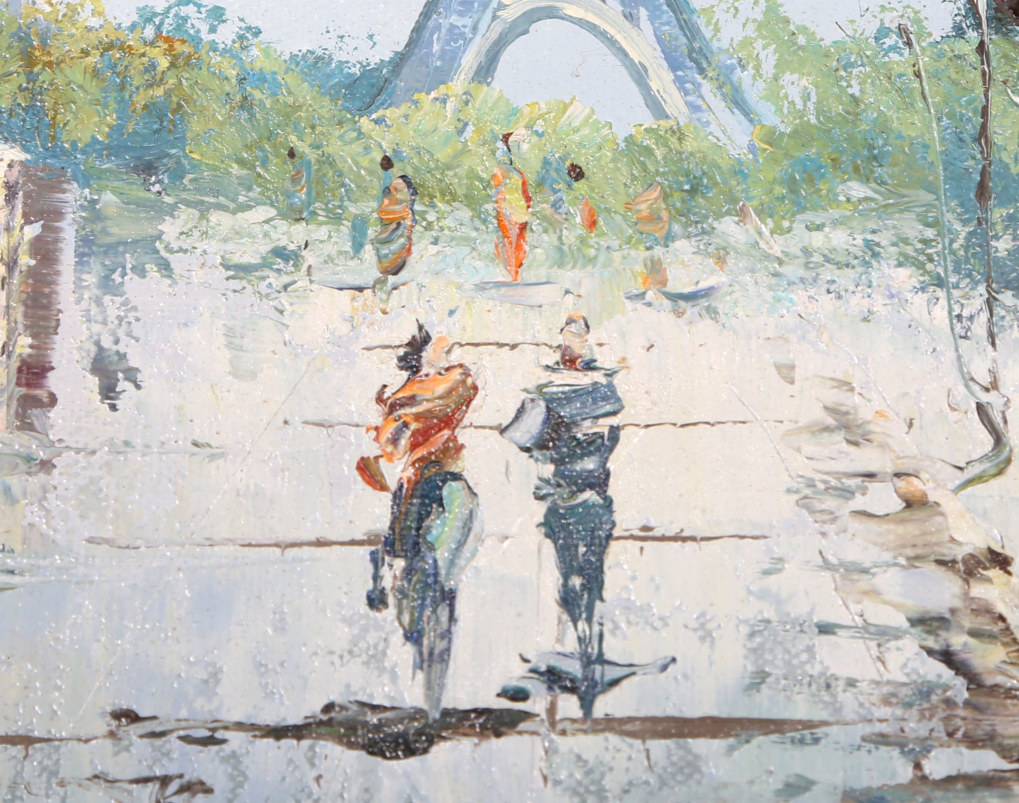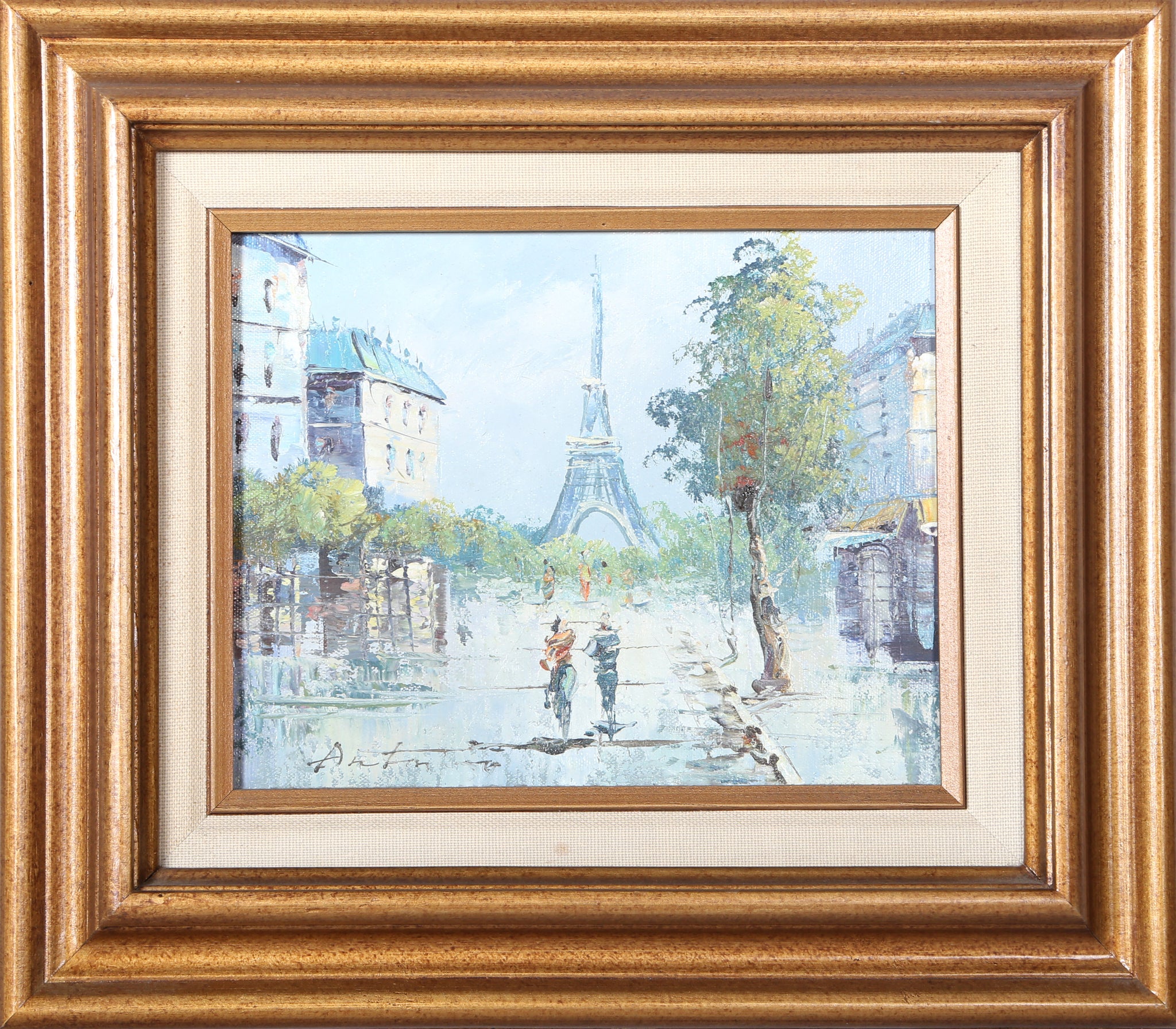 Anton - Eiffel Tower Cityscape . Medium: Acrylic on Canvas, Signed, Size: 8 x 9.5 in. (20.32 x 24.13 cm), Frame Size: 13.5 x 19.5 inches