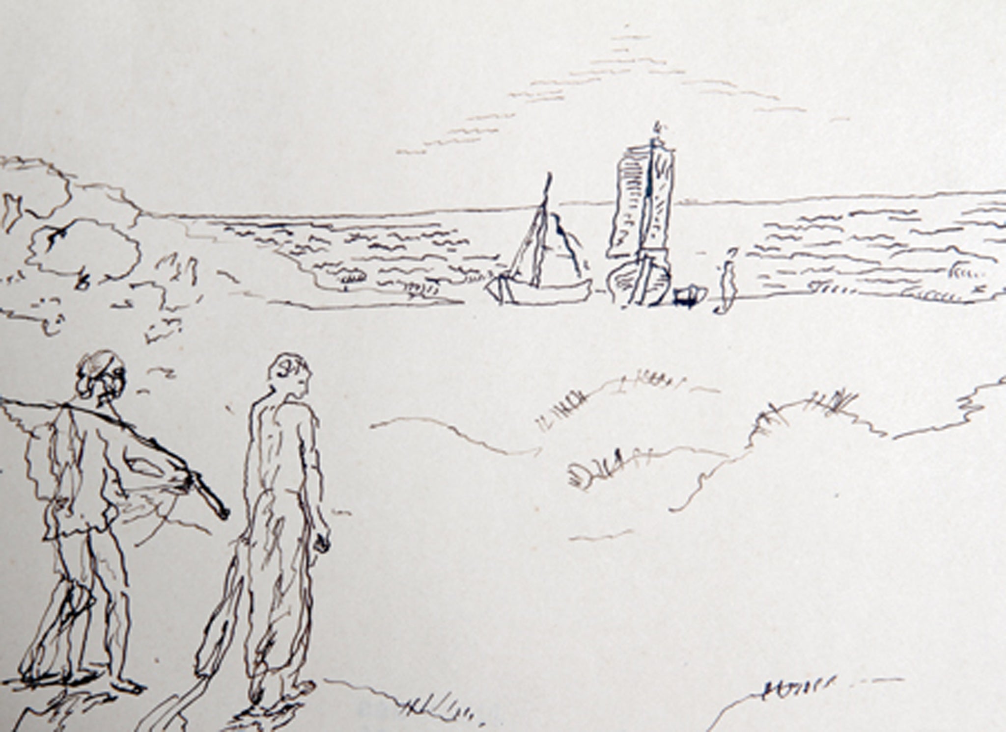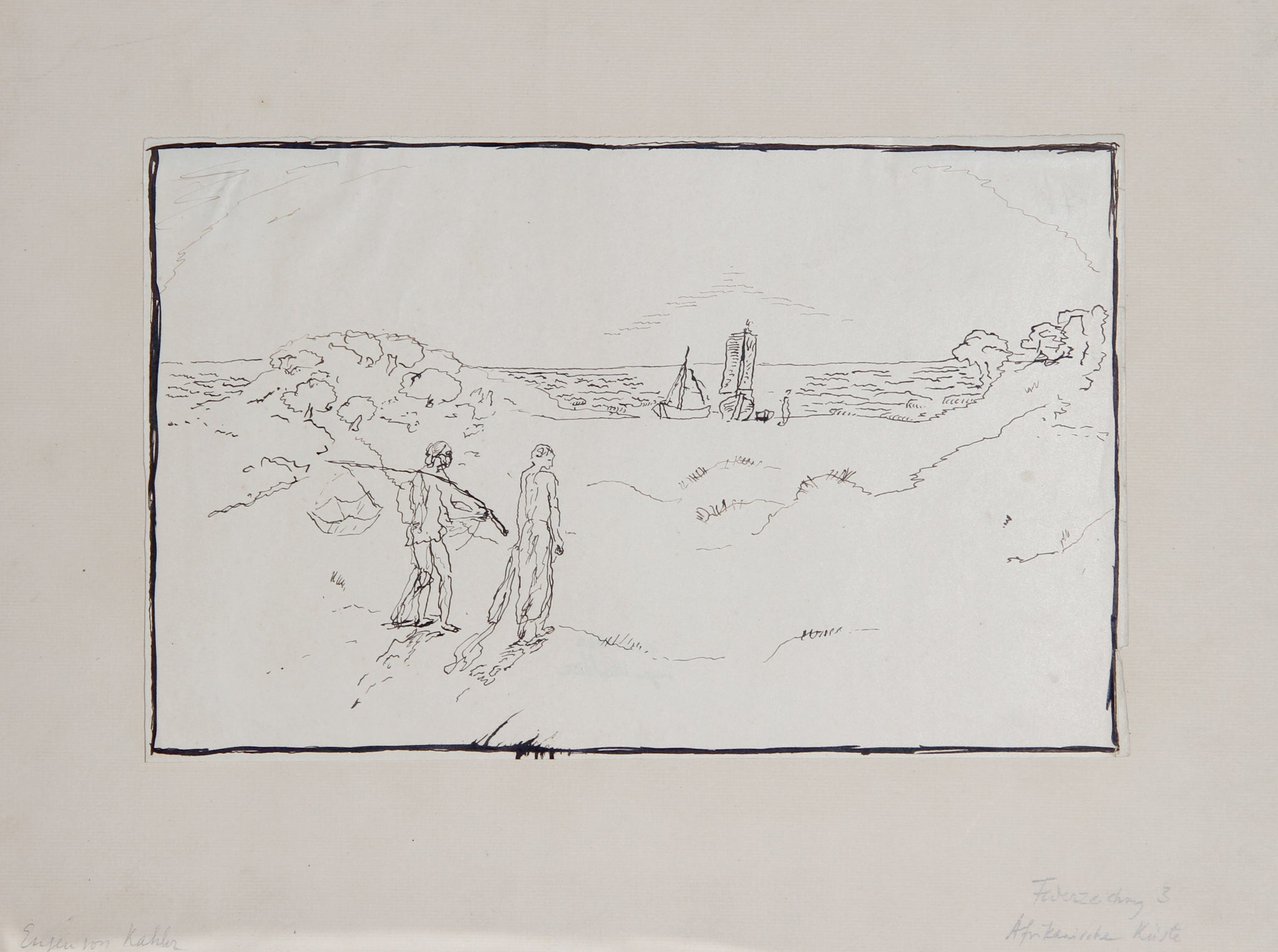 Eugen von Kahler, Czech (1882 - 1911) - African Coast. Medium: Pen Drawing, signed, titled and medium labeled in pencil, Image Size: 13.5 x 17 inches, Size: 18 in. x 13 in. (45.72 cm x 33.02 cm)