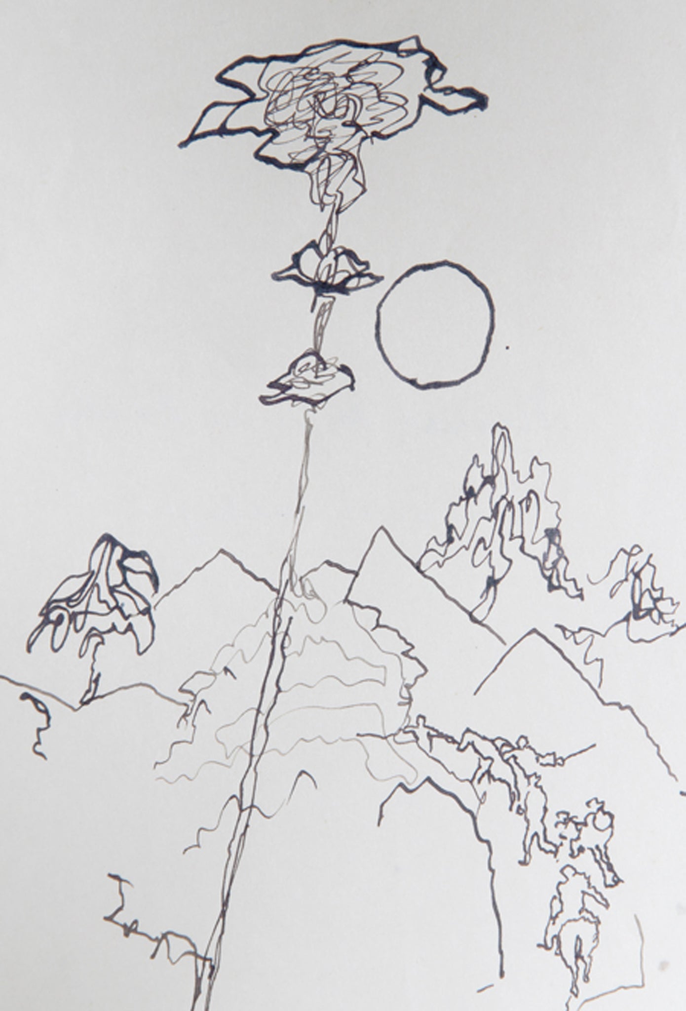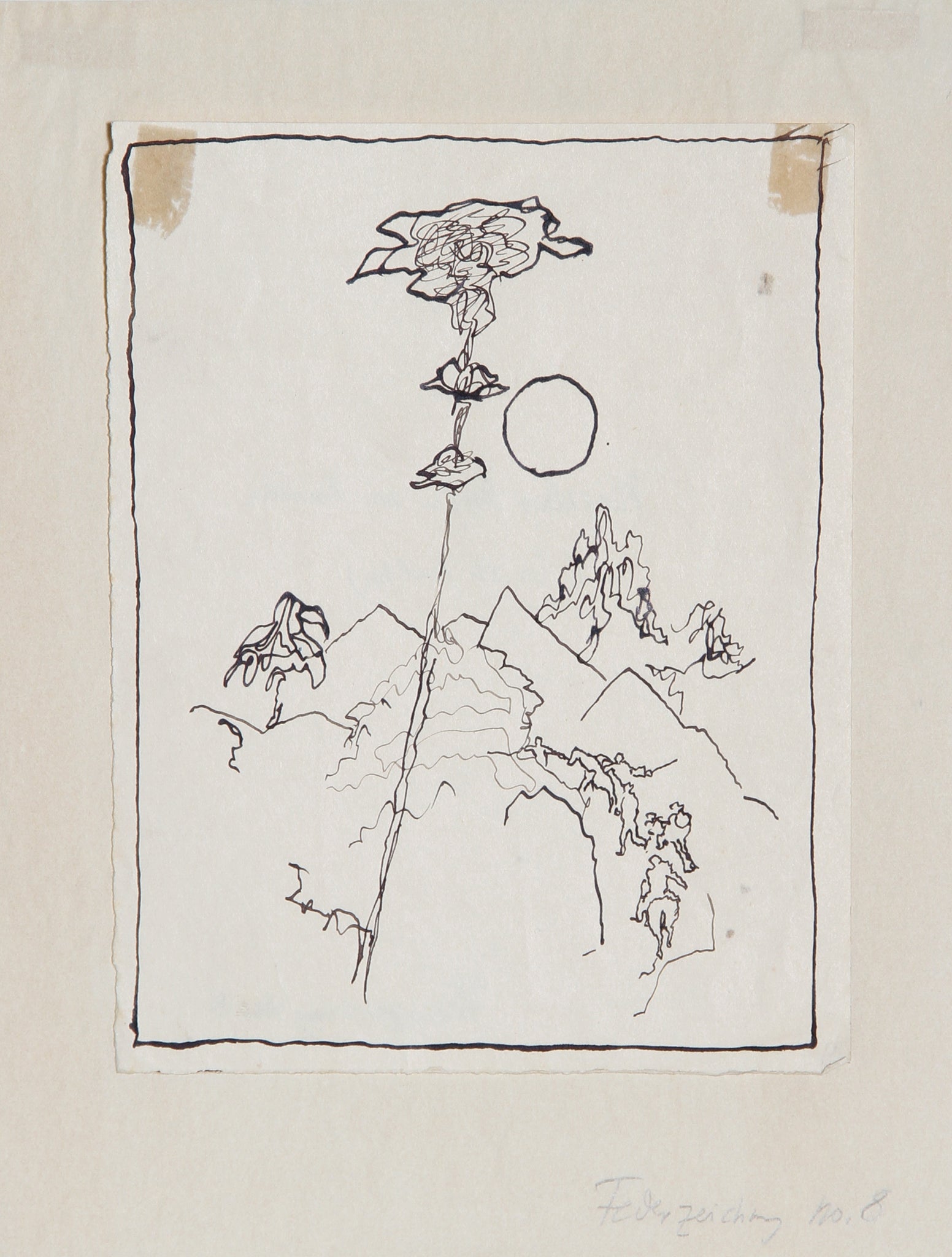 Eugen von Kahler, Czech (1882 - 1911) - Flowers with Mountain. Medium: Ink on Paper, Image Size: 8.5 x 6.5 inches, Size: 11 in. x 19 in. (27.94 cm x 48.26 cm)