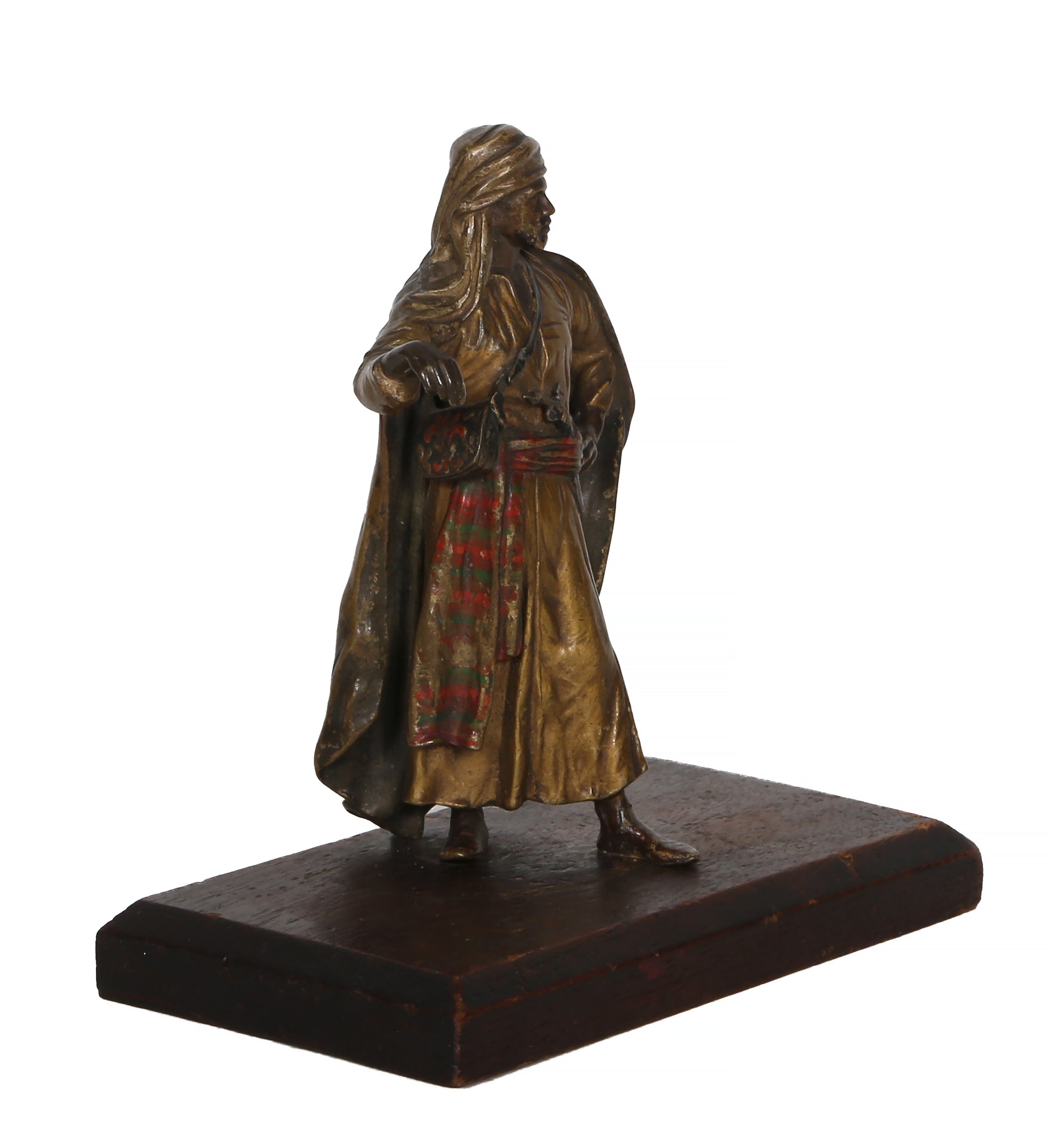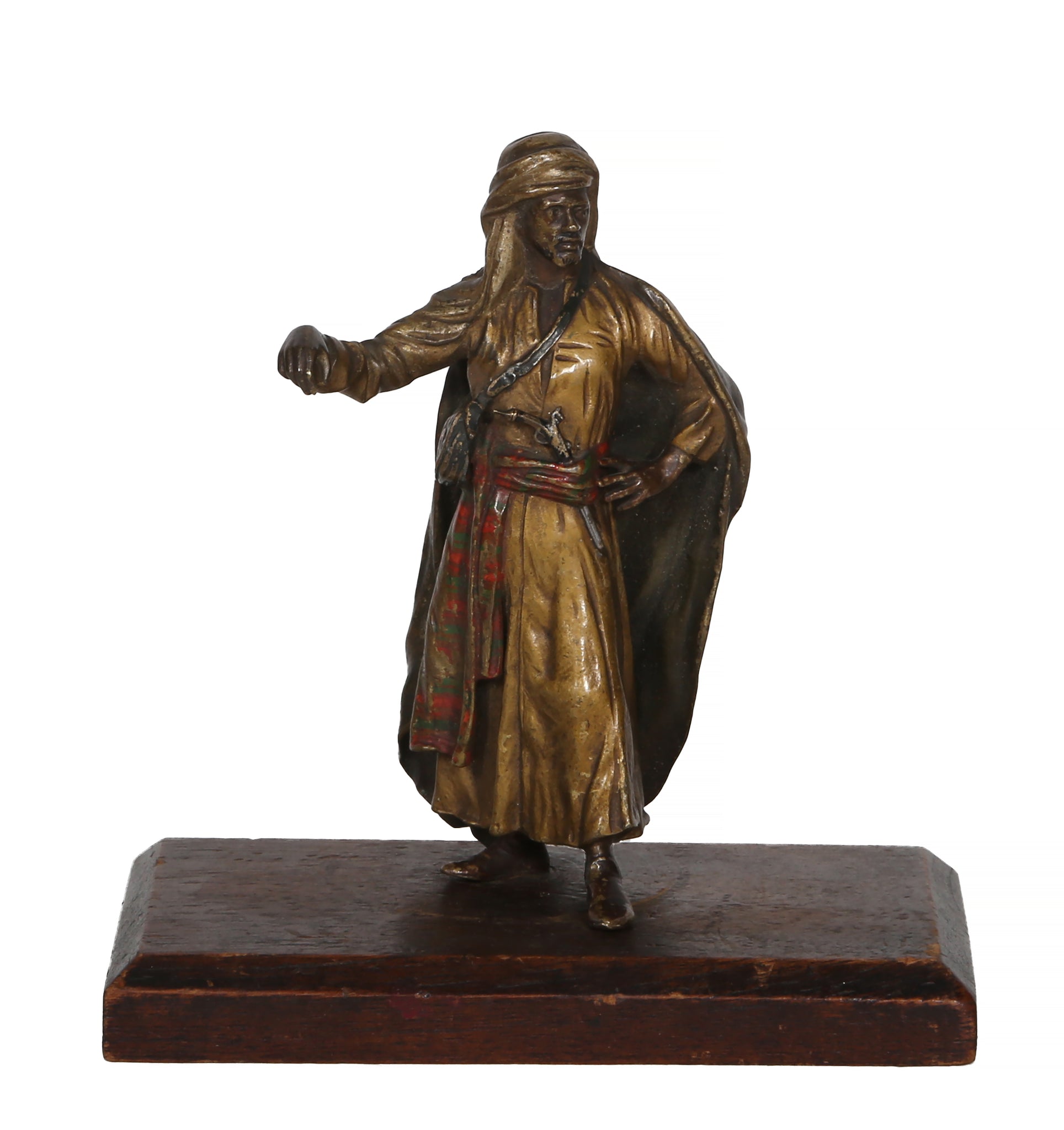 Franz Bergman, Austrian (1861 - 1936) - Soldier. Year: circa 1900, Medium: Cold painted Bronze sculpture, Size: 5.5 x 3 x 2 in. (13.97 x 7.62 x 5.08 cm)