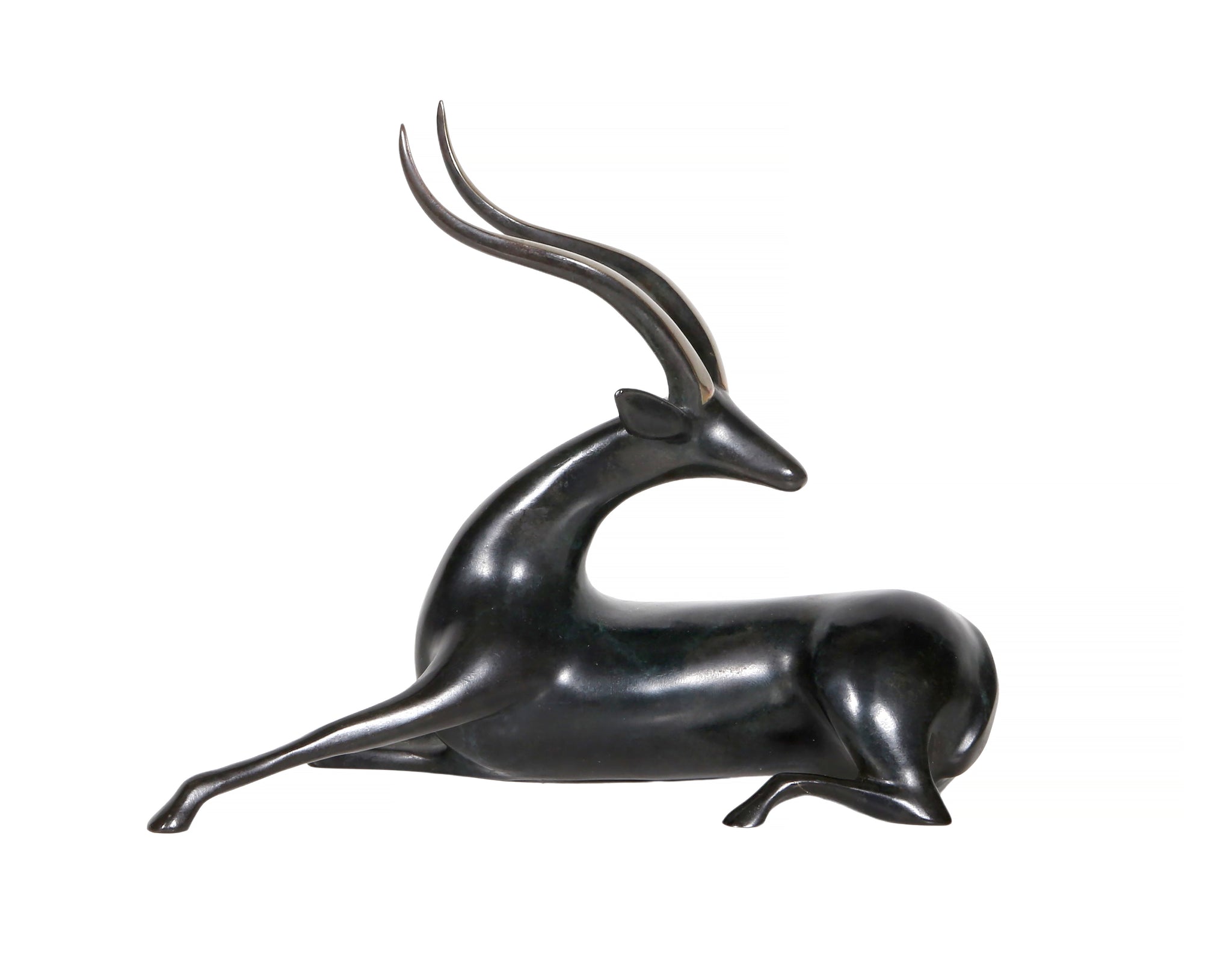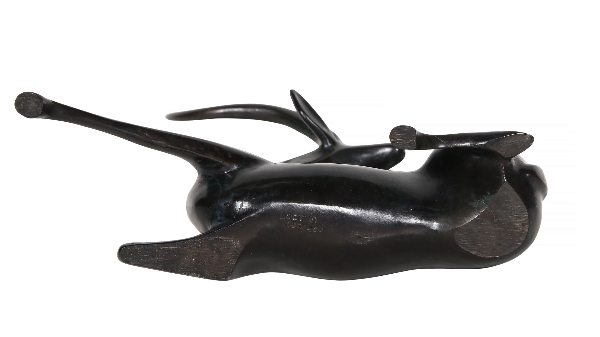 Loet Vanderveen, Dutch (1921 - 2015) - Antelope. Medium: Bronze sculpture, signature and numbering inscribed on bottom, Edition: 408/500, Size: 6 x 7.5 x 3 in. (15.24 x 19.05 x 7.62 cm)