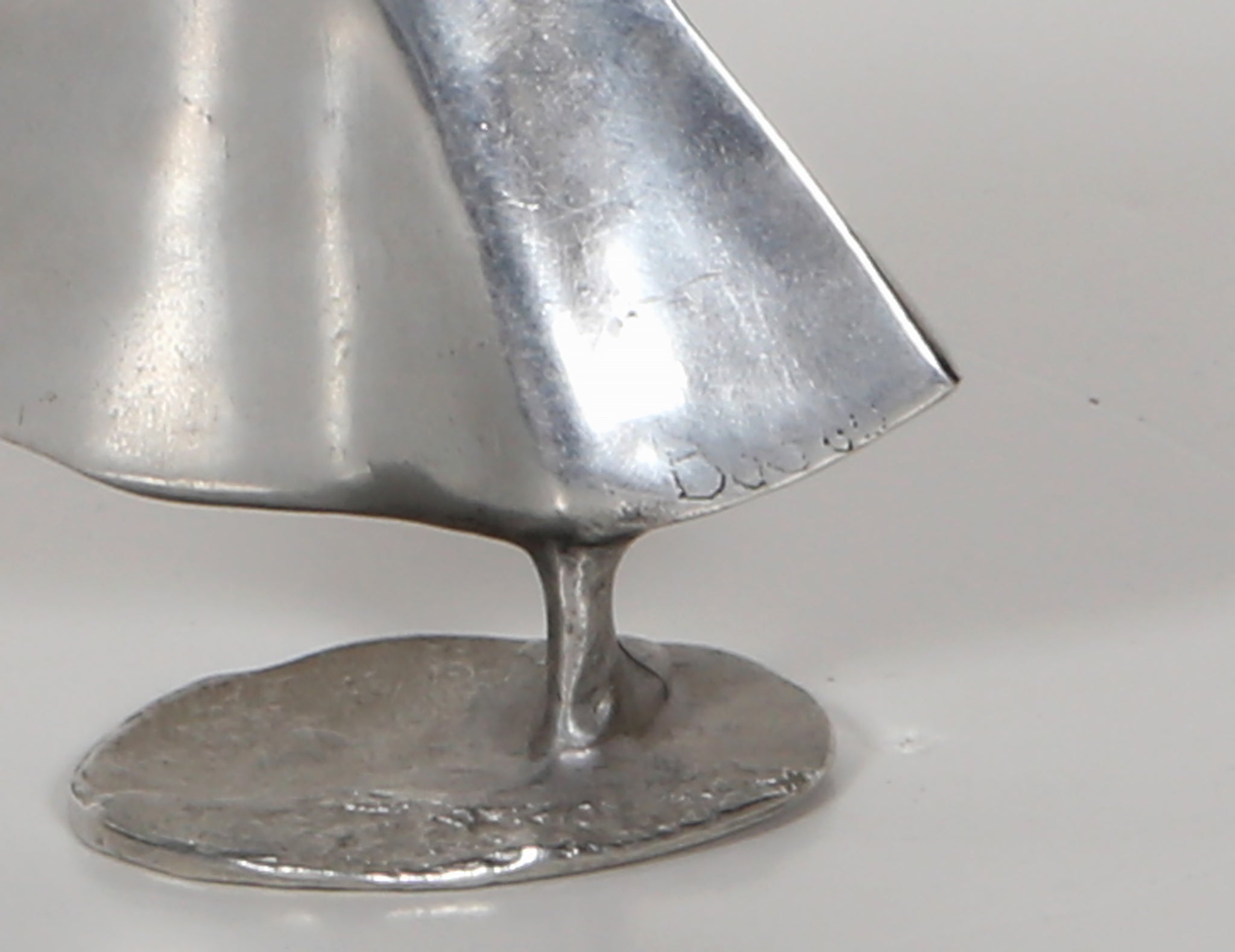 B.Z. Boobis, American - Dancer. Medium: Nickel cast sculpture, signature inscribed at base and on bottom, Size: 6.25 x 4 x 1.5 in. (15.88 x 10.16 x 3.81 cm)