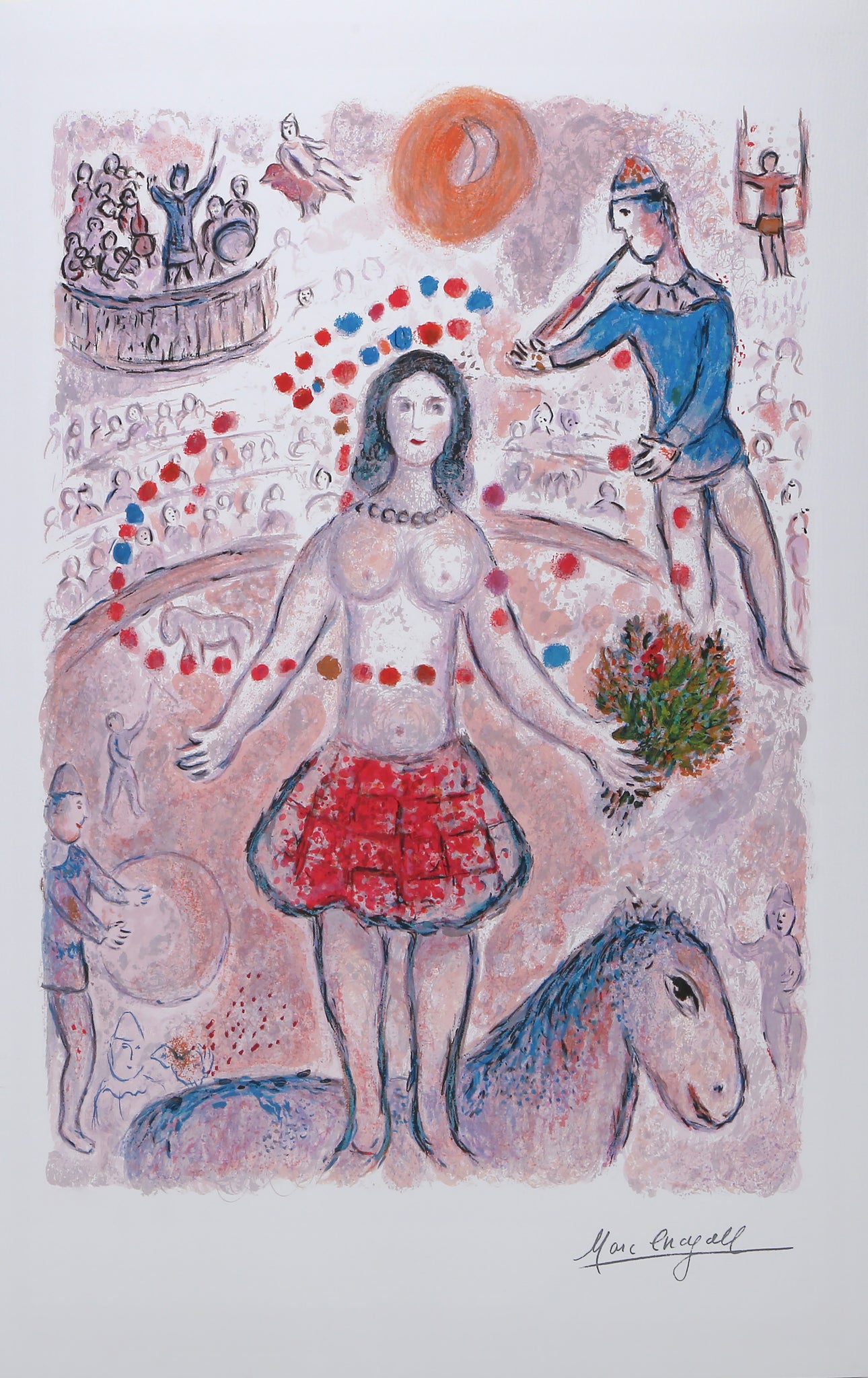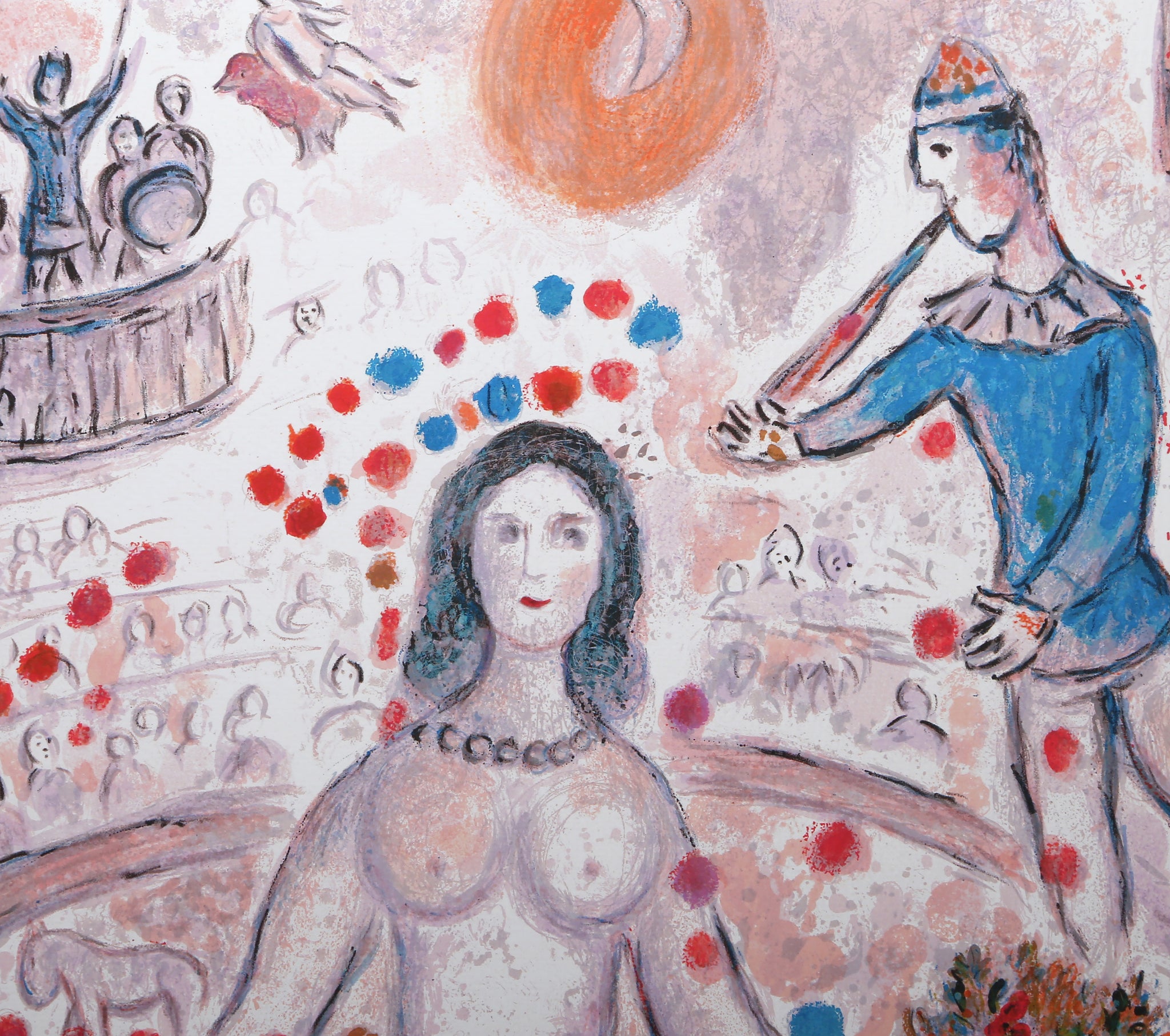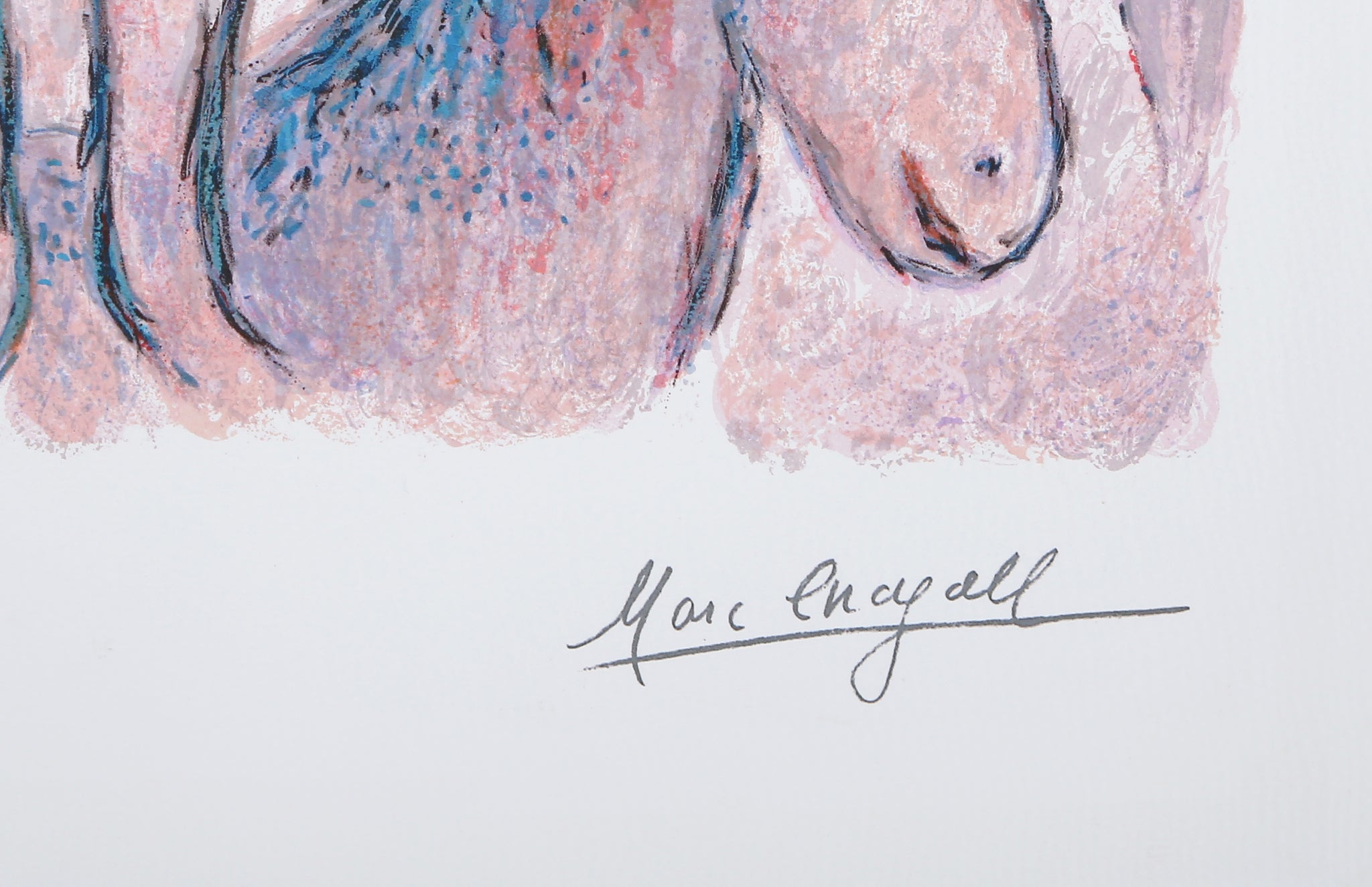 Marc Chagall, After, Russian (1887 - 1985) - Dancer & Flutist. Medium: Giclee, fascimille signed and numbered in pencil, Edition: 375, Image Size: 19 x 14 inches, Size: 24 x 16 in. (60.96 x 40.64 cm)