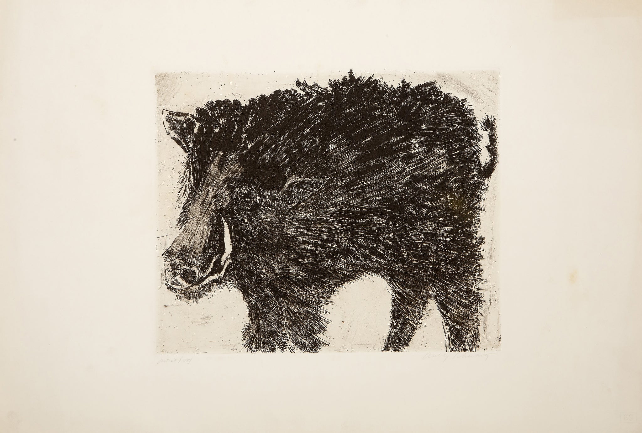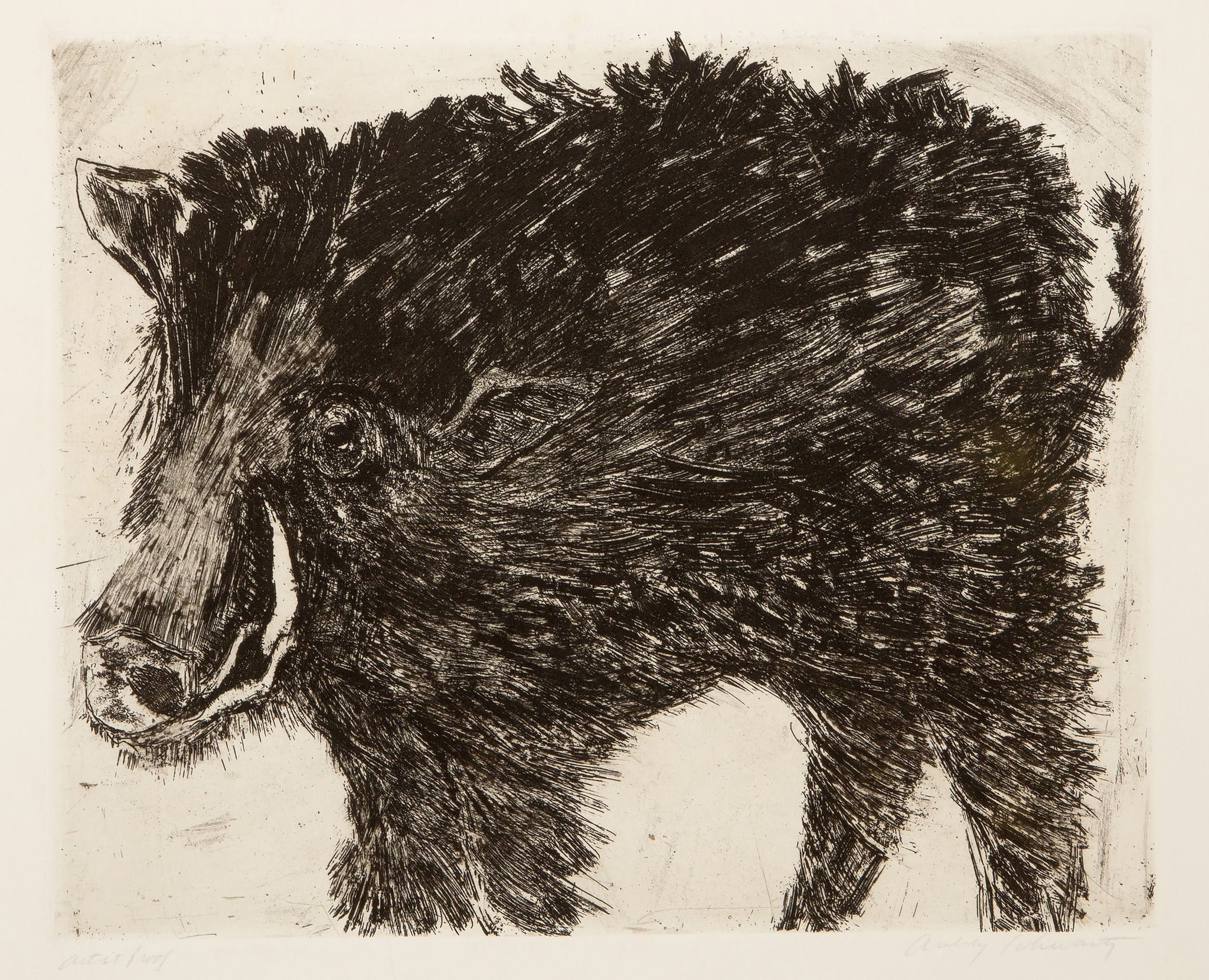 Aubrey Schwartz, American (1928 - 2019) - Hog. Year: circa 1962, Medium: Etching on BFK Rives, signed and numbered in pencil, Edition: AP, Image Size: 9.5 x 12 inches, Size: 15 x 22 in. (38.1 x 55.88 cm)