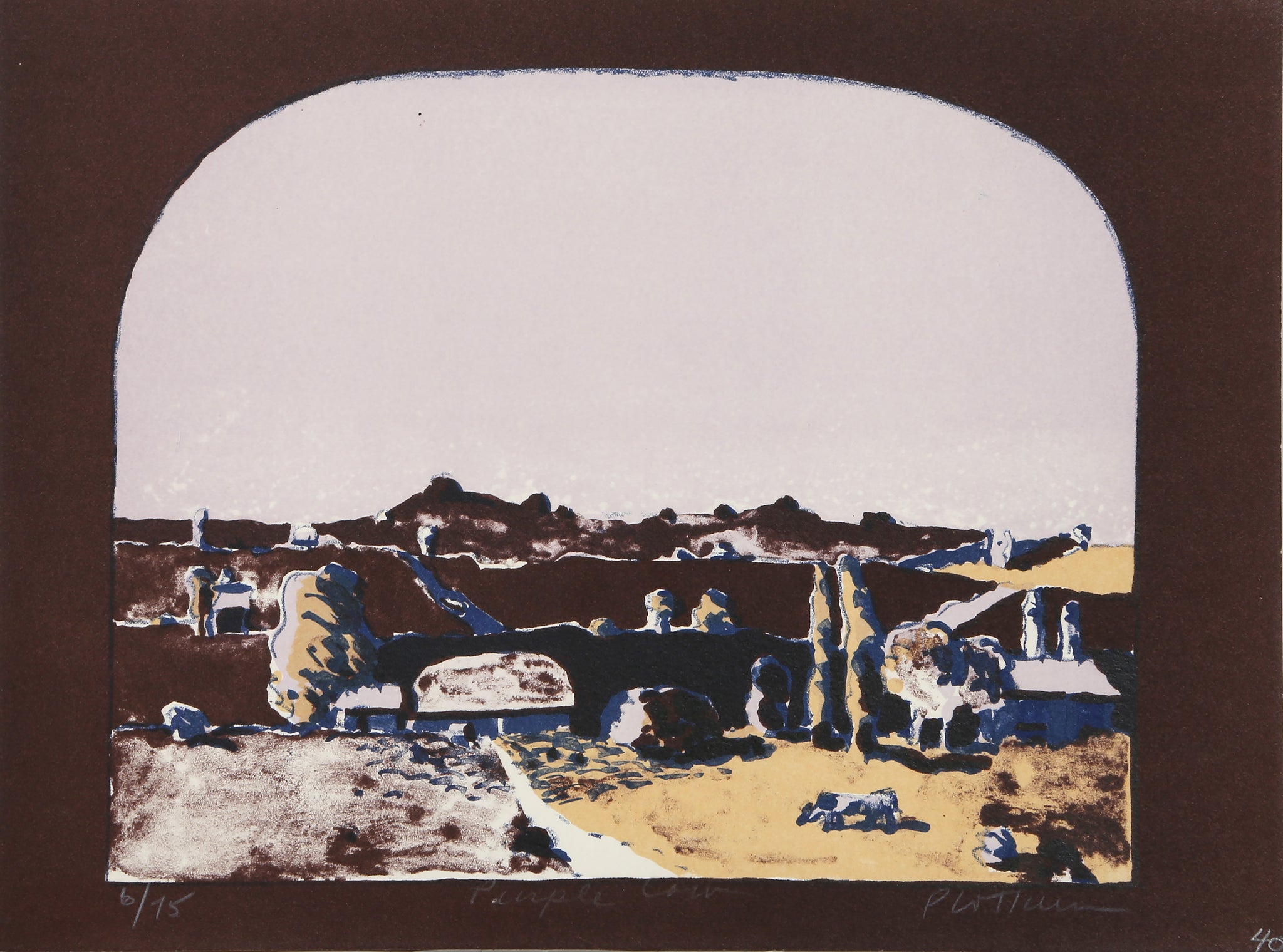 Linda Plotkin, American (1938 - ) - Purple Cow. Year: circa 1965, Medium: Screenprint, signed, titled and numbered in pencil, Edition: 6/75, Image Size: 7.5 x 9.5 inches, Size: 9 x 12 in. (22.86 x 30.48 cm)
