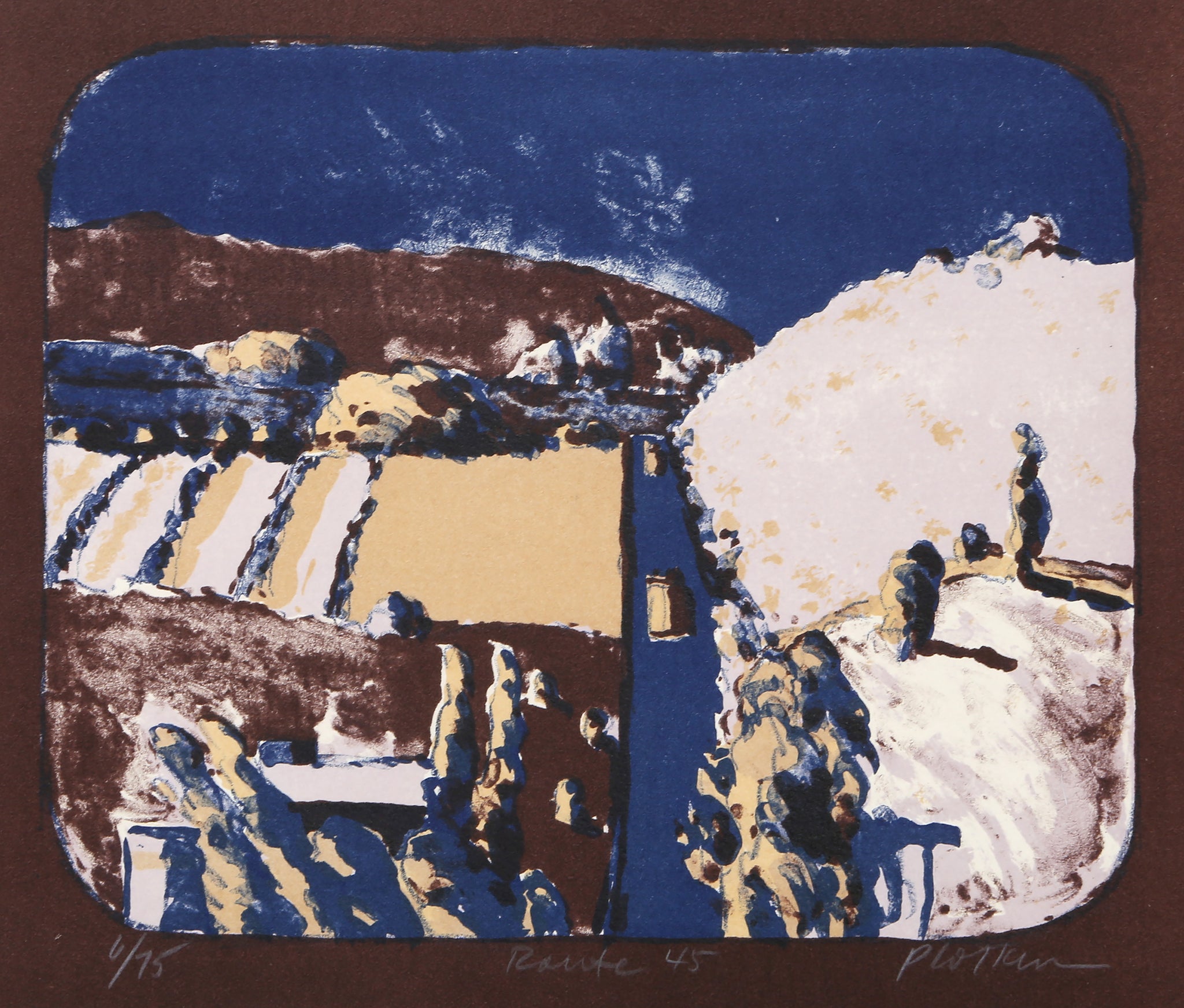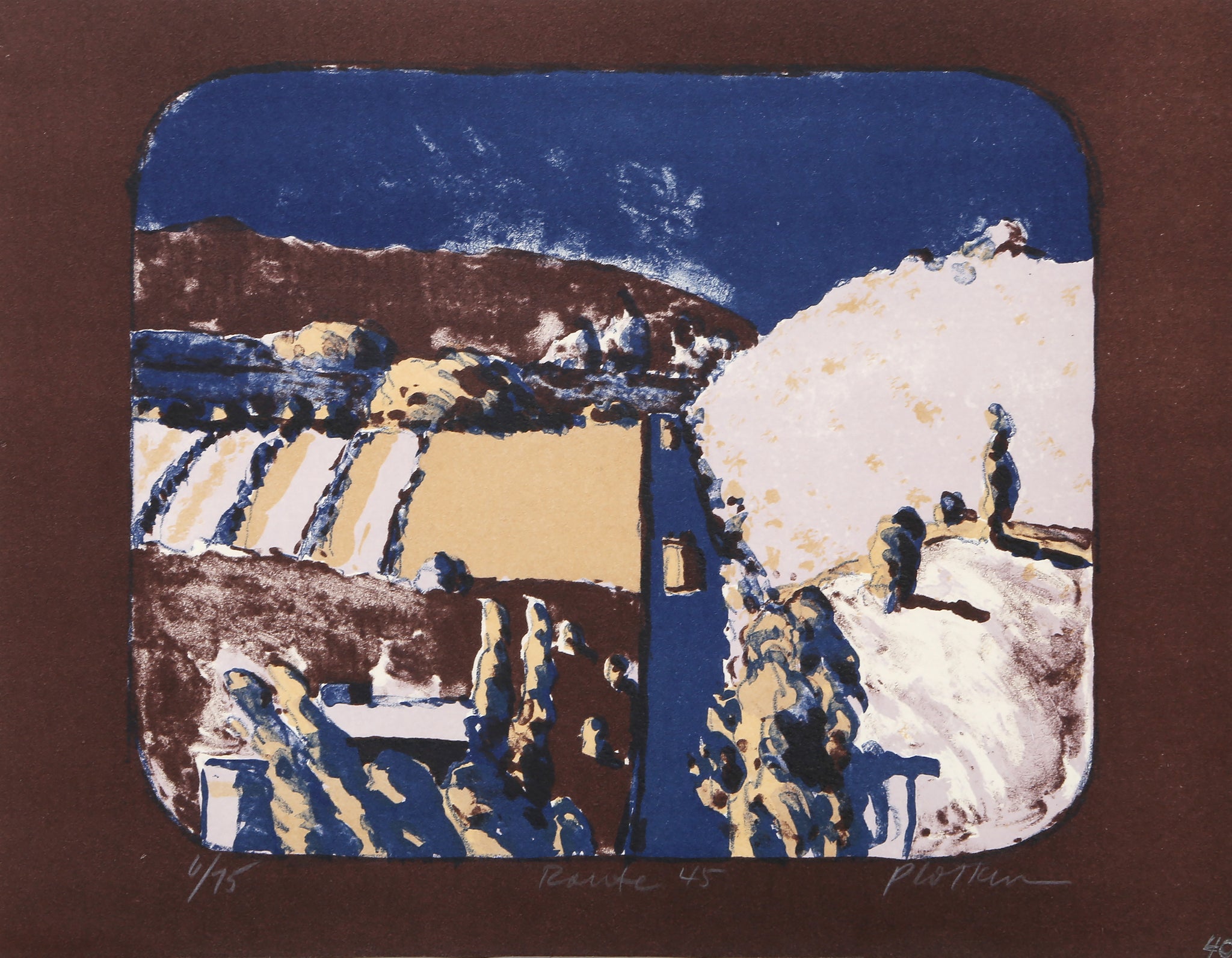 Linda Plotkin, American (1938 - ) - Route 45. Year: circa 1965, Medium: Lithograph, signed, titled and numbered in pencil, Edition: 6/75, Image Size: 7.5 x 9 inches, Size: 9.5 x 13 in. (24.13 x 33.02 cm)