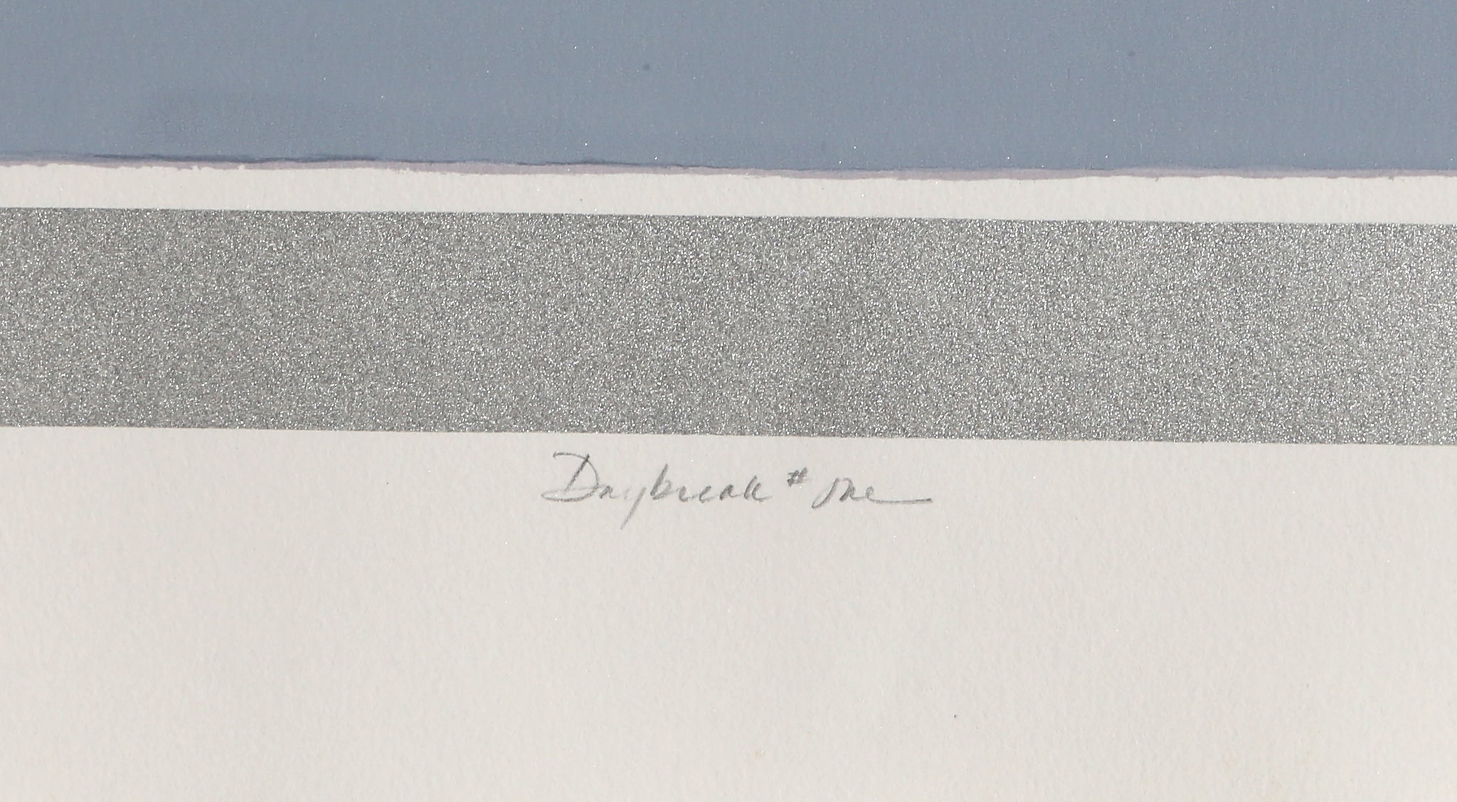 Embrace the serene beauty of morning light with this hand-signed Abstract Expressionist screenprint featuring abstract horizon lines and contemplative seascape imagery in a limited edition. This atmospheric landscape print exemplifies the Abstract Expressionism and Landscapes movements through its subtle color harmonies and gestural marks that capture the quiet majesty of daybreak over water. The artist's expert screenprint technique creates luminous layers and expressive textures that evoke the peaceful moment when night gives way to day. A sophisticated example of contemporary Abstract Expressionist landscape art that brings tranquil beauty and meditative presence to any collection seeking refined abstract seascape prints.
