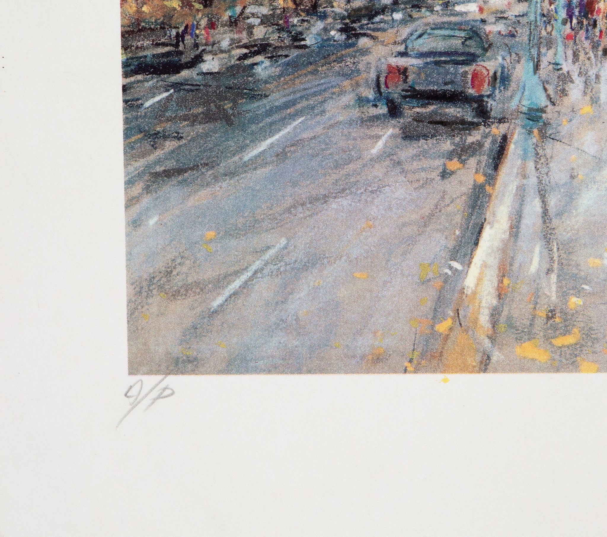 Capture the golden beauty of autumn in New York with Kamil Kubik's hand-signed Museum of Natural History screenprint, an enchanting Impressionist landscape featuring the iconic museum steps bathed in fall colors. This evocative New York Art print exemplifies the Impressionism and Landscapes movements through its atmospheric rendering of light, seasonal color, and architectural grandeur. Kubik's masterful screenprint technique creates rich textures and luminous tones that bring the beloved Upper West Side landmark to life with warmth and nostalgia. A beautiful example of contemporary New York Art and Impressionist printmaking that celebrates the city's cultural treasures and seasonal transformations, perfect for collectors seeking sophisticated landscape prints with local character.