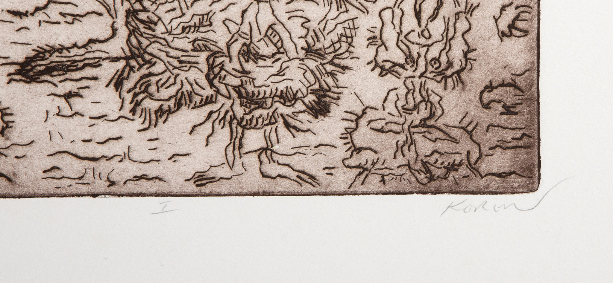 Contemplate the duality of motion with Edward Koren's hand-signed So Quickly So Slowly I, an evocative Surrealist etching featuring abstract figurative forms engaged in a visual exploration of speed, blur, and the nature of movement. This thought-provoking Figurative print exemplifies the Surrealism movement's fascination with paradox and perception, capturing the simultaneous experience of rapid action and meditative observation. Koren's distinctive etching technique creates a sense of dynamic energy suspended in time, inviting viewers to reflect on how we perceive and understand motion. A striking example of contemporary Surrealist and Figurative printmaking that appeals to collectors seeking intellectually engaging work on paper with conceptual sophistication.