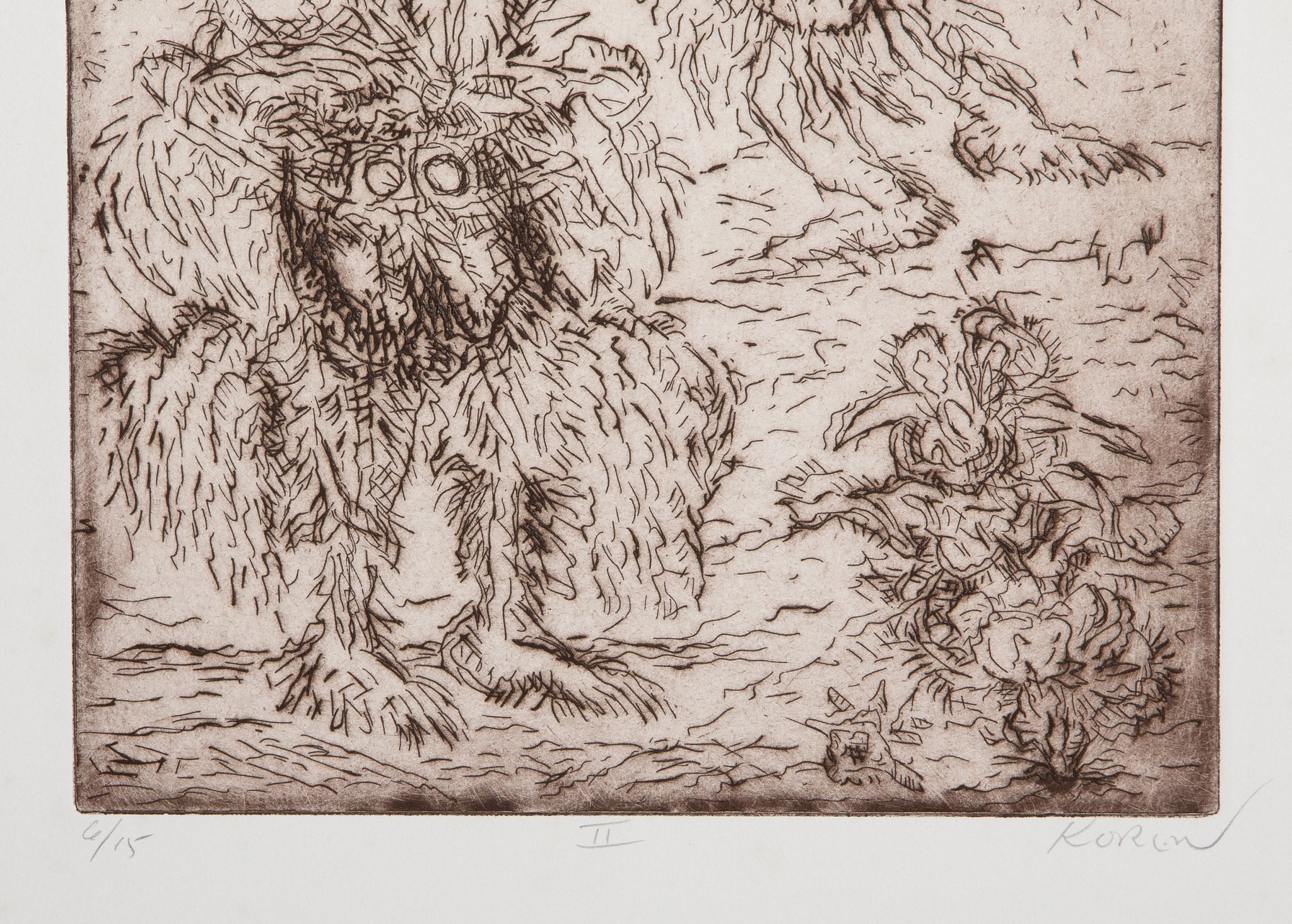 Experience the visual tension between velocity and stillness with Edward Koren's hand-signed So Quickly So Slowly II, a mesmerizing Surrealist etching that captures abstract figurative forms in states of blur and movement. This compelling Figurative print exemplifies the Surrealism movement's exploration of temporal paradox, with gestural marks that suggest both the rush of speed and the contemplation of pause. Koren's expert etching technique creates atmospheric depth and kinetic energy that transforms the perception of motion into a meditative artistic statement. A distinctive example of contemporary Surrealist printmaking that brings conceptual intrigue and visual dynamism to any collection seeking sophisticated work on paper.