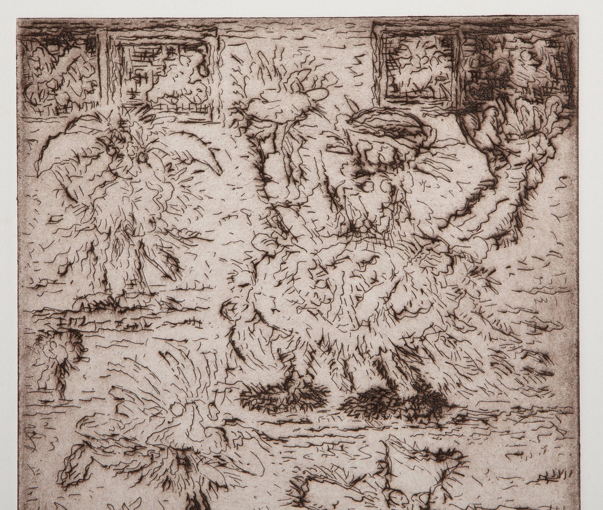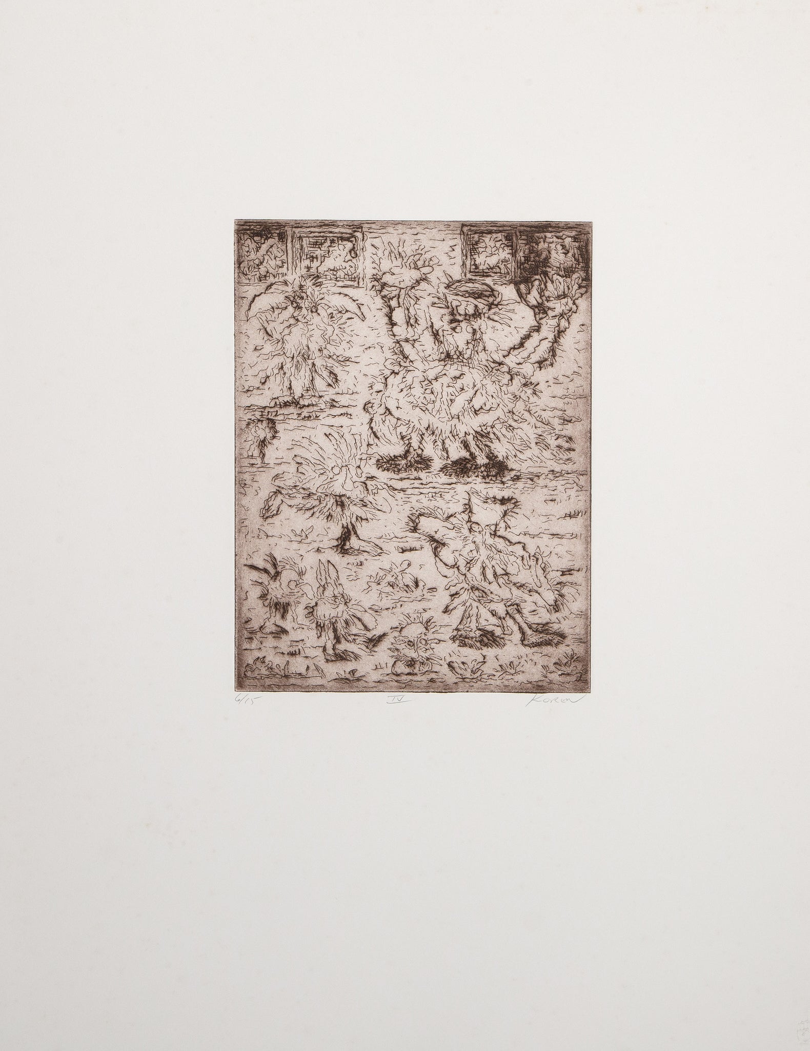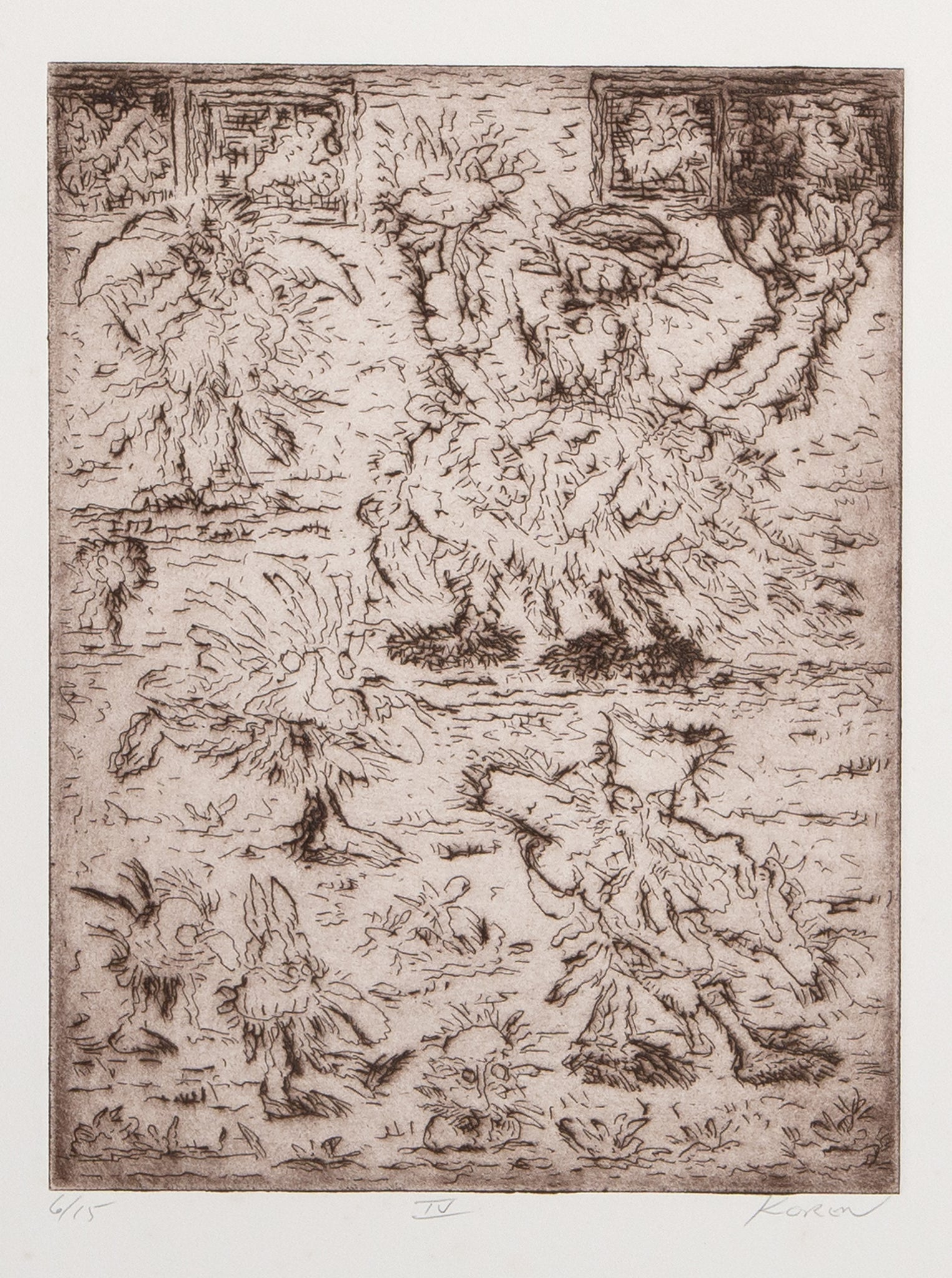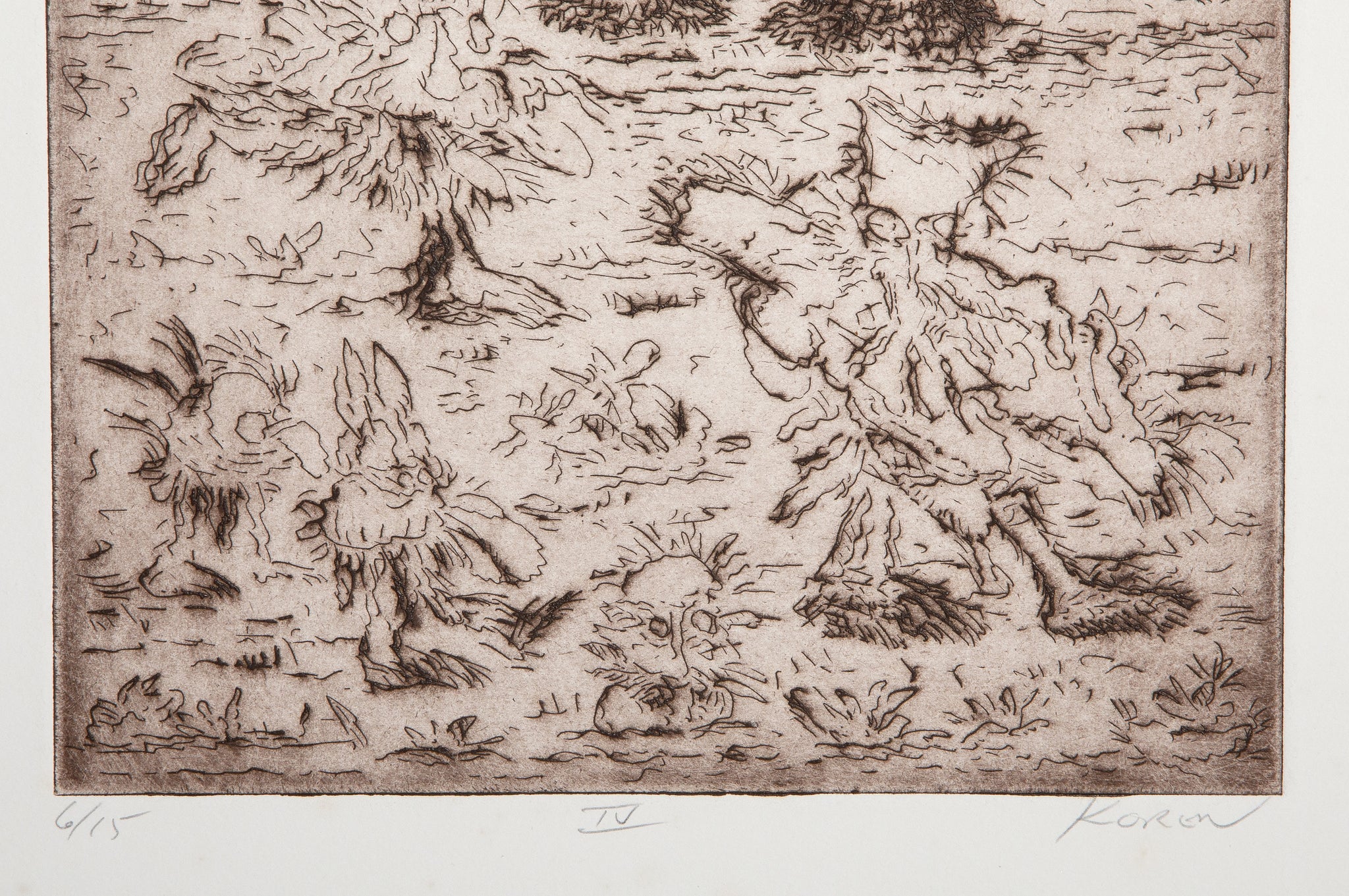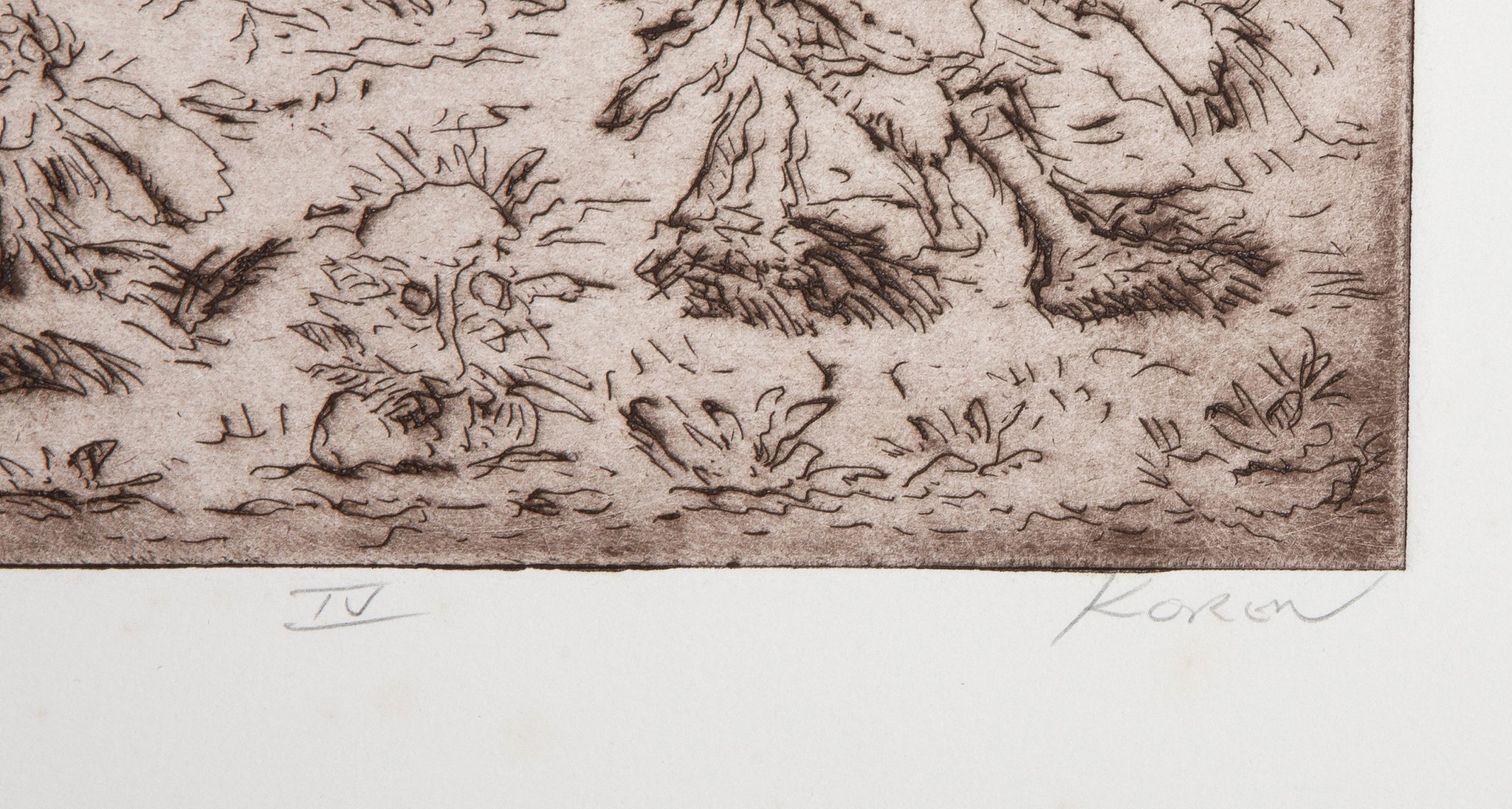 Explore the dynamic tension between speed and stillness with Edward Koren's hand-signed So Quickly So Slowly IV, an intriguing Surrealist etching featuring abstract animal forms that capture the essence of movement and blur. This thought-provoking Figurative print exemplifies the Surrealism movement's exploration of paradox and perception, with gestural marks that suggest both rapid motion and contemplative pause. Koren's masterful etching technique creates a sense of kinetic energy frozen in time, inviting viewers to contemplate the relationship between action and observation. A distinctive example of contemporary Surrealist and Figurative printmaking that brings intellectual depth and visual intrigue to any collection seeking work on paper with conceptual sophistication.