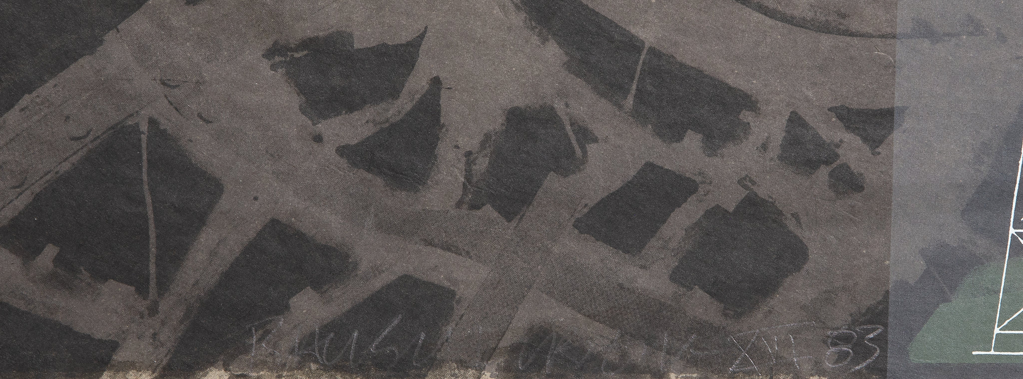 This print by Robert Rauschenberg is part of an 8-piece portfolio published by The New York Graphic Society in 1983 and includes works from Red Grooms, Robert Indiana, Alex Katz, R.B. Kitaj, Robert Motherwell, Robert Rauschenberg, Larry Rivers, and James Rosenquist. The portfolio consists of two lithographs, five screenprints, and one mixed media print all on various wove papers, each signed and editioned in pencil along lower edge. This is from the edition of XVI/XXXV.