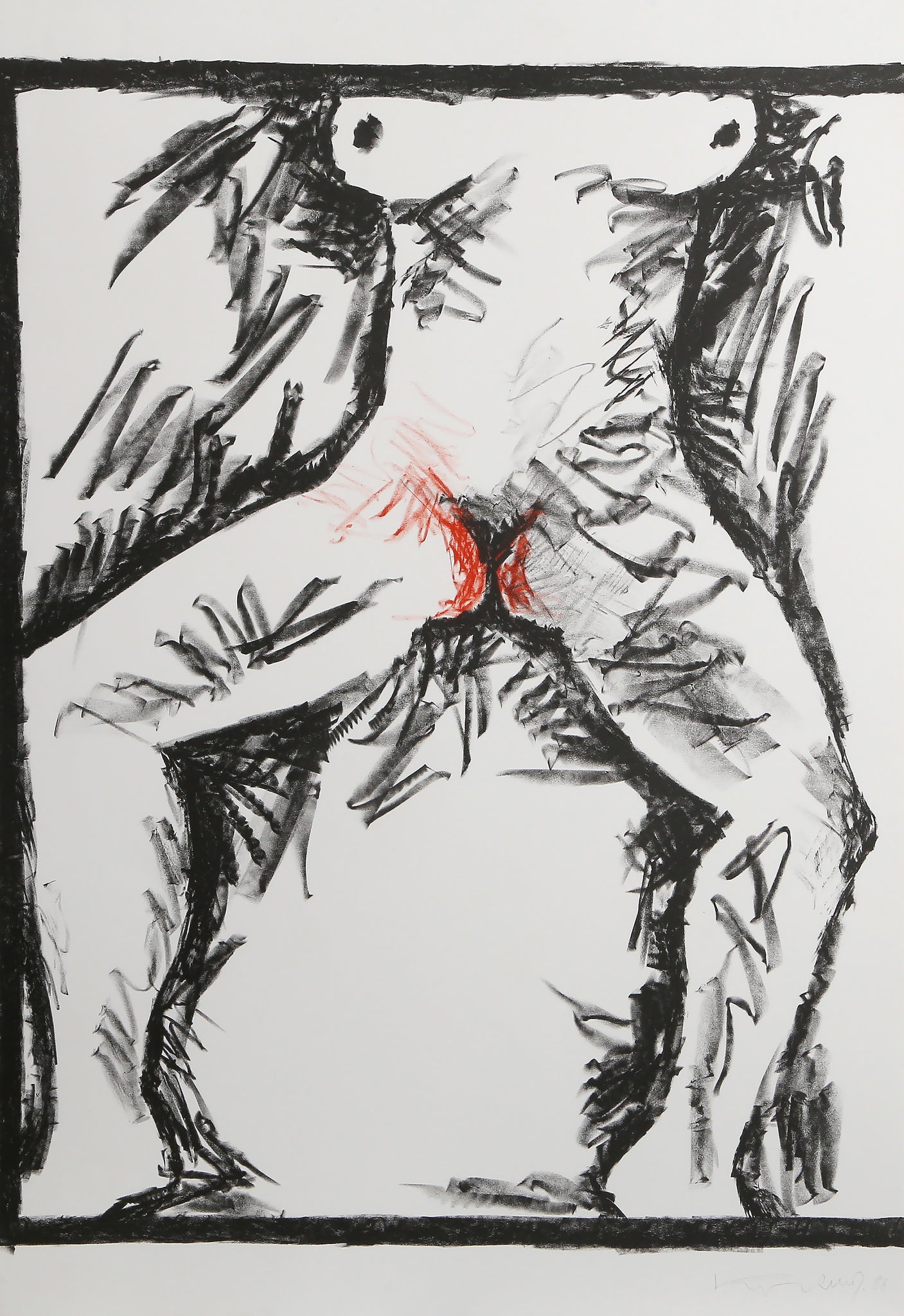 Explore this provocative hand-signed Conceptual Art lithograph by Komar and Melamid that examines the life of Leo Tolstoy through bold figurative imagery and nude art traditions. This thought-provoking print exemplifies the Conceptual Art movement's intellectual approach to art-making, using graphic figurative elements and sexual imagery to challenge conventional representations of the literary giant. The artists' distinctive collaborative style merges historical portraiture with contemporary conceptual strategies, creating a complex visual narrative about creativity, mortality, and human nature. A significant example of Soviet-American Conceptual Art that demonstrates Komar and Melamid's fearless exploration of cultural icons through provocative figurative means, perfect for serious collectors of contemporary conceptual prints.