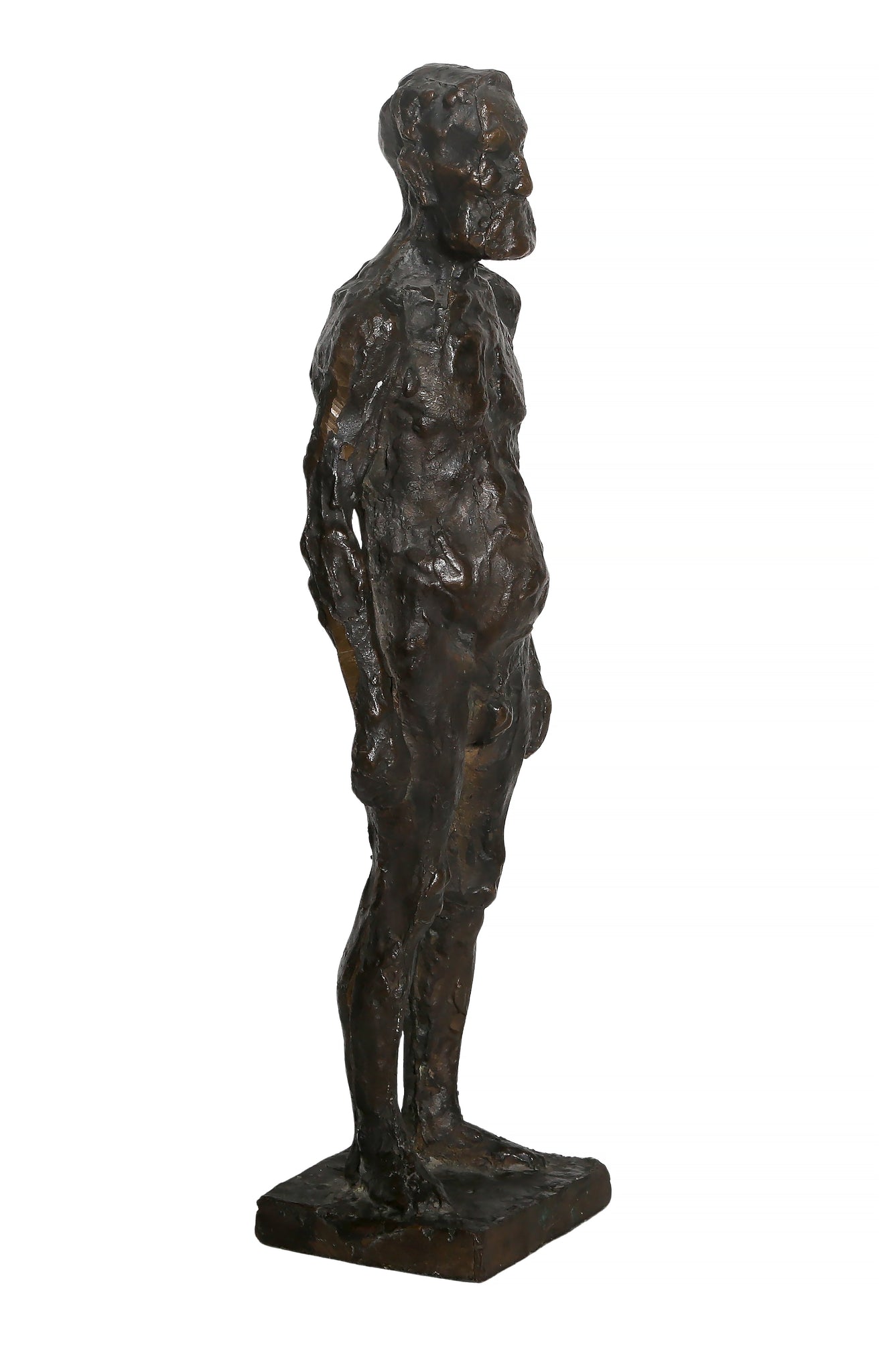 Unknown Artist, Possibly Arbit Blatas - Standing Nude Man. Medium: Bronze Sculpture, Size: 14.25 x 3.5 x 3.5 in. (36.2 x 8.89 x 8.89 cm)