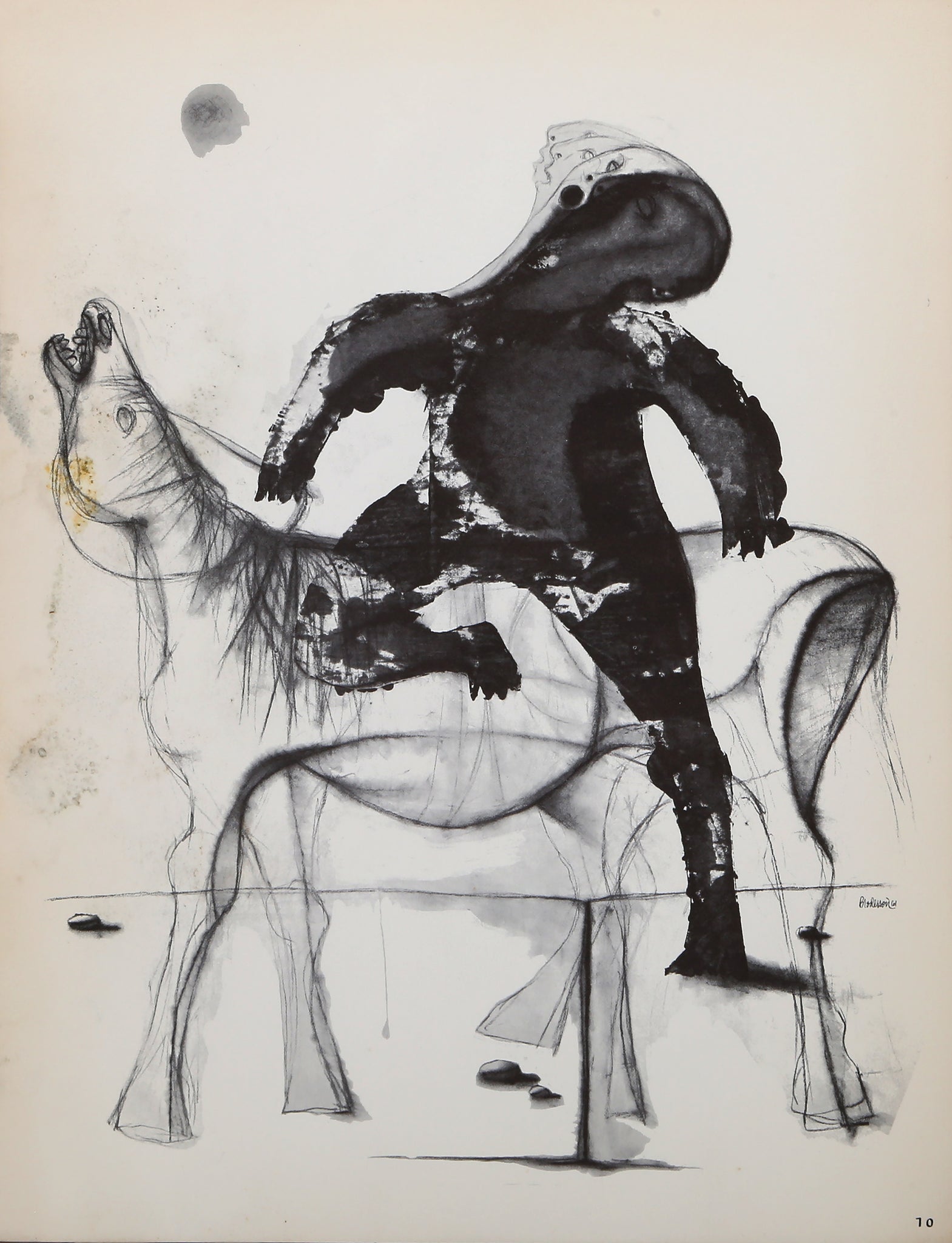 Morris Broderson, American (1928 - 2011) - Boy Riding Invisible Horse. Portfolio: The Atelier Portfolios, Number One: Morris Broderson, Year: 1961, Medium: Lithograph, signed and dated in the plate lower left, Image Size: 11 x 9 inches, Size: 12.75 x 9.75 in. (32.39 x 24.77 cm), Printer: The Nutshell Press, South Pasadena, California