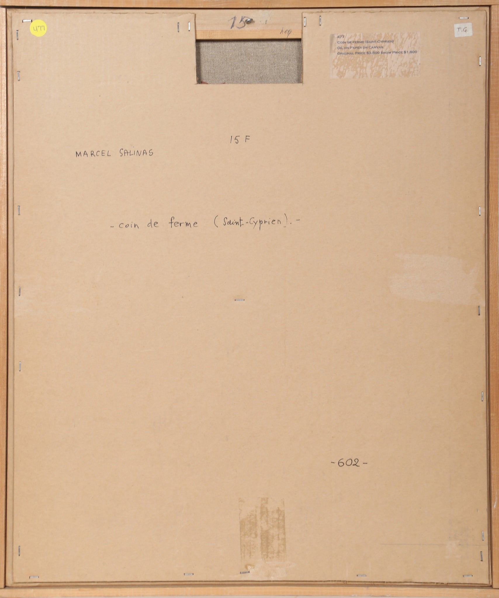 Laurent Marcel Salinas, Egyptian/French (1913 - 2010) - Coin de Ferme (Saint-Cyprien) (602). Year: circa 1970, Medium: Oil on Canvas, signed l.r., Size: 25 x 21 in. (63.5 x 53.34 cm), Frame Size: 26.5 x 22 inches