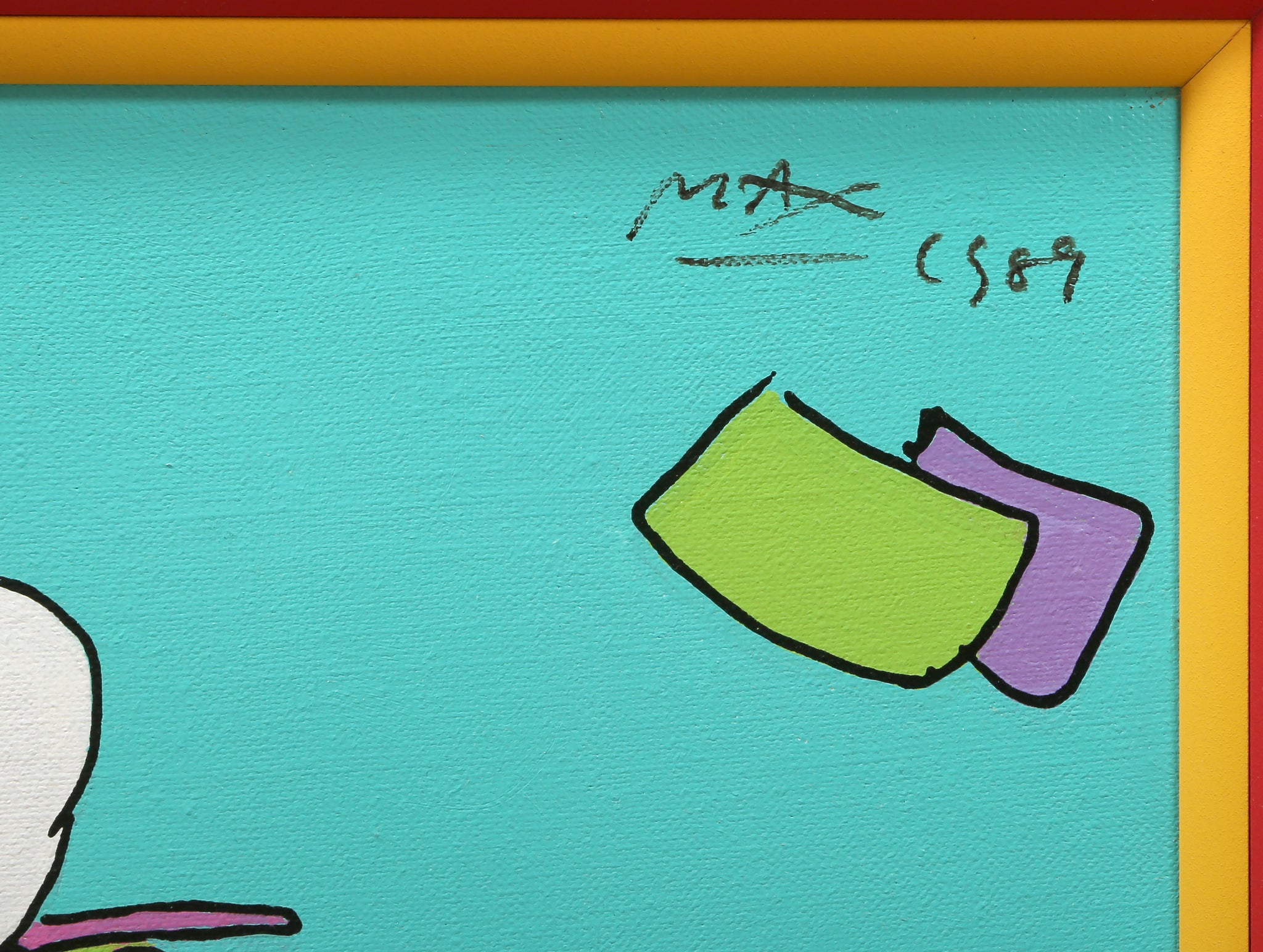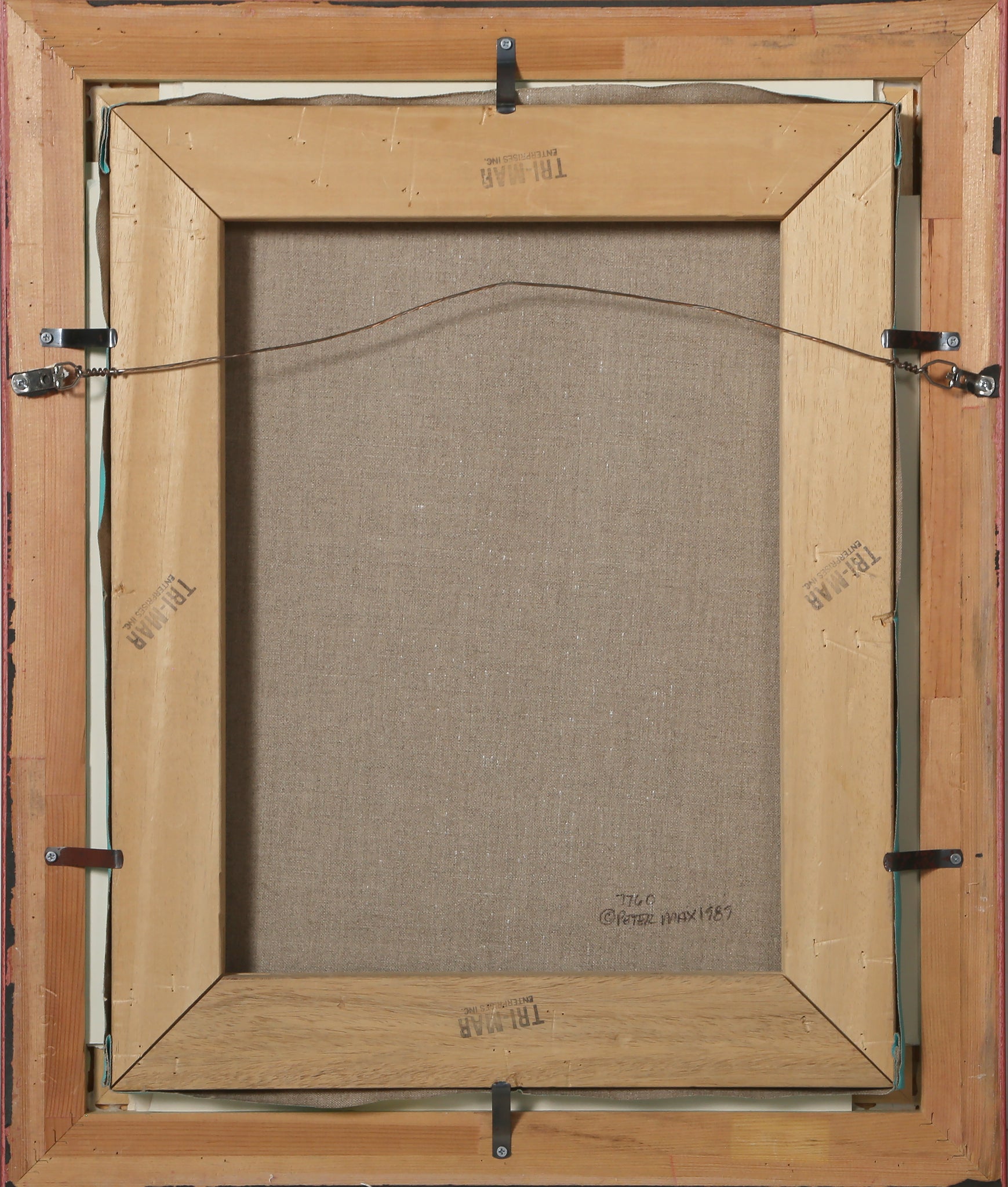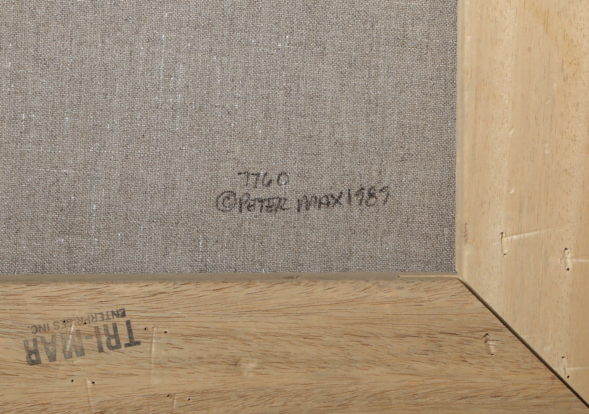 Peter Max, German/American (1937 - ) - Running Man. Year: 1989, Medium: Acrylic on Canvas, signed, Size: 20 x 16 in. (50.8 x 40.64 cm), Frame Size: 24 x 21 inches