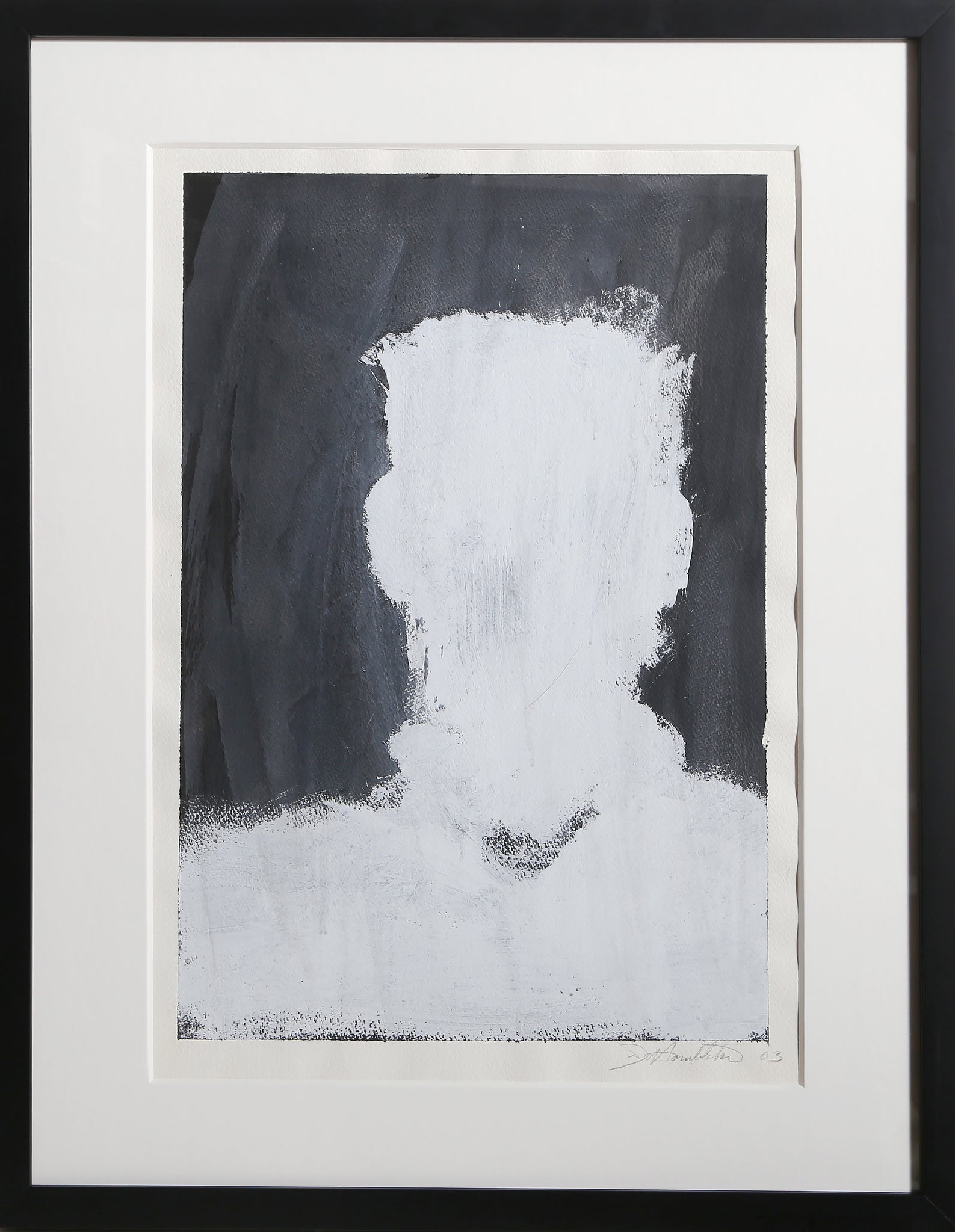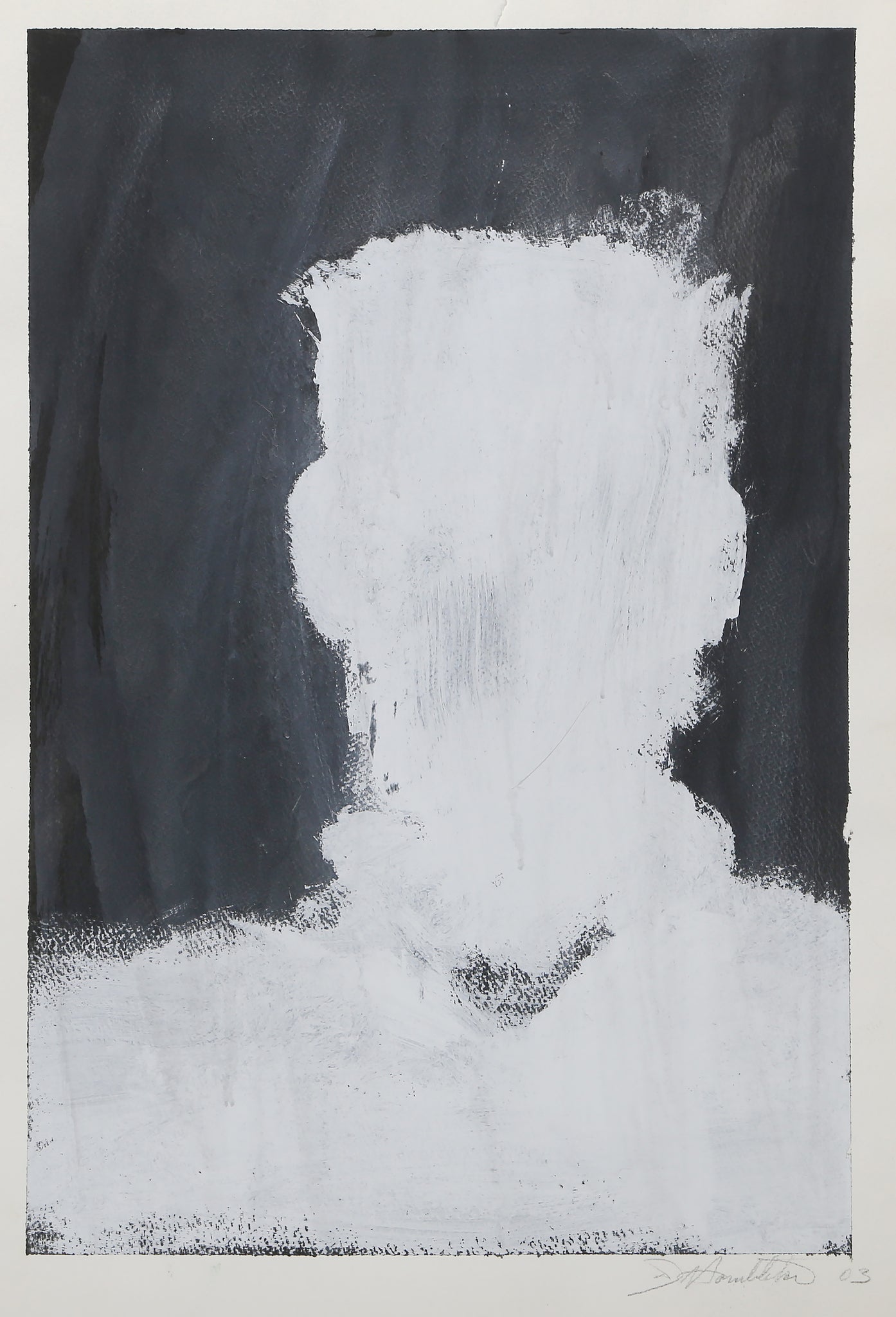 Richard Hambleton, Canadian (1952 - 2017) - Shadow Head in White. Year: 2003, Medium: Acrylic and Gouache on Paper, signed and dated in pencil lower right and signed in pen on verso, Image Size: 20.5 x 14 inches, Size: 23.25 x 16 in. (59.06 x 40.64 cm), Frame Size: 28.75 x 22.75 inches