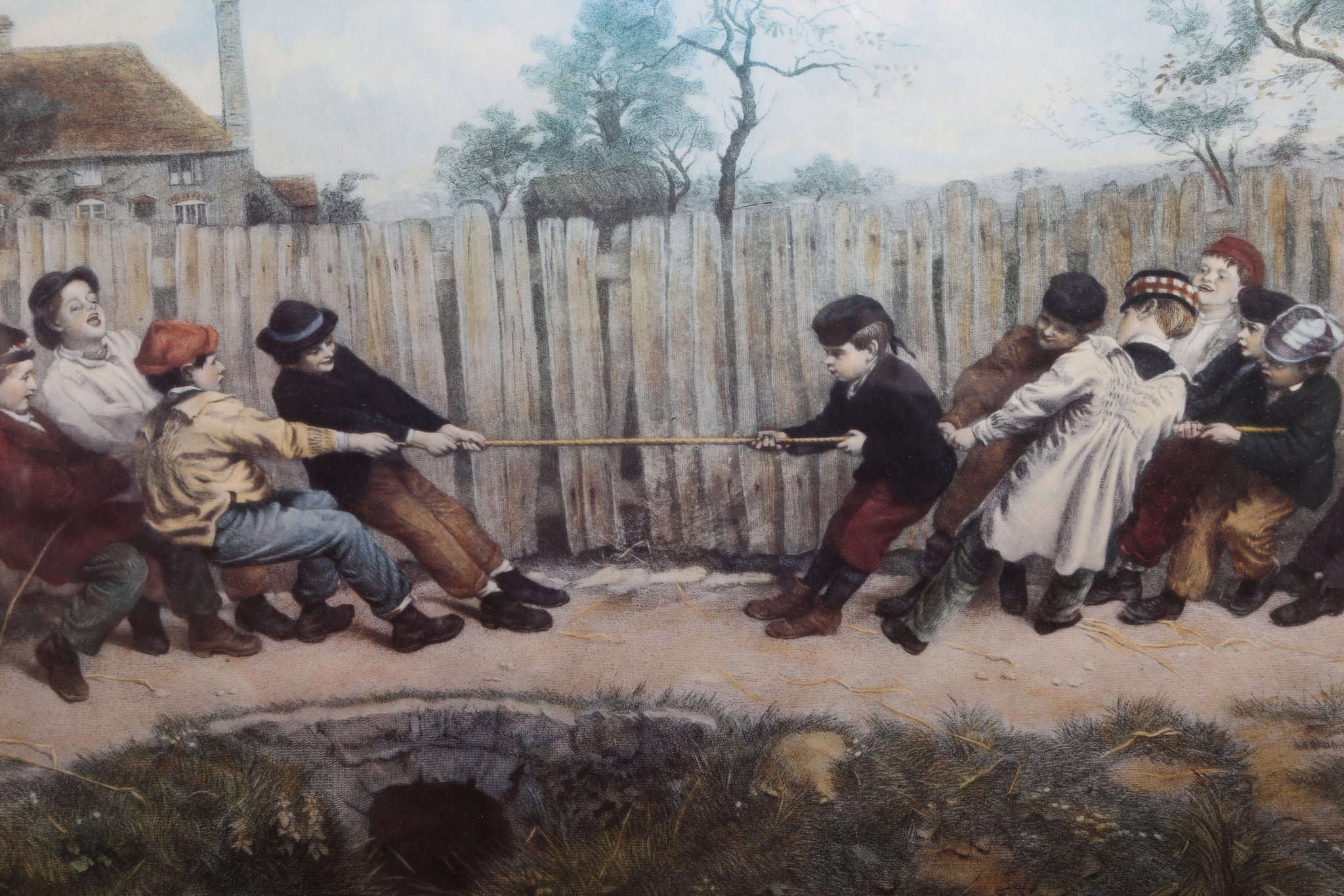 John Morgan, British (1822 - 1885) - Tug of War. Medium: Offset reproduction, Size: 17 x 30.5 in. (43.18 x 77.47 cm), Frame Size: 28 x 44 inches