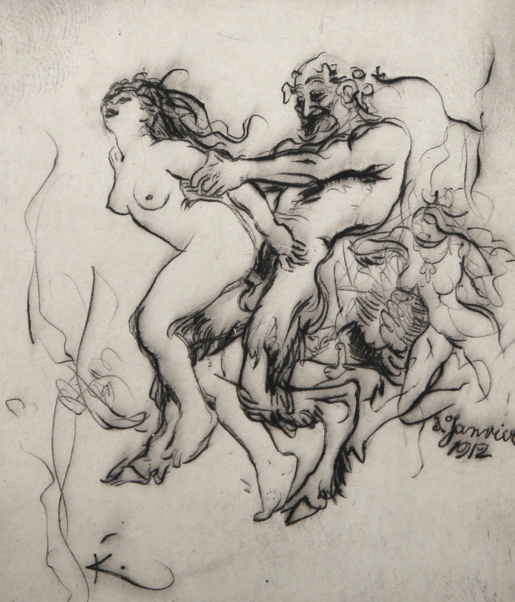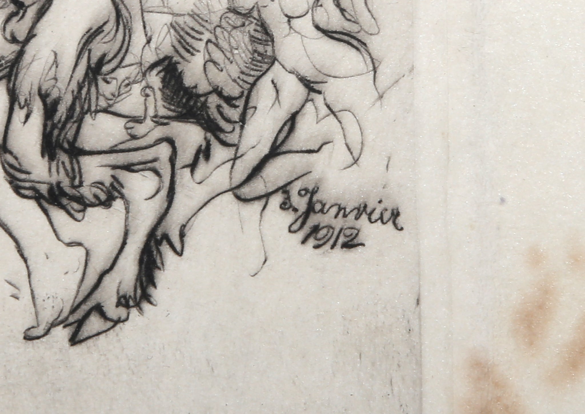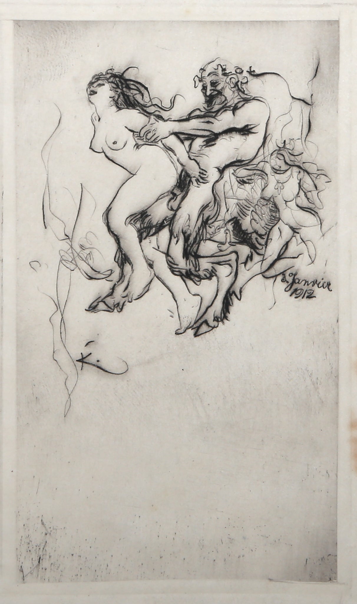 Frantisek Kupka, Czech (1871 - 1957) - Janvier III. Year: 1912, Medium: Etching on cream wove paper, signed, titled and dated in the plate, Image Size: 4.5 x 2.5 inches, Size: 17.25 x 11.25 in. (43.82 x 28.58 cm), Description: Waldesova Obrazarna Stamp on verso. From the collection of the late Larry Saphire