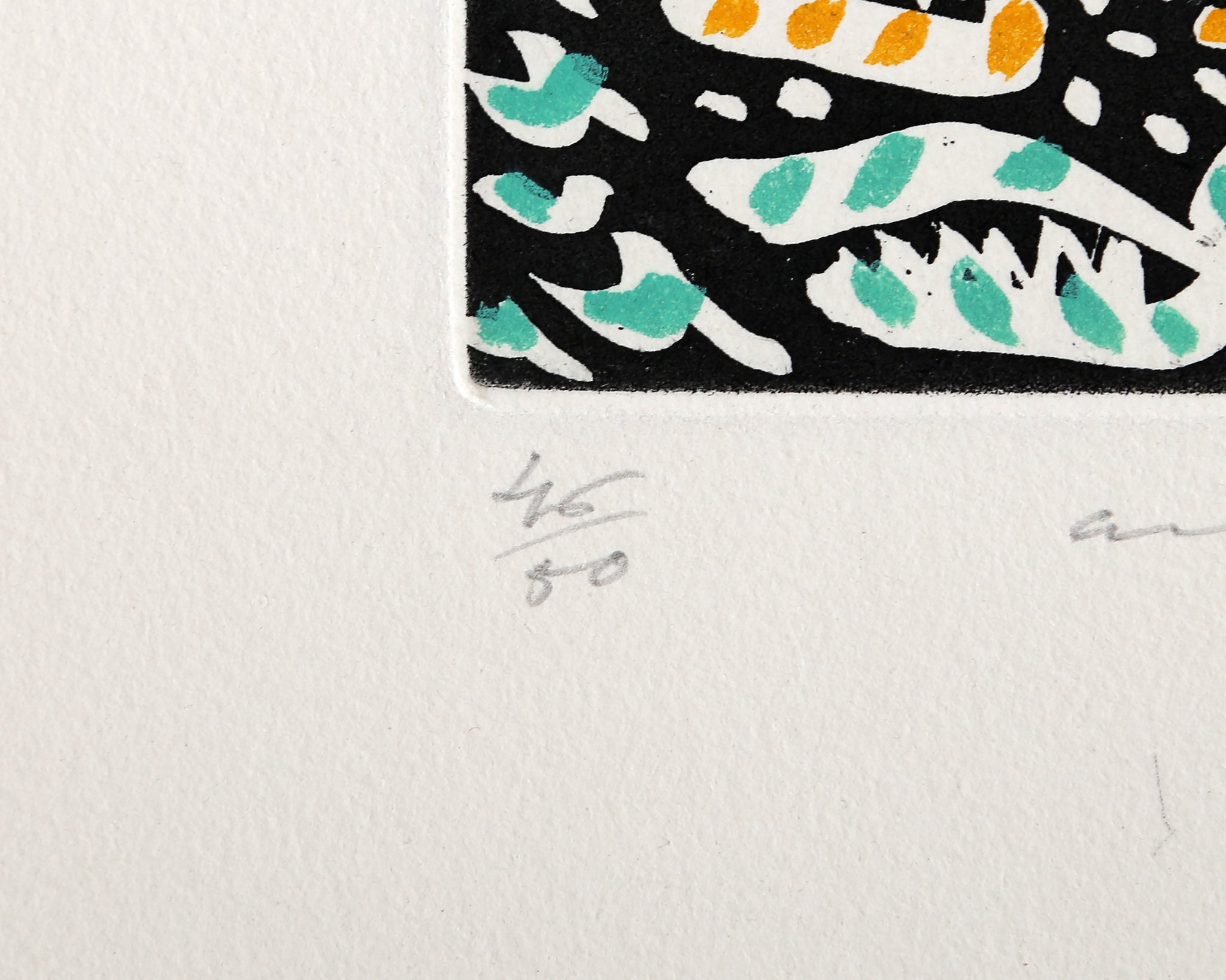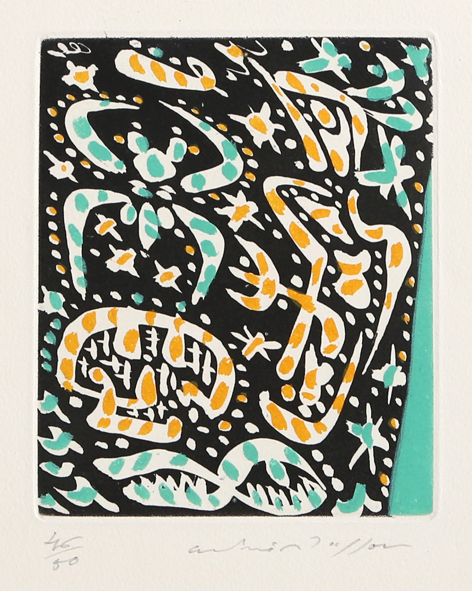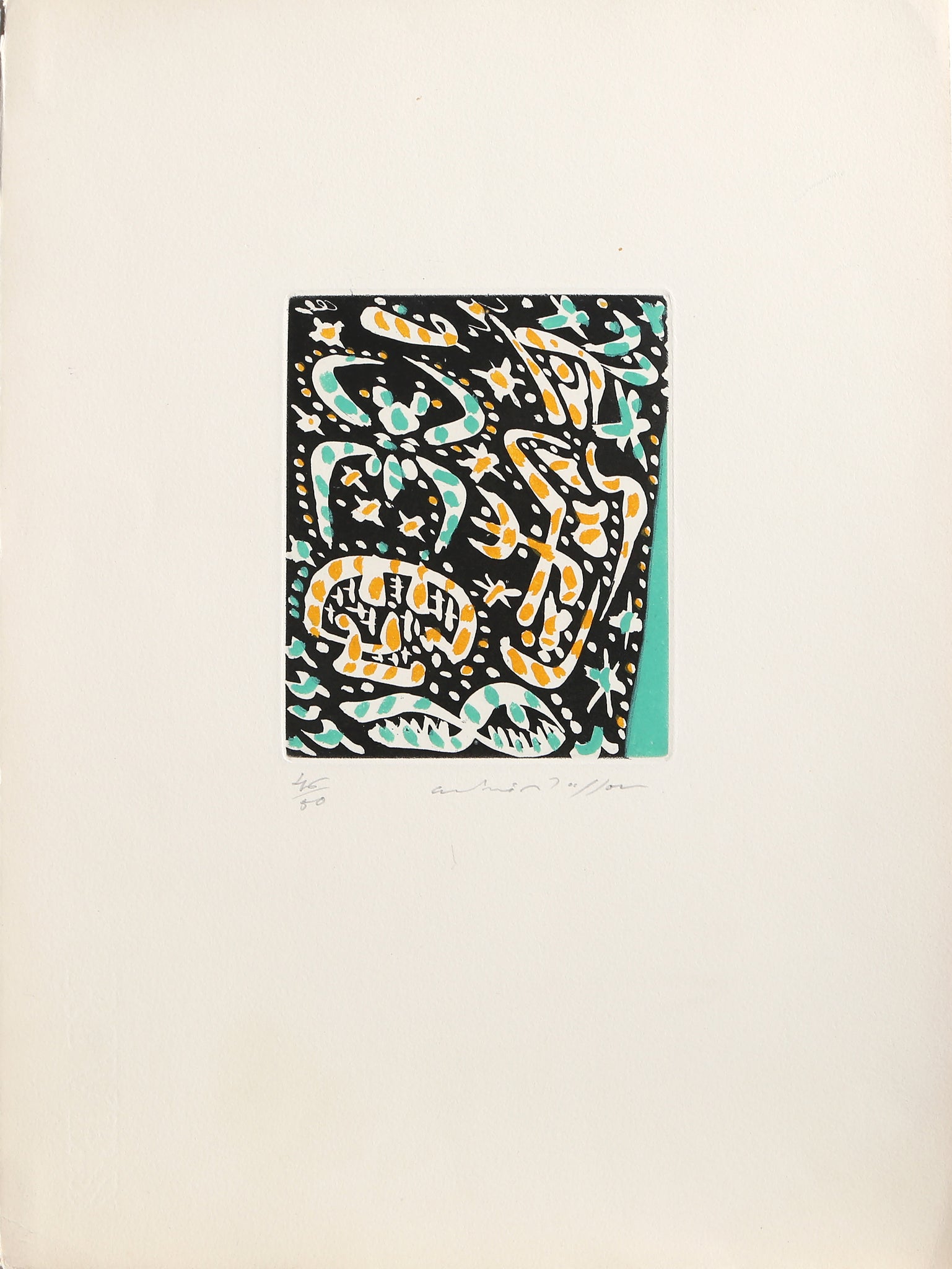 Andre Masson, French (1896 - 1987) - Mines de Rien. Year: 1957, Medium: Etching and Aquatint on Rives, signed and numbered in pencil, Edition: 46/50, Image Size: 5.25 x 4.5 inches, Size: 15 x 11 in. (38.1 x 27.94 cm), Description: From the collection of the late Larry Saphire.