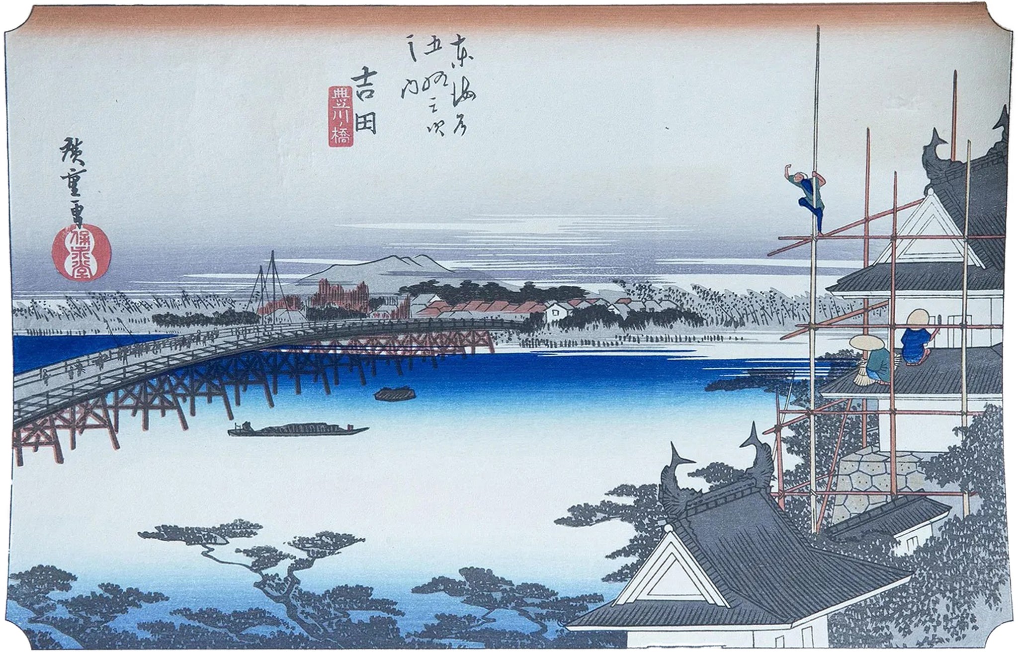 Utagawa Hiroshige (aka Ando Hiroshige), Japanese (1797 - 1858) - Yoshdia-Juku. Year: 1920, Medium: Woodblock, Size: 8.5 x 13 in. (21.59 x 33.02 cm)