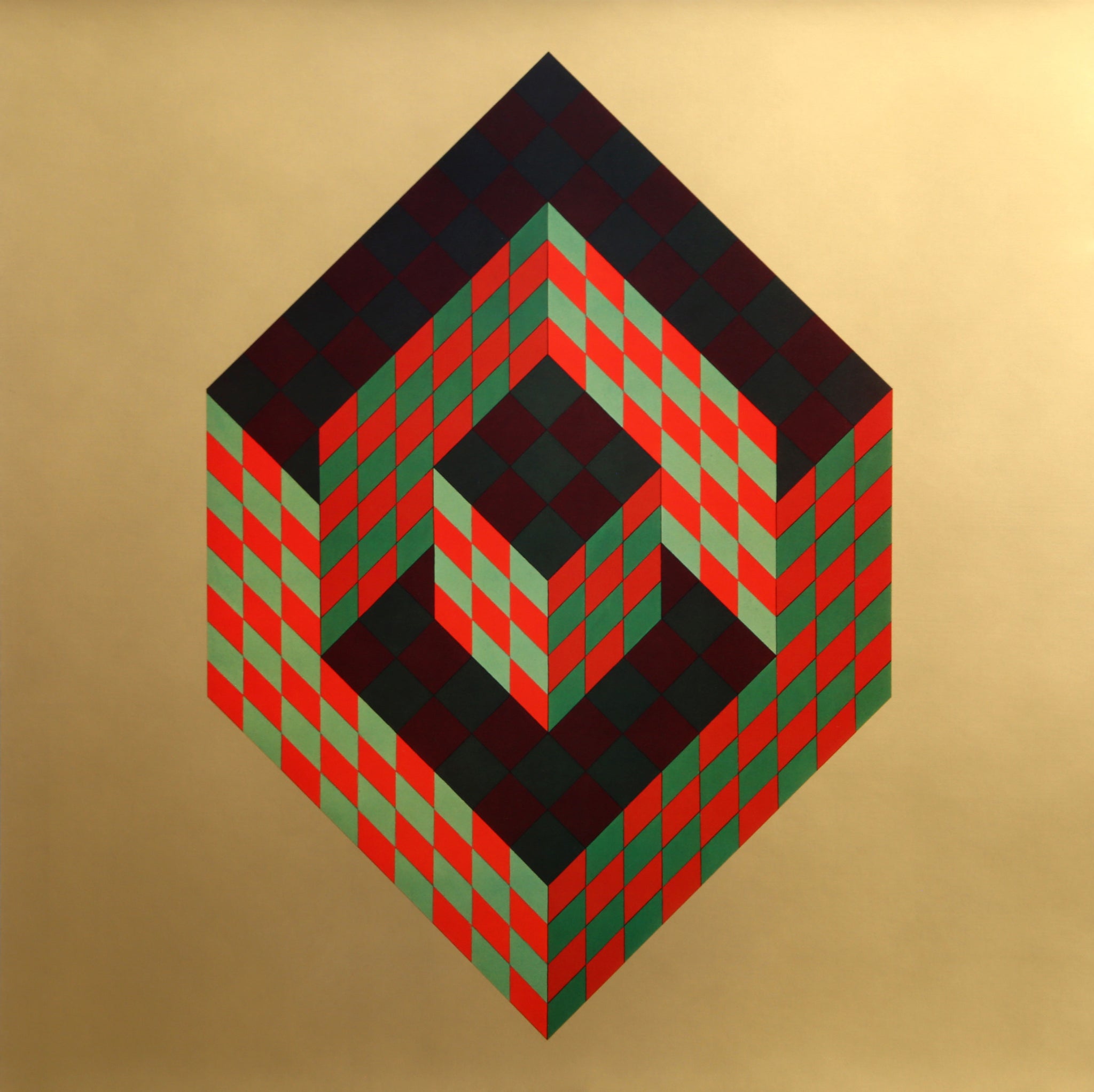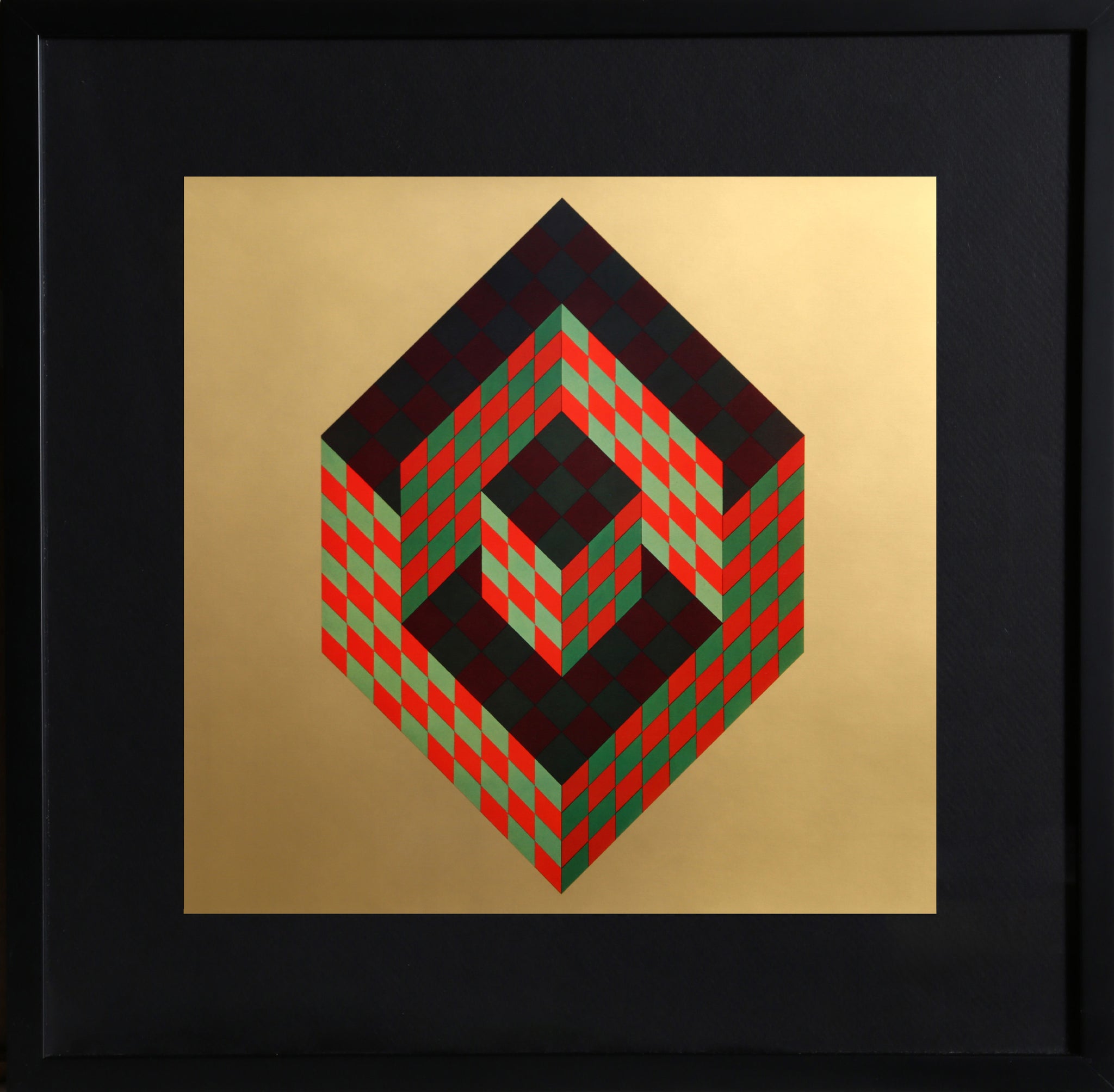 Victor Vasarely, Hungarian (1908 - 1997) - Bidim. Portfolio: Progressions 3, Year: 1974, Medium: Offset Lithograph, Size: 16 x 16 in. (40.64 x 40.64 cm), Frame Size: 21.5 x 21.5 inches, Publisher: Editions Du Griffon Neuchatel, Description: From a portfolio of 8 Offset Lithographs on paper created originally by Hungarian artist Victor Vasarely, printed by Editions Du Griffon Neuchatel. Another version of this is also included in the portfolio Structures Universelles de L'Hexagone. Nicely framed and matted in black.