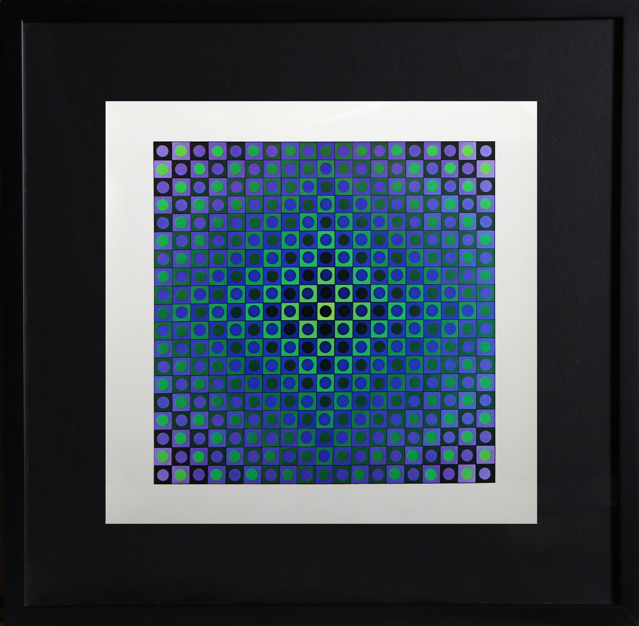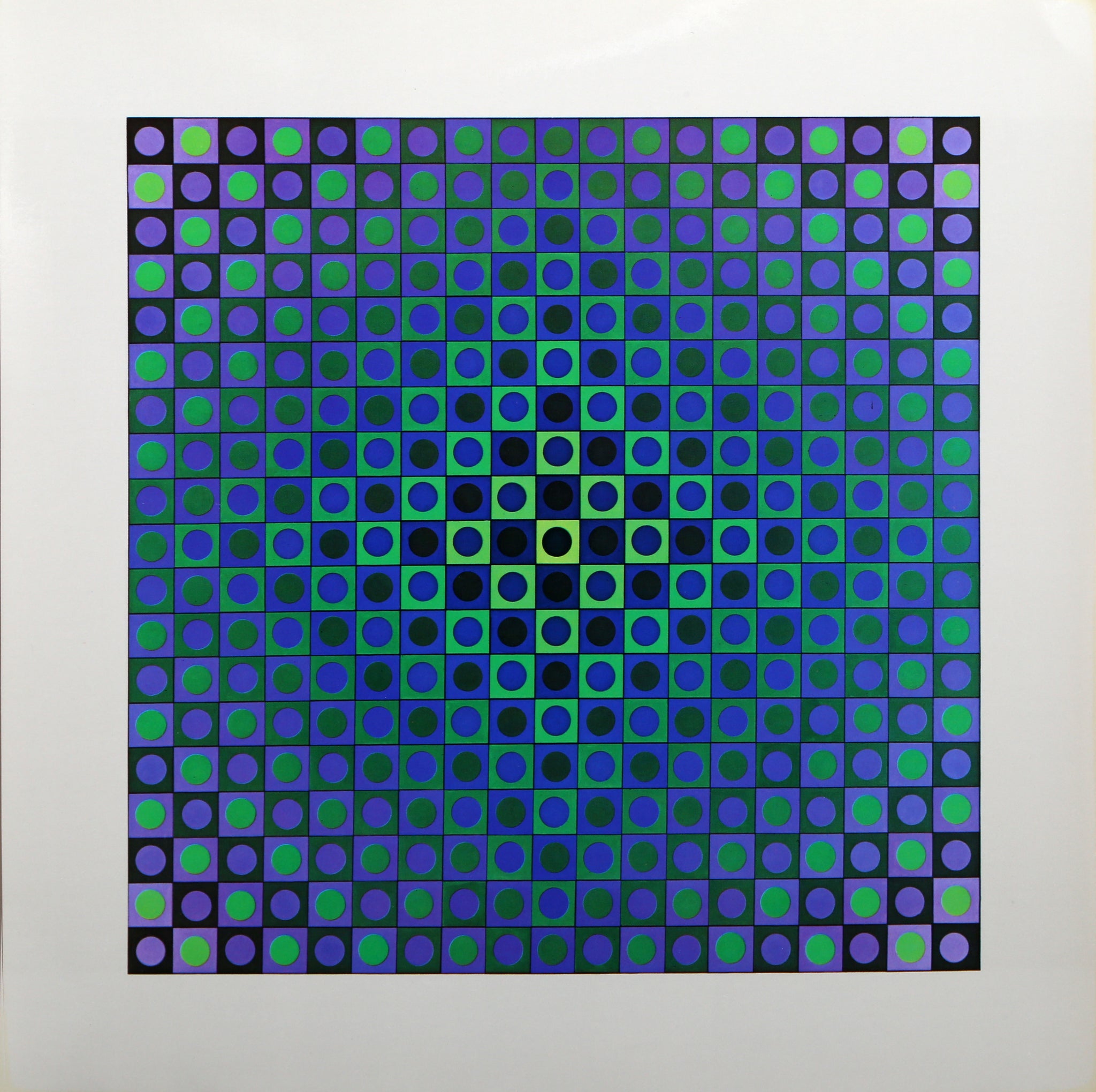 Victor Vasarely, Hungarian (1908 - 1997) - Boglar. Portfolio: Planetary Folklore, Year: 1971, Medium: Offset Lithograph, Size: 10.75 x 10.75 in. (27.31 x 27.31 cm), Frame Size: 14 x 14 inches, Publisher: Editions Du Griffon Neuchatel, Description: Portfolio of 9 Offset Lithographs on paper created originally by Hungarian artist Victor Vasarely, printed by Editions Du Griffon Neuchatel.