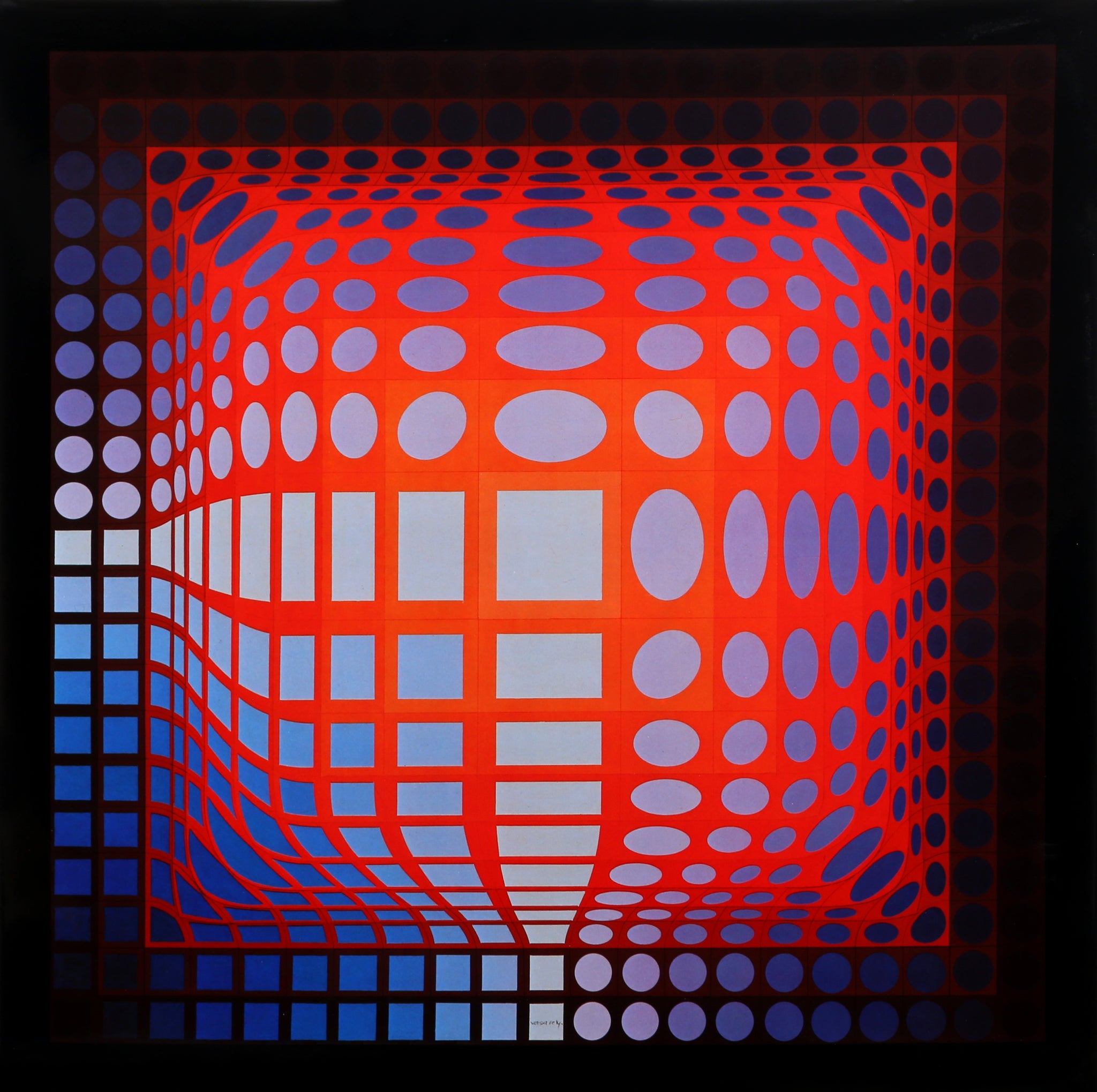 Victor Vasarely, Hungarian (1908 - 1997) - Koska Quemer. Portfolio: Progressions 1, Year: 1974, Medium: Offset Lithograph, Size: 16 x 16 in. (40.64 x 40.64 cm), Frame Size: 21.5 x 21.5 inches, Publisher: Editions Du Griffon Neuchatel, Description: Portfolio of 8 Offset Lithographs on paper created originally by Hungarian artist Victor Vasarely, printed by Editions Du Griffon Neuchatel.