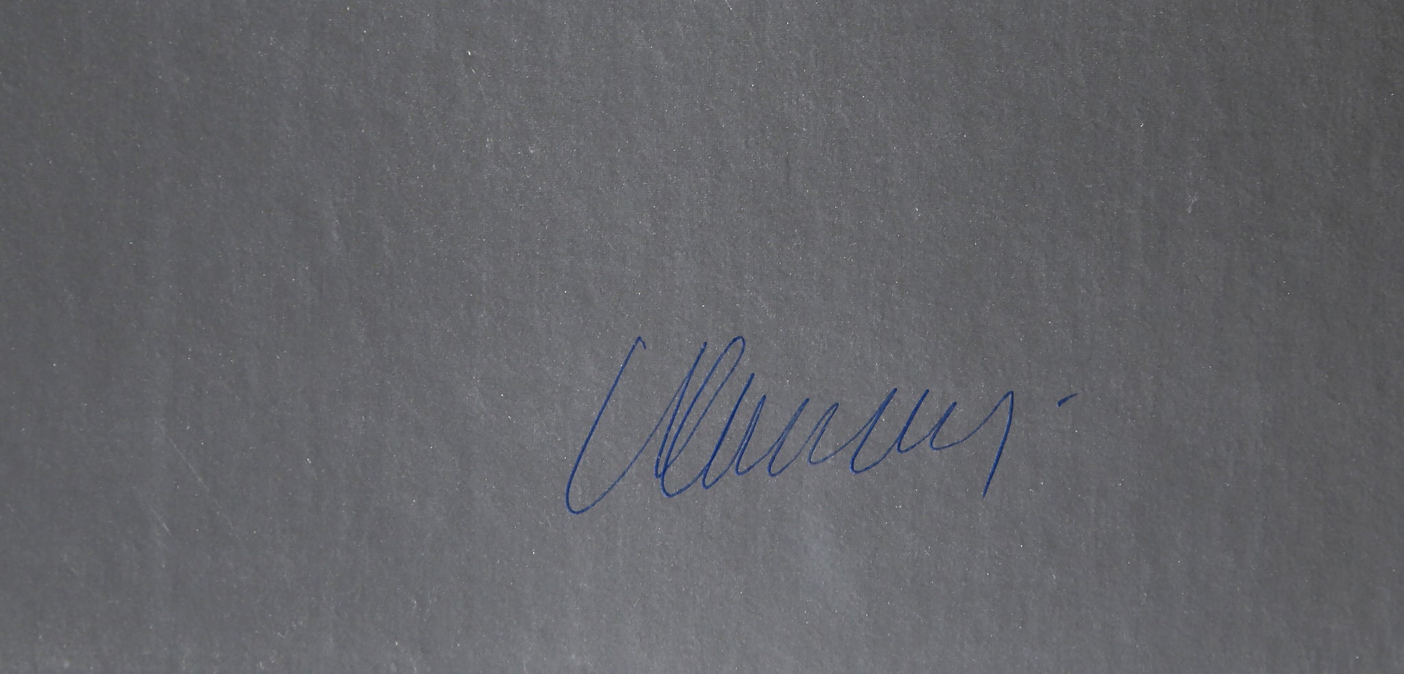 Victor Vasarely, Hungarian (1908 - 1997) - Parmenide (Blue and Silver). Year: circa 1970, Medium: Screenprint on Foil Paper, signed in ink l.r., Size: 25.75 x 21.5 in. (65.41 x 54.61 cm)