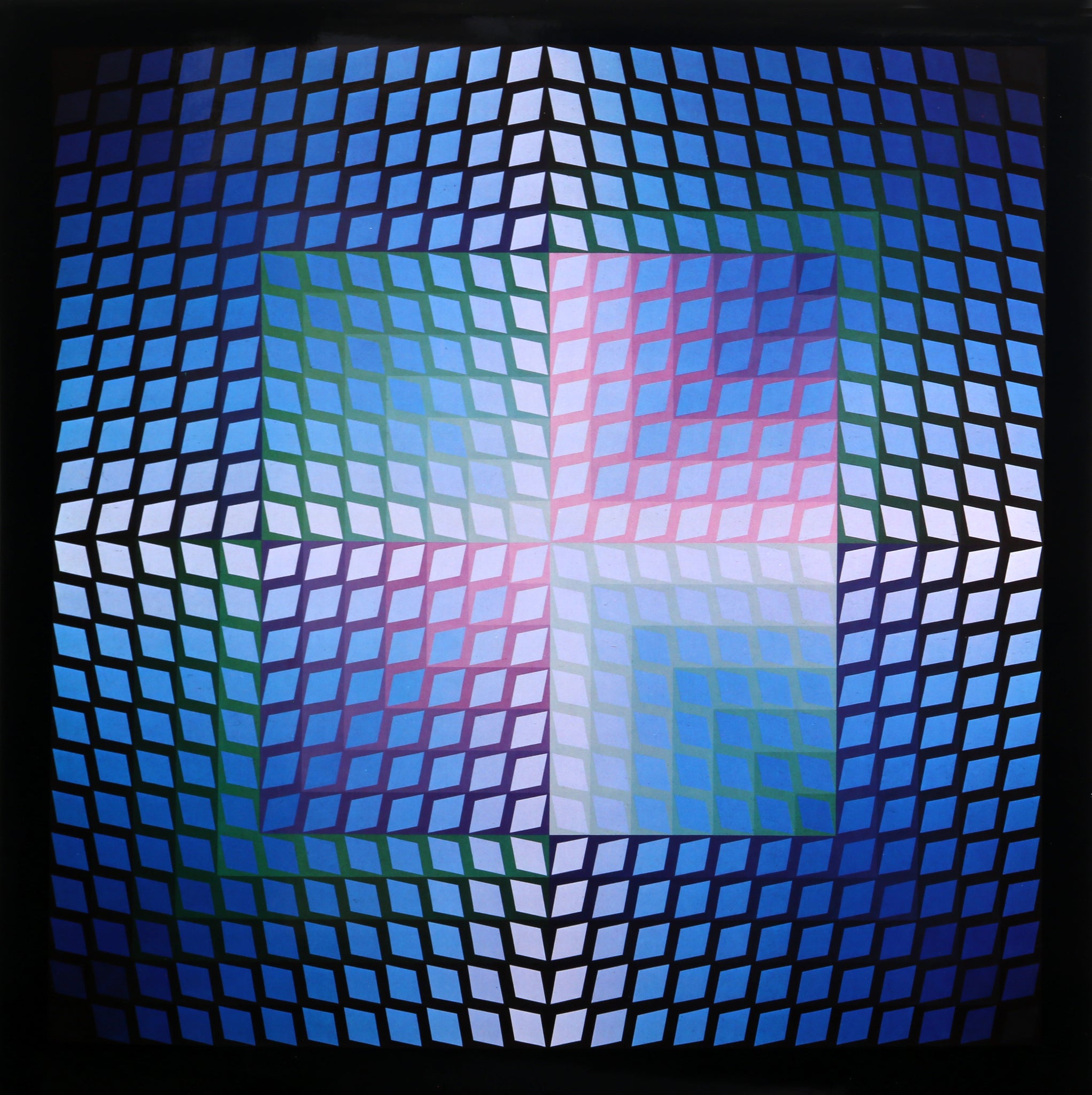 Victor Vasarely, Hungarian (1908 - 1997) - Quasar Paal 2. Portfolio: Progressions 1, Year: 1974, Medium: Offset Lithograph, Size: 16 x 16 in. (40.64 x 40.64 cm), Frame Size: 21.5 x 21.5 inches, Publisher: Editions Du Griffon Neuchatel, Description: Portfolio of 8 Offset Lithographs on paper created originally by Hungarian artist Victor Vasarely, printed by Editions Du Griffon Neuchatel.