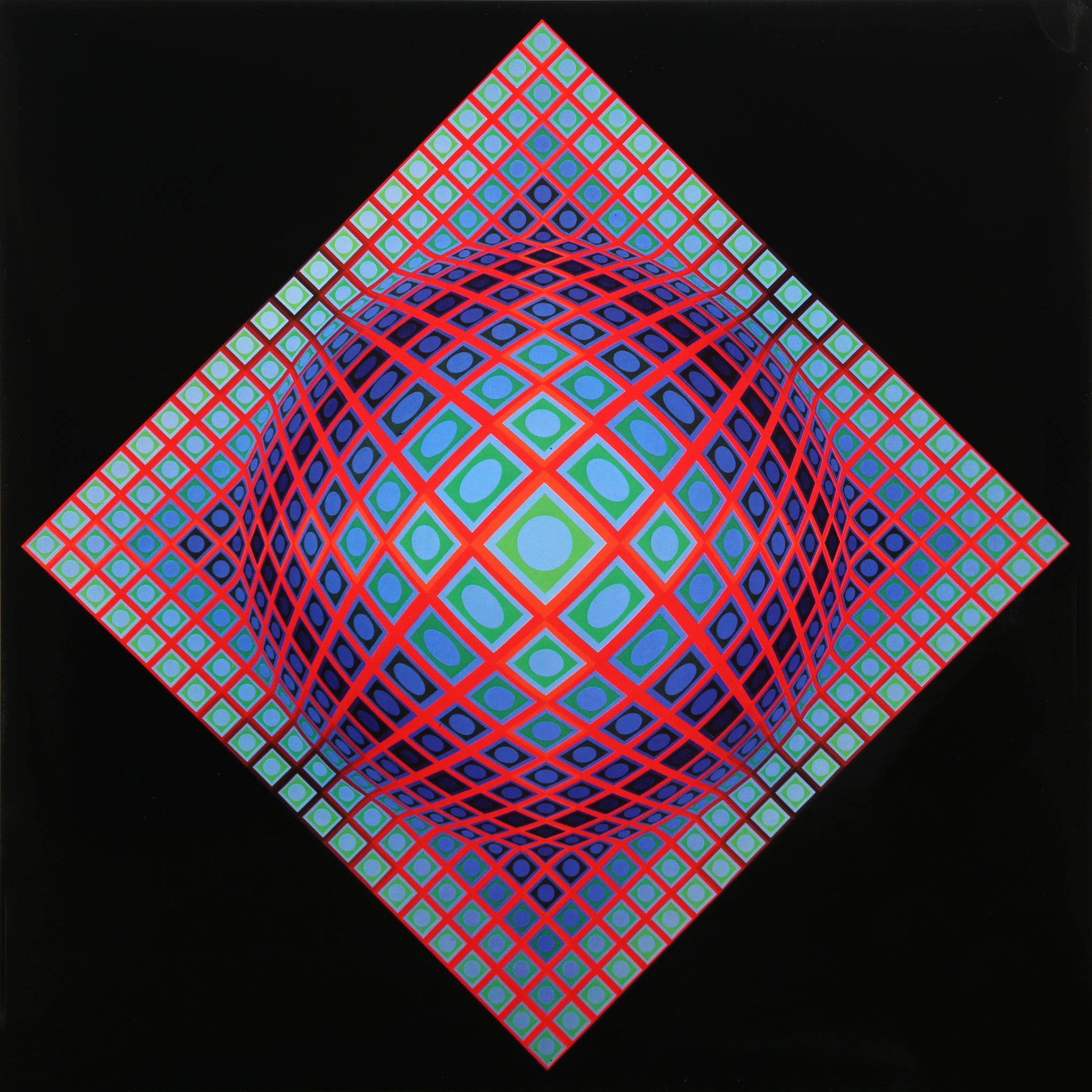 Victor Vasarely, Hungarian (1908 - 1997) - Vega 201. Portfolio: Vega, Year: 1971, Medium: Offset Lithograph, Size: 10.75 x 10.75 in. (27.31 x 27.31 cm), Frame Size: 14 x 14 inches, Publisher: Editions Du Griffon Neuchatel, Description: