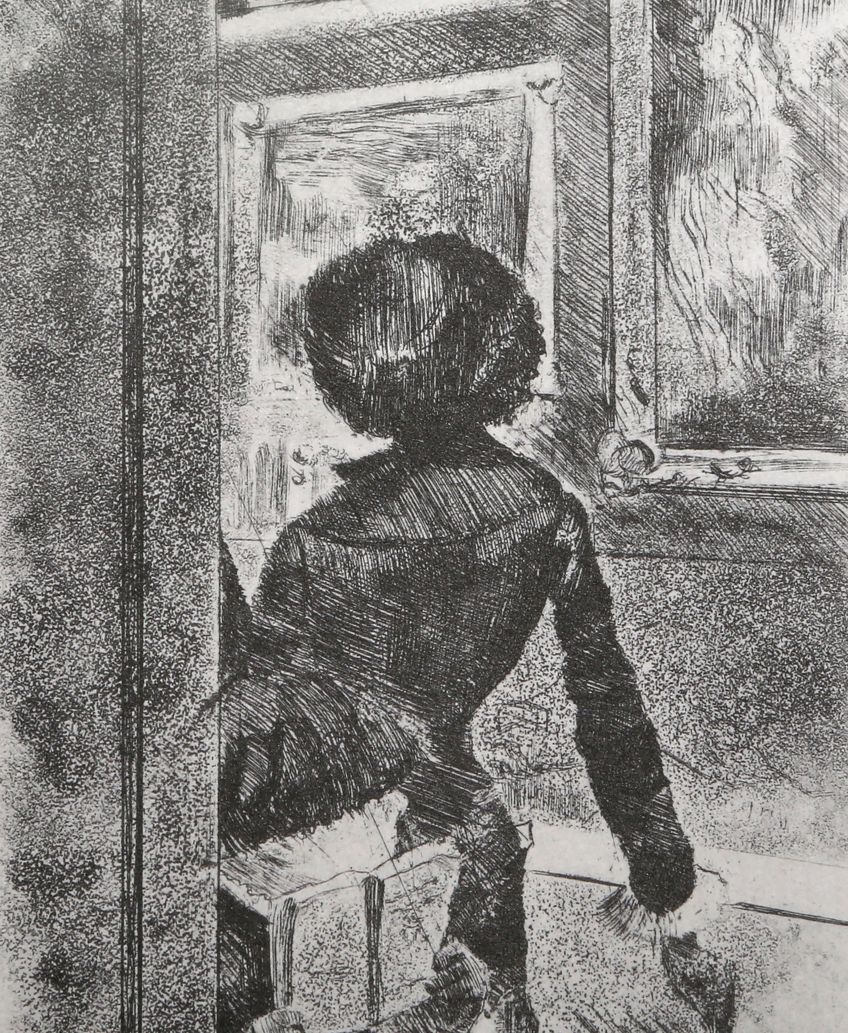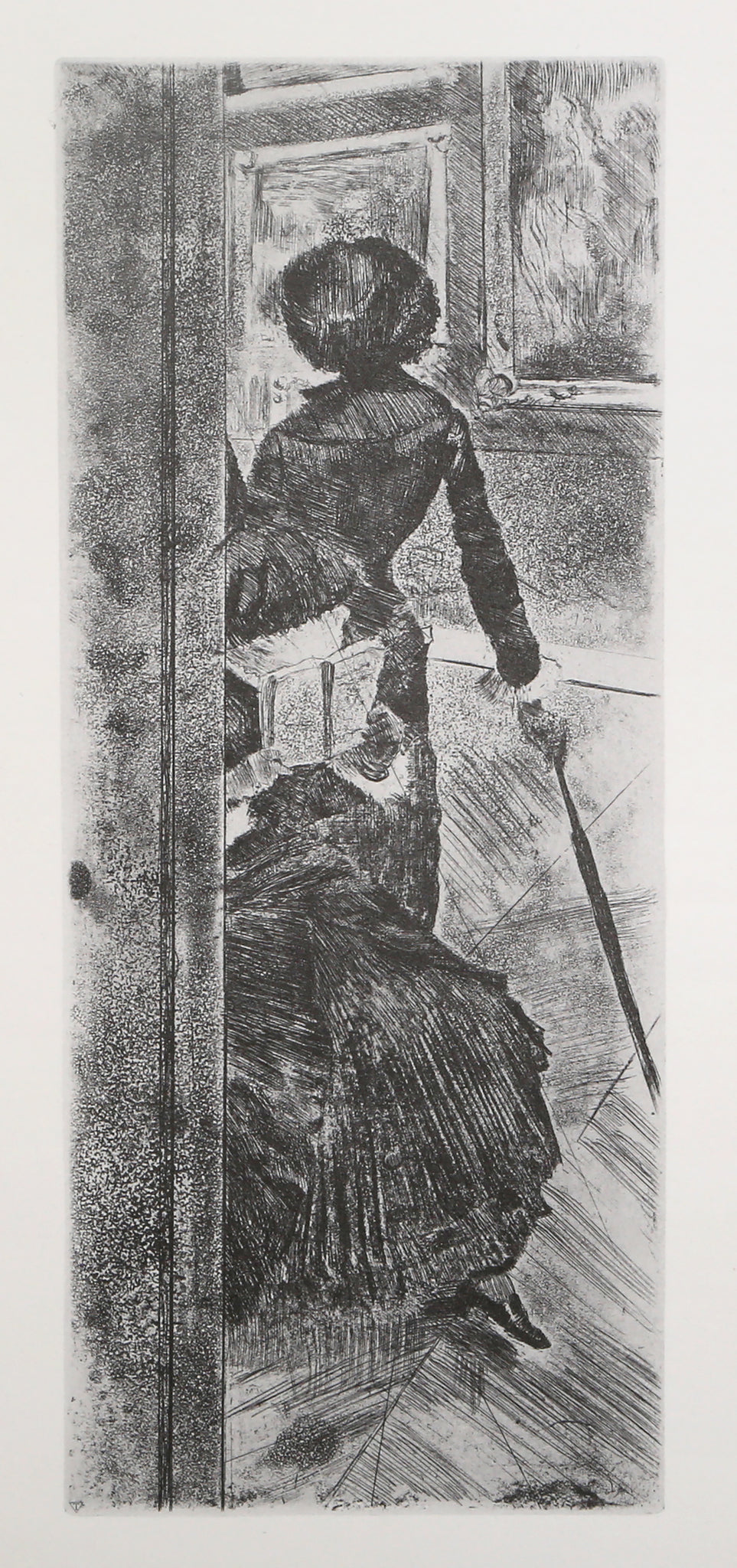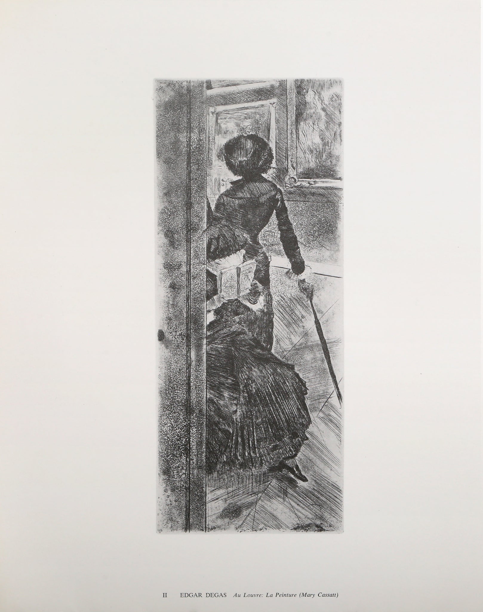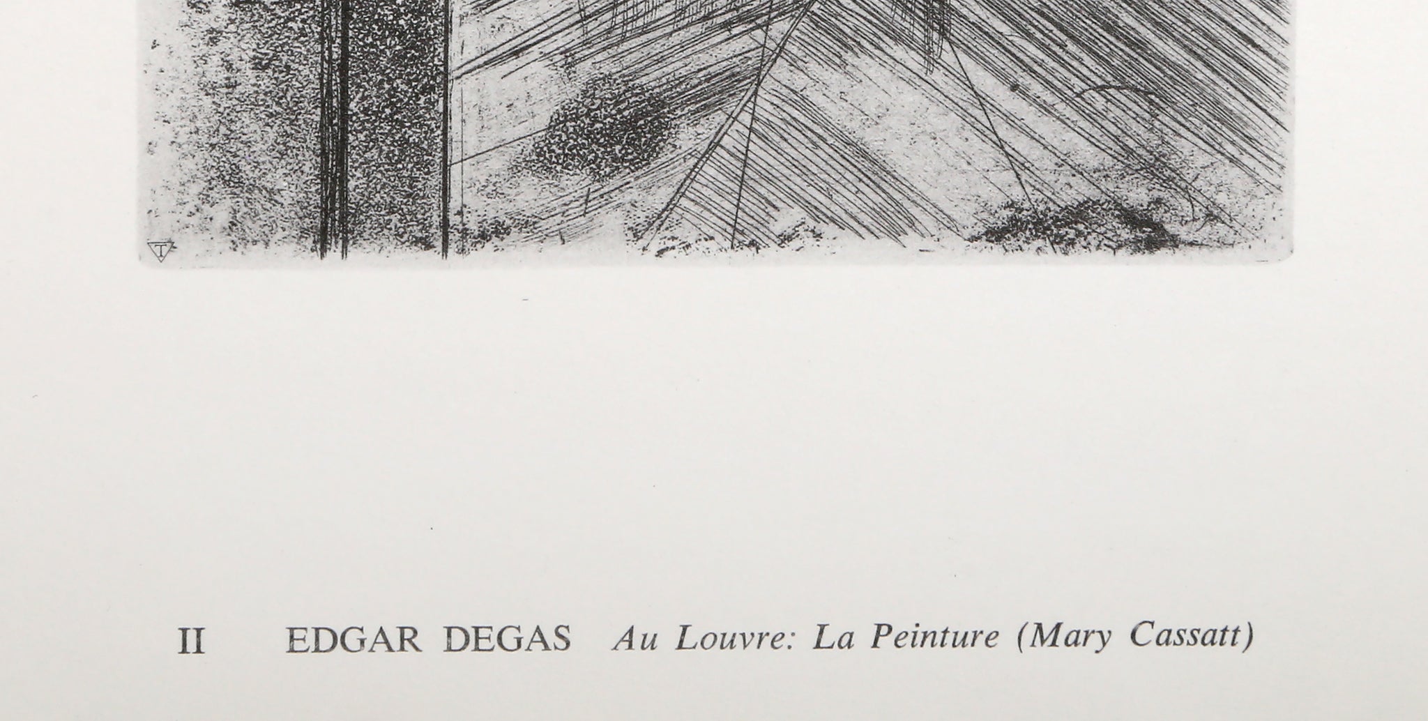 Edgar Degas, After, French (1834 - 1917) - Au Louvre: La Peinture (Mary Cassatt), Portfolio: Twenty Four Masterpieces of Graphic Art, Year: Year Printed 1974, Medium: Collotype, Image Size: 12.5 x 5 inches, Size: 17 x 14 in. (43.18 x 35.56 cm), Printer: Triton Press, Inc, New York, Publisher: Triton Press, Inc, New York
