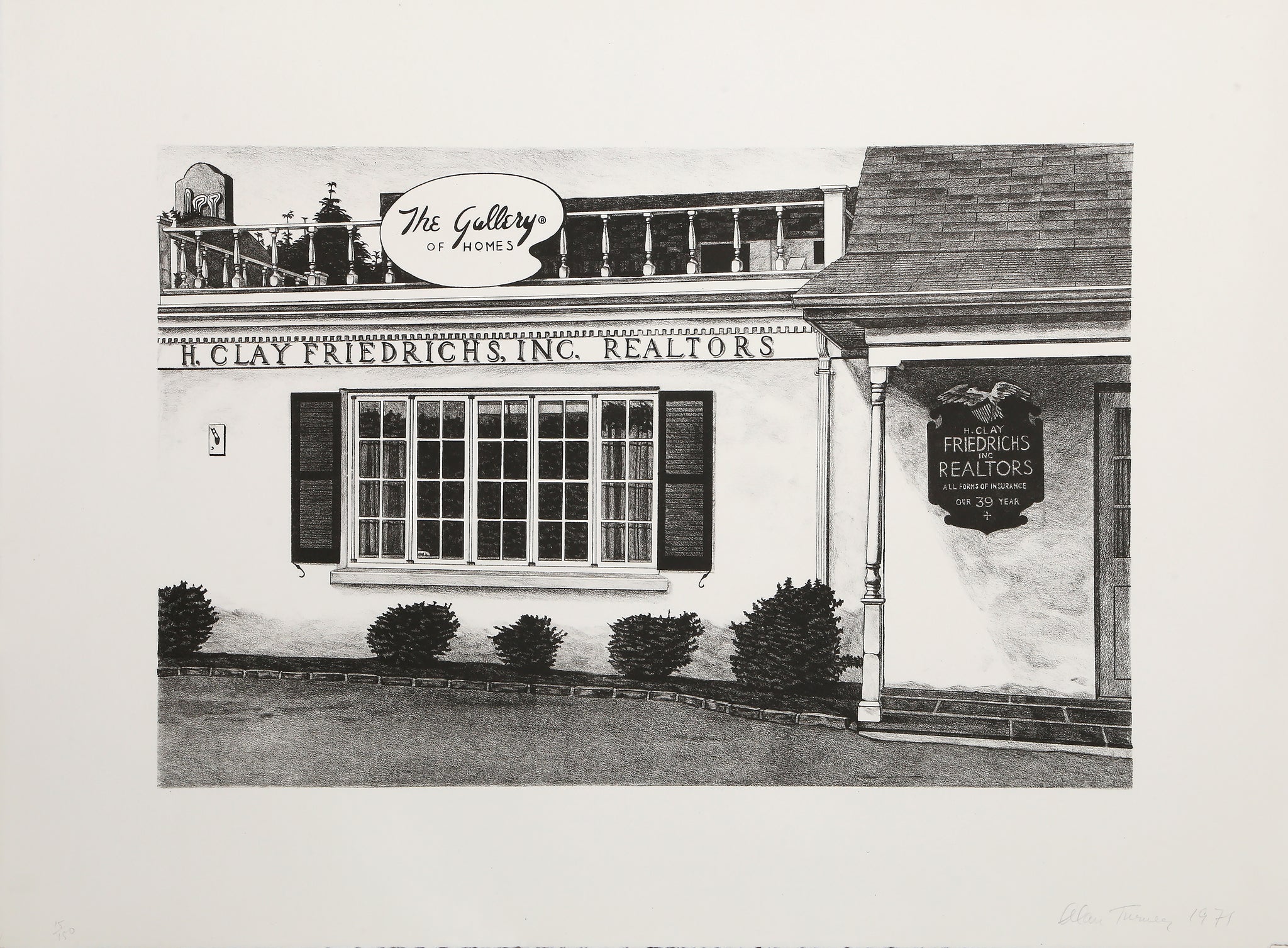 Alan Torey - The Gallery of Homes. Year: 1971, Medium: Lithograph, signed, numbered and dated in pencil, Edition: 15/150, Image Size: 15.5 x 23.5 inchces, Size: 23 x 31 in. (58.42 x 78.74 cm)