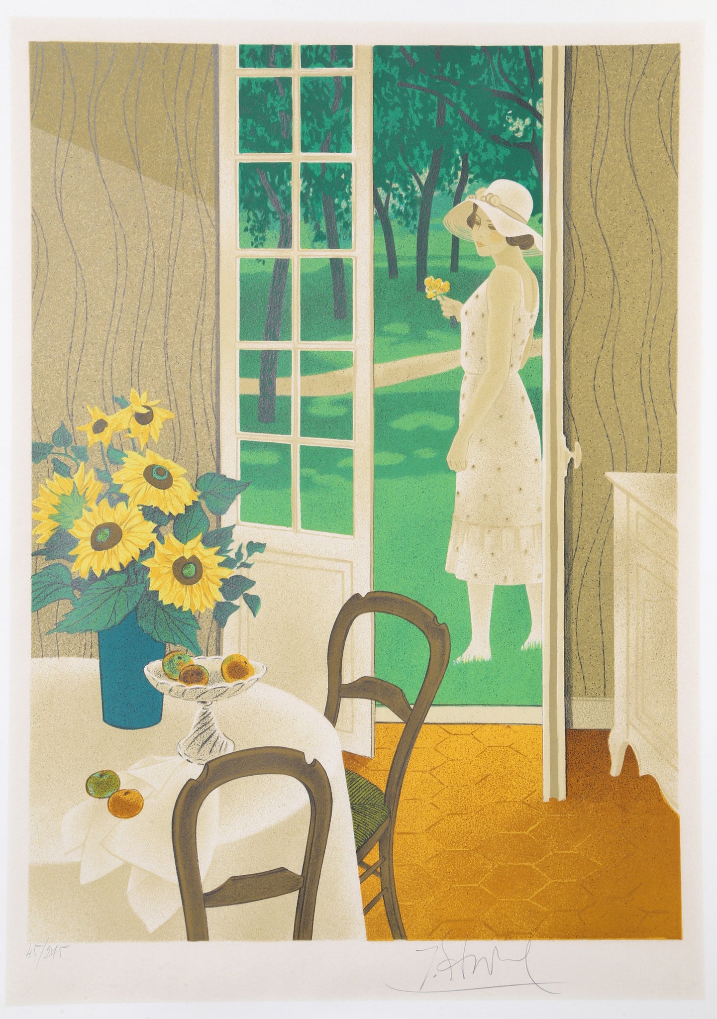 Yves Ganne, French (1931 - ) - Summertime. Year: circa 1981, Medium: Lithograph, signed and numbered in pencil, Edition: 45/275, Image Size: 27 x 18.5 inches, Size: 30 x 21 in. (76.2 x 53.34 cm), Printer: Atelier Grapholith, Paris