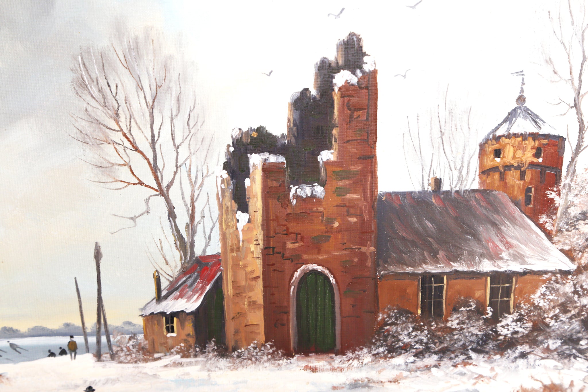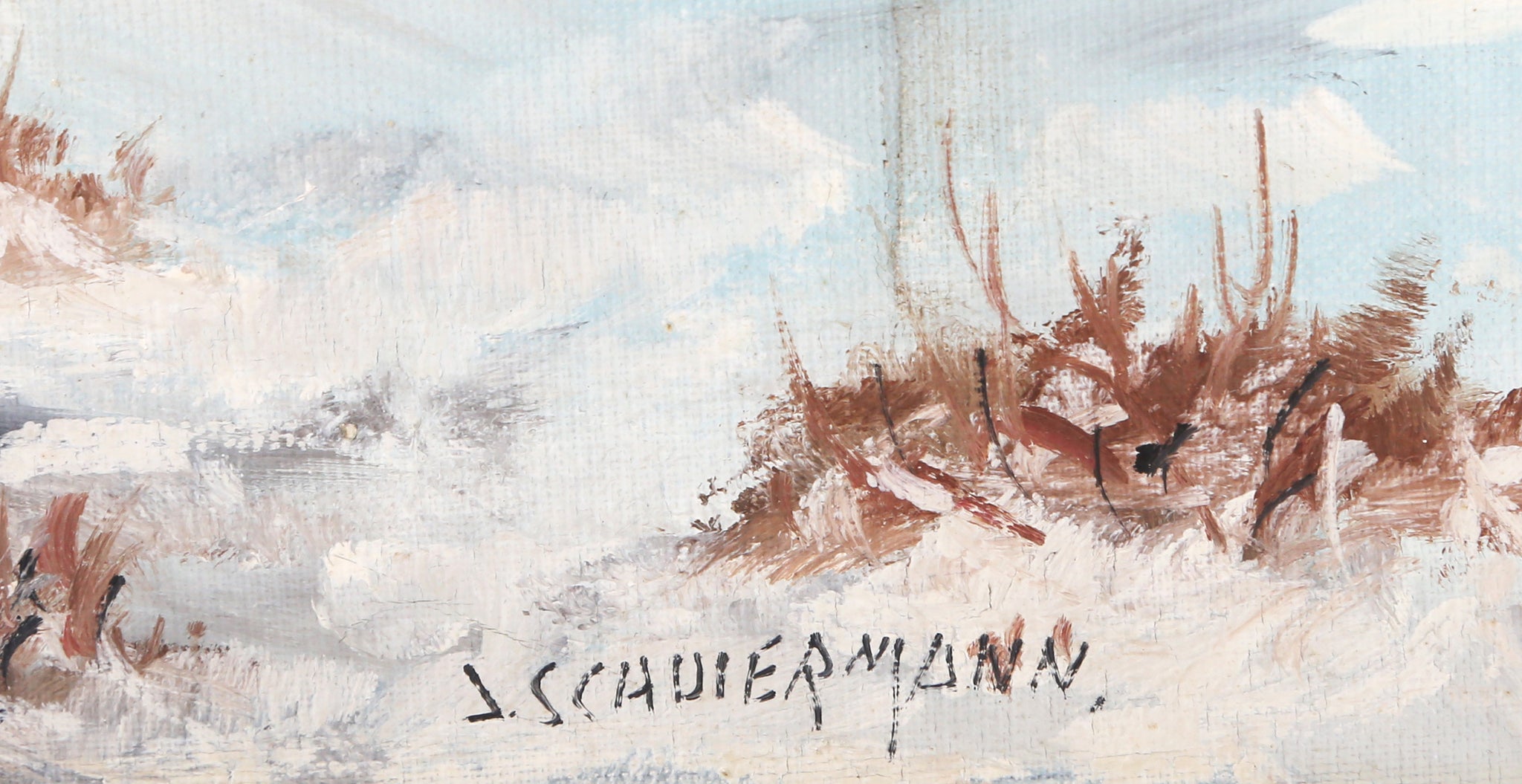 J. Schuiermann - Ice Skating. Medium: Oil on Canvas, signed, Size: 20.25 x 23.5 in. (51.44 x 59.69 cm)