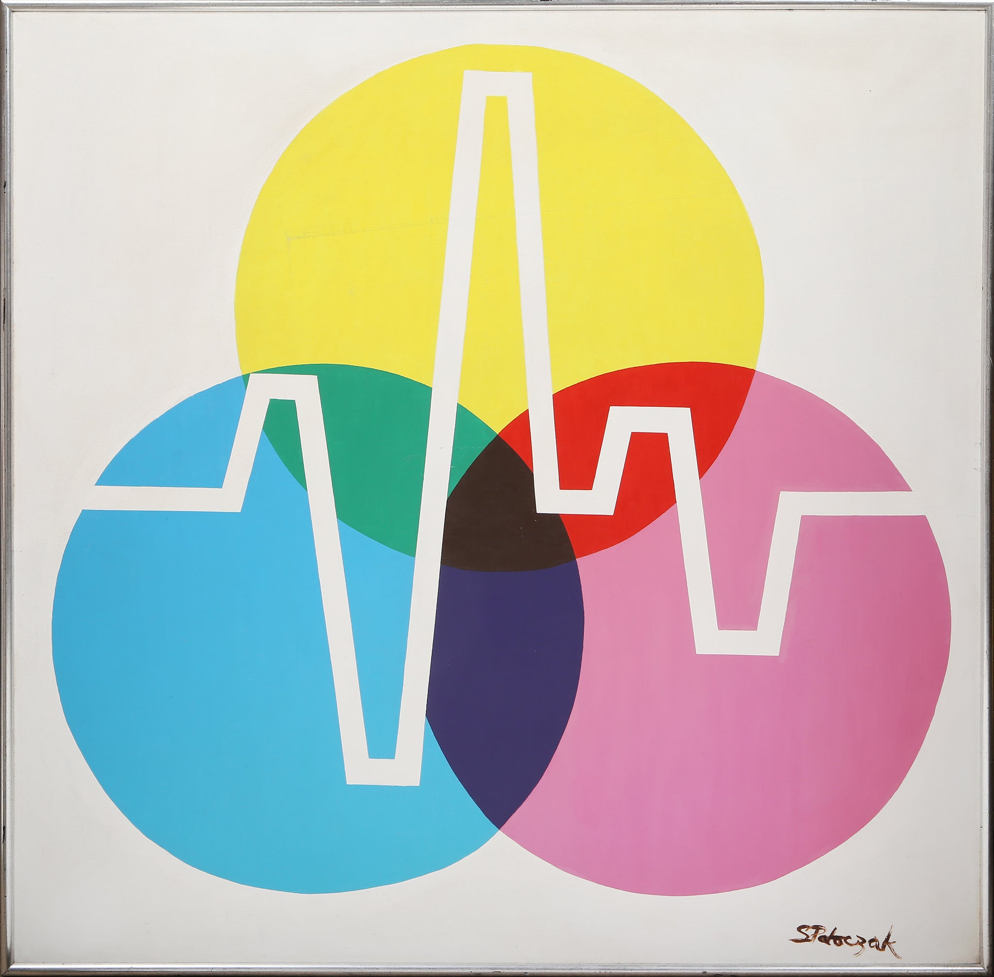 S Potoczak - Cardiogram - EKG. Year: circa 1980, Medium: Oil on Canvas, signed lower right, Size: 48 x 48 in. (121.92 x 121.92 cm), Frame Size: 49 x 49 inches