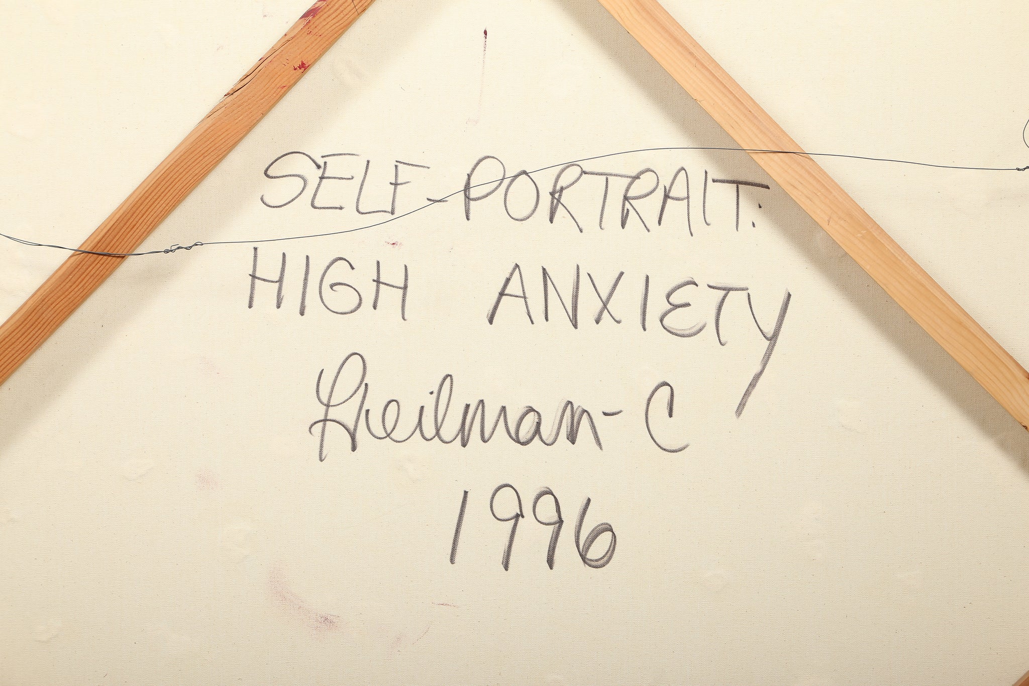 Gloria Heilman, American (1961 - ) - Self Portrait - High Anxiety. Year: 1996, Medium: Oil and Plaster on Canvas, signed, titled and dated on verso, Size: 48 x 48 in. (121.92 x 121.92 cm)