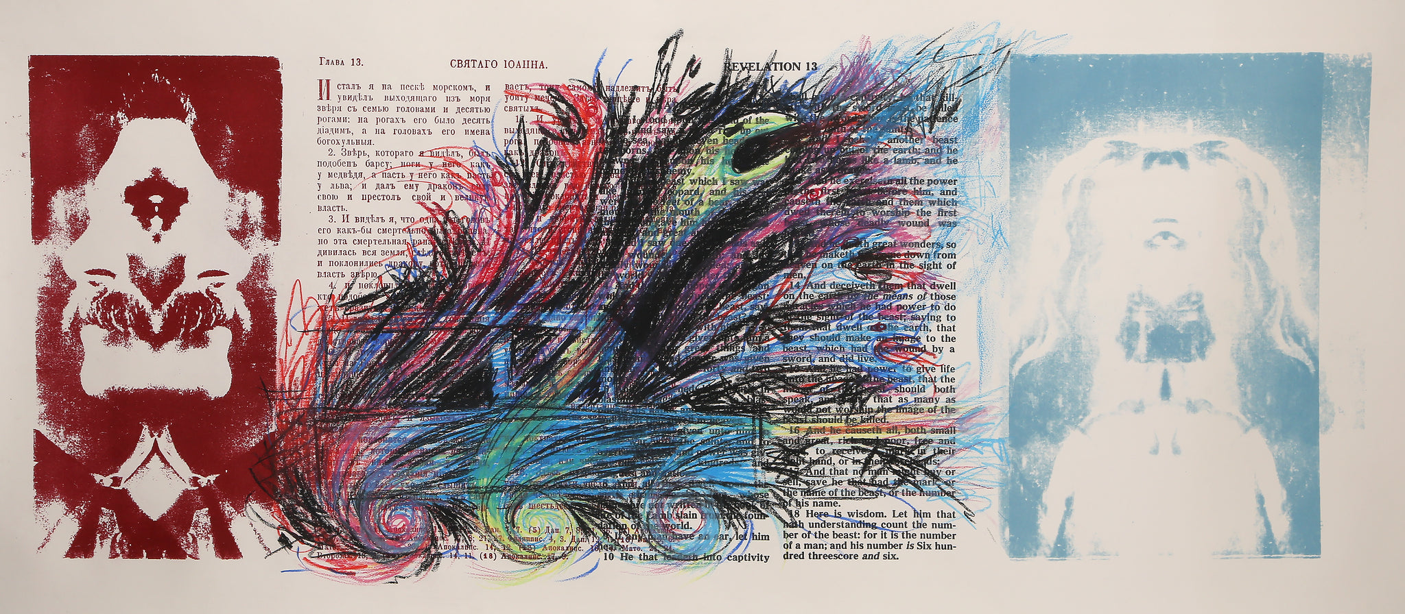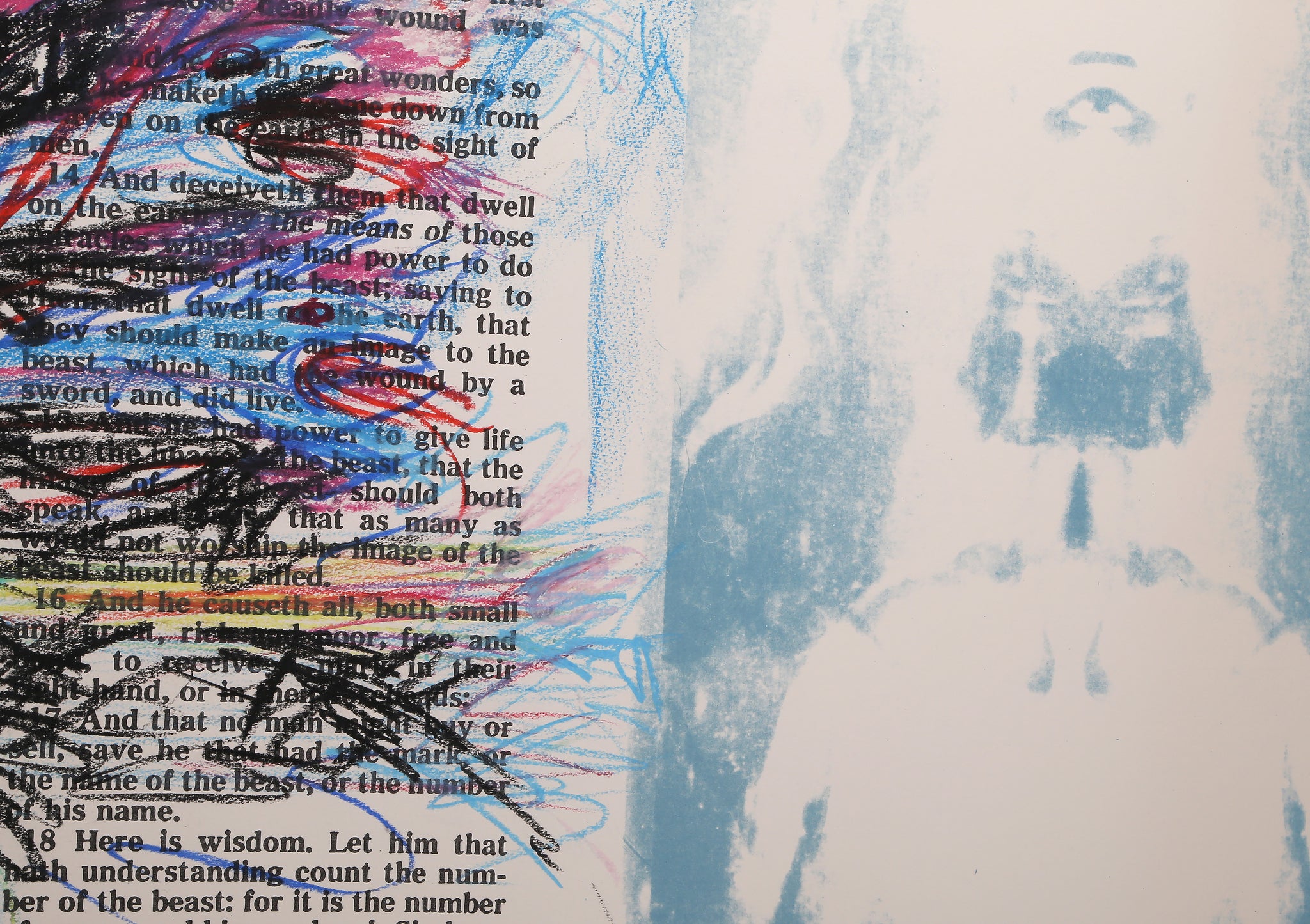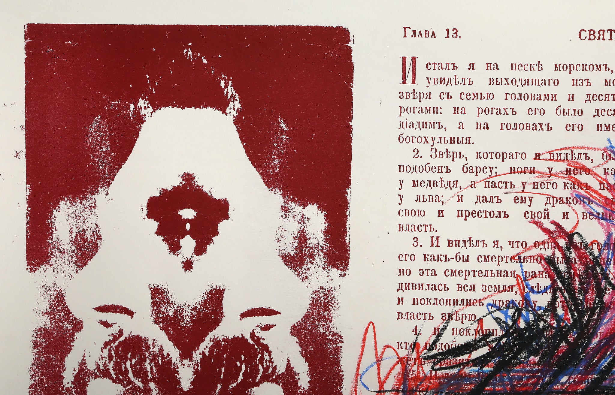Engage with the compelling dialogue between spirituality and modernity in this conceptual screenprint by Komar and Melamid featuring biblical text interwoven with automotive imagery and human faces. This pivotal work from The Double Revelation series represents the Conceptual Art and Religious Art movements at their most provocative, layering Jesus references with car symbolism to examine how sacred and secular coexist in contemporary American life. The complex composition challenges viewers to reconsider traditional religious narratives through the lens of consumer culture and modern identity. This museum-quality print exemplifies the collaborative duo's groundbreaking approach to cultural critique, making it an important acquisition for collectors of Conceptual Art, Religious Art, and socially engaged contemporary portraiture.