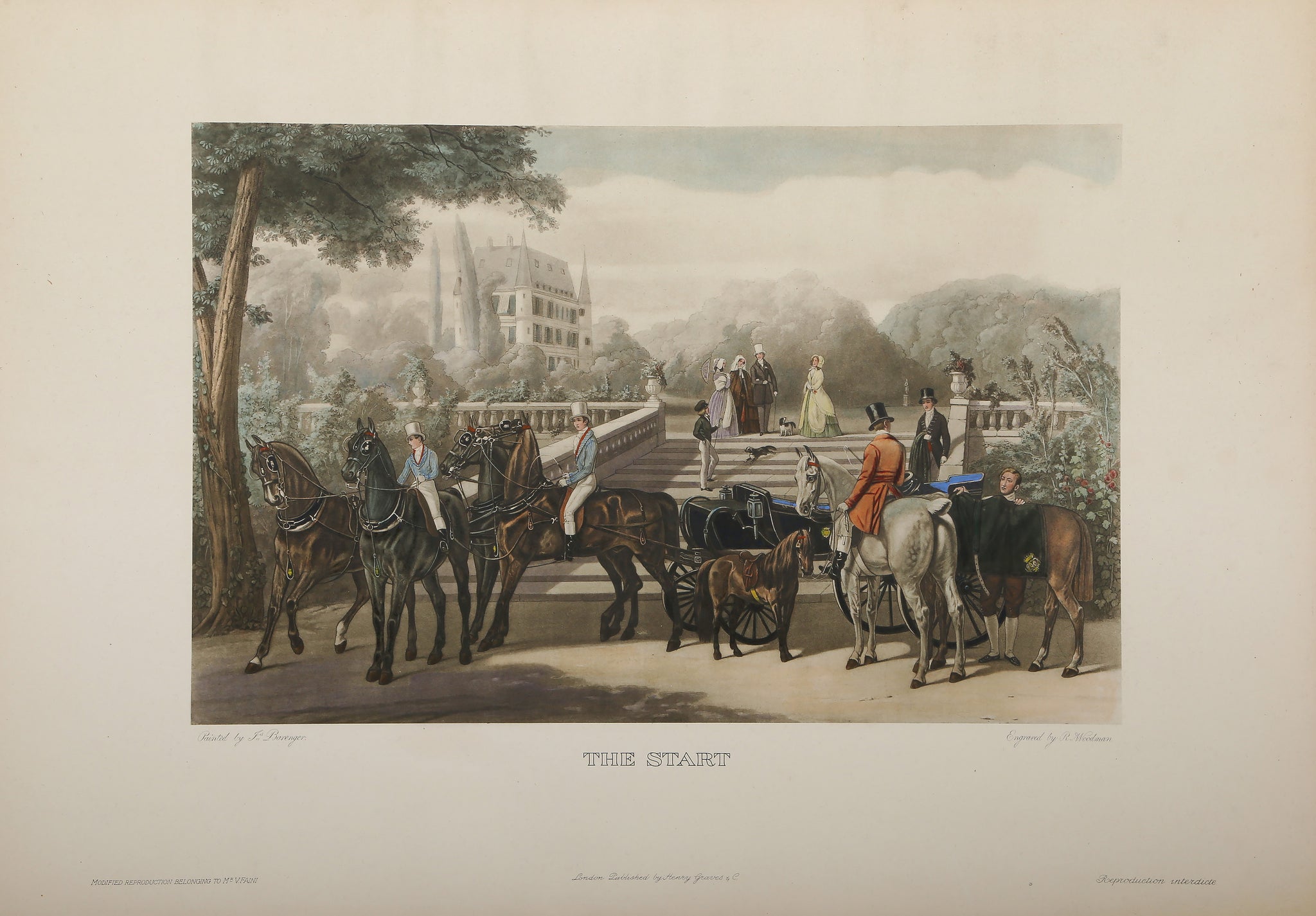 James Barenger, After R. Woodman, English (1780 - 1831) - Shooting in Winter. Medium: Hand colored engraving, Image Size: 13 x 19.5 inches, Size: 19.5 x 28 in. (49.53 x 71.12 cm)