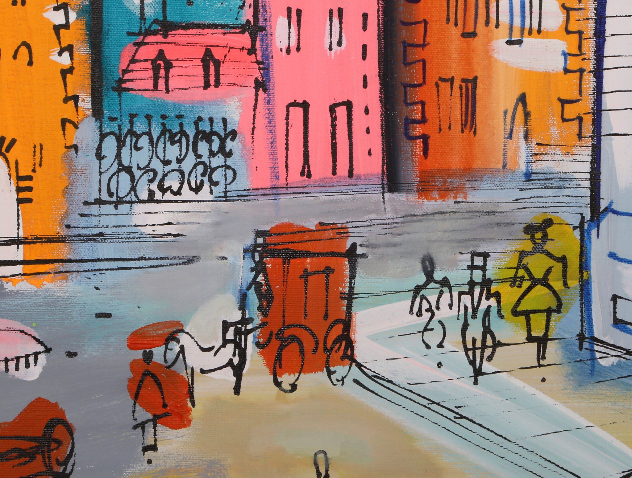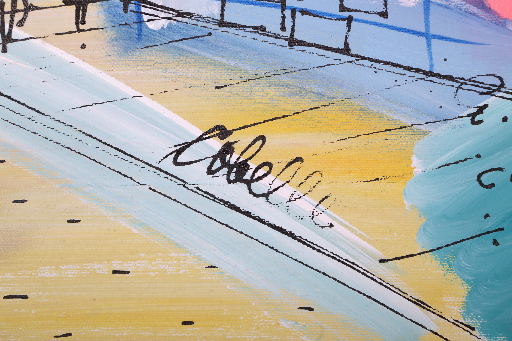 Charles Cobelle, French (1902 - 1994) - Paris Plaza. Year: circa 1949, Medium: Acrylic on Canvas, signed, Size: 20 x 24 in. (50.8 x 60.96 cm), Description: An Impressionist city scene by French artist Charles Cobelle. The boldly-colored painting is signed by the artist.