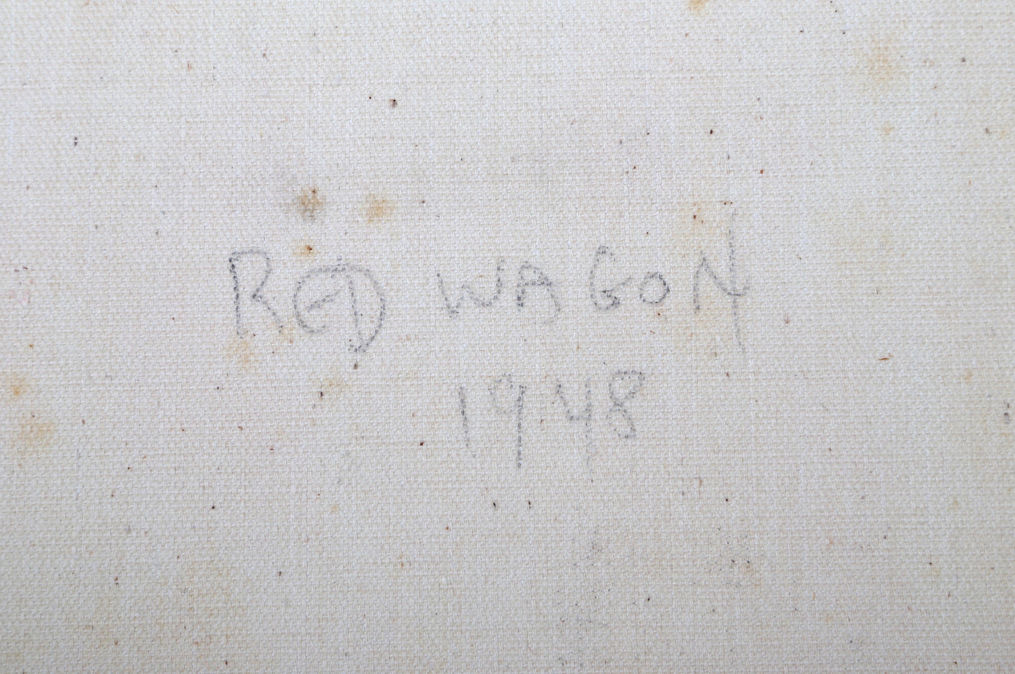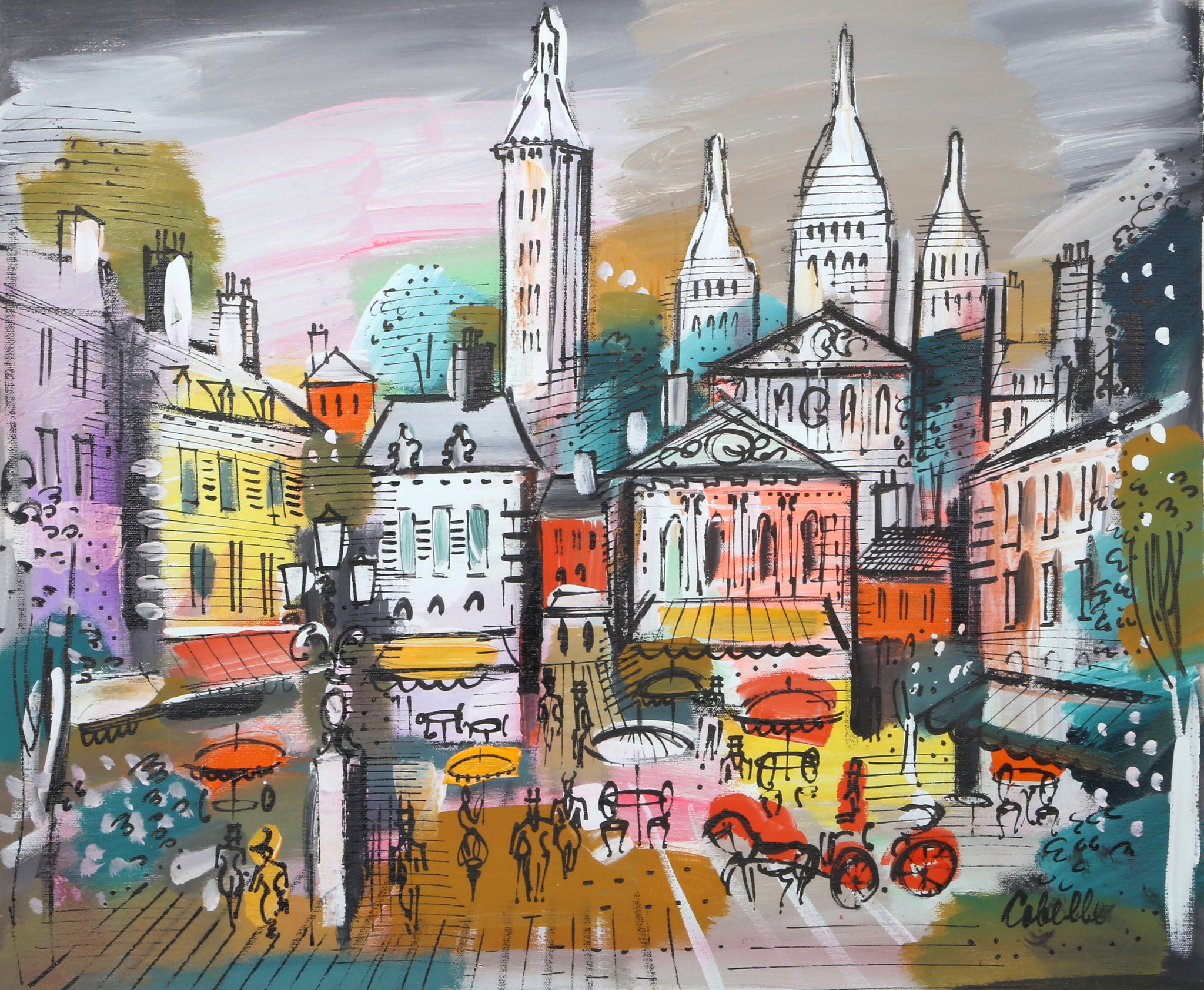Charles Cobelle, French (1902 - 1994) - Red Wagon. Year: 1948, Medium: Acrylic on Canvas, signed, Size: 20 x 24 in. (50.8 x 60.96 cm), Description: An Impressionist city scene by French artist Charles Cobelle. The boldly-colored painting is signed by the artist.