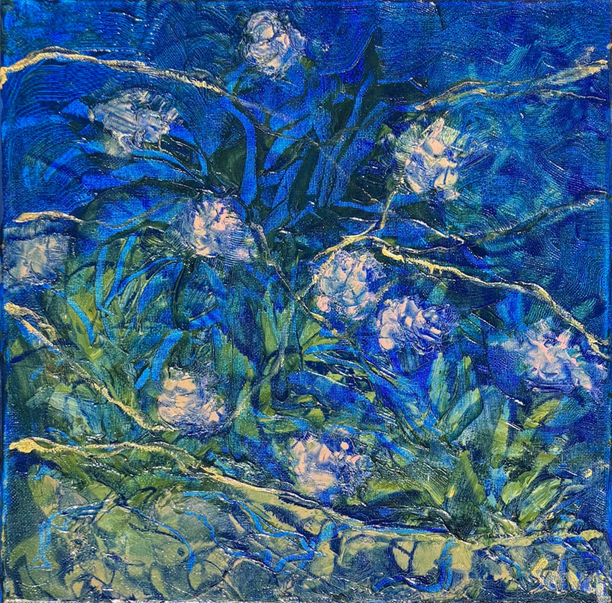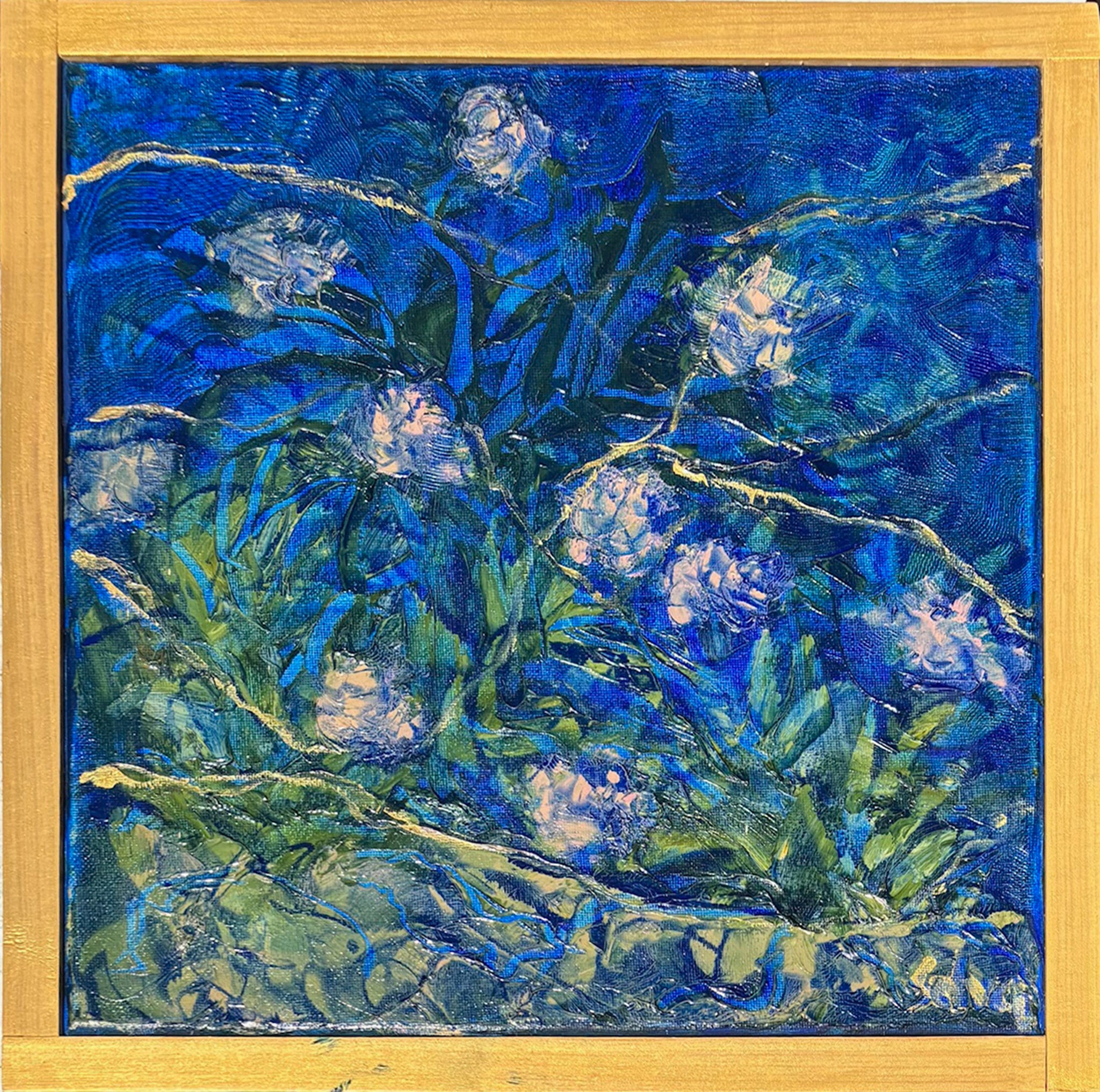Selva Ozelli - Healing Waters. Year: 2023, Medium: Oil on Canvas, signed and titled verso, Size: 12 x 12 in. (30.48 x 30.48 cm), Frame Size: 13.5 x 13.5 inches