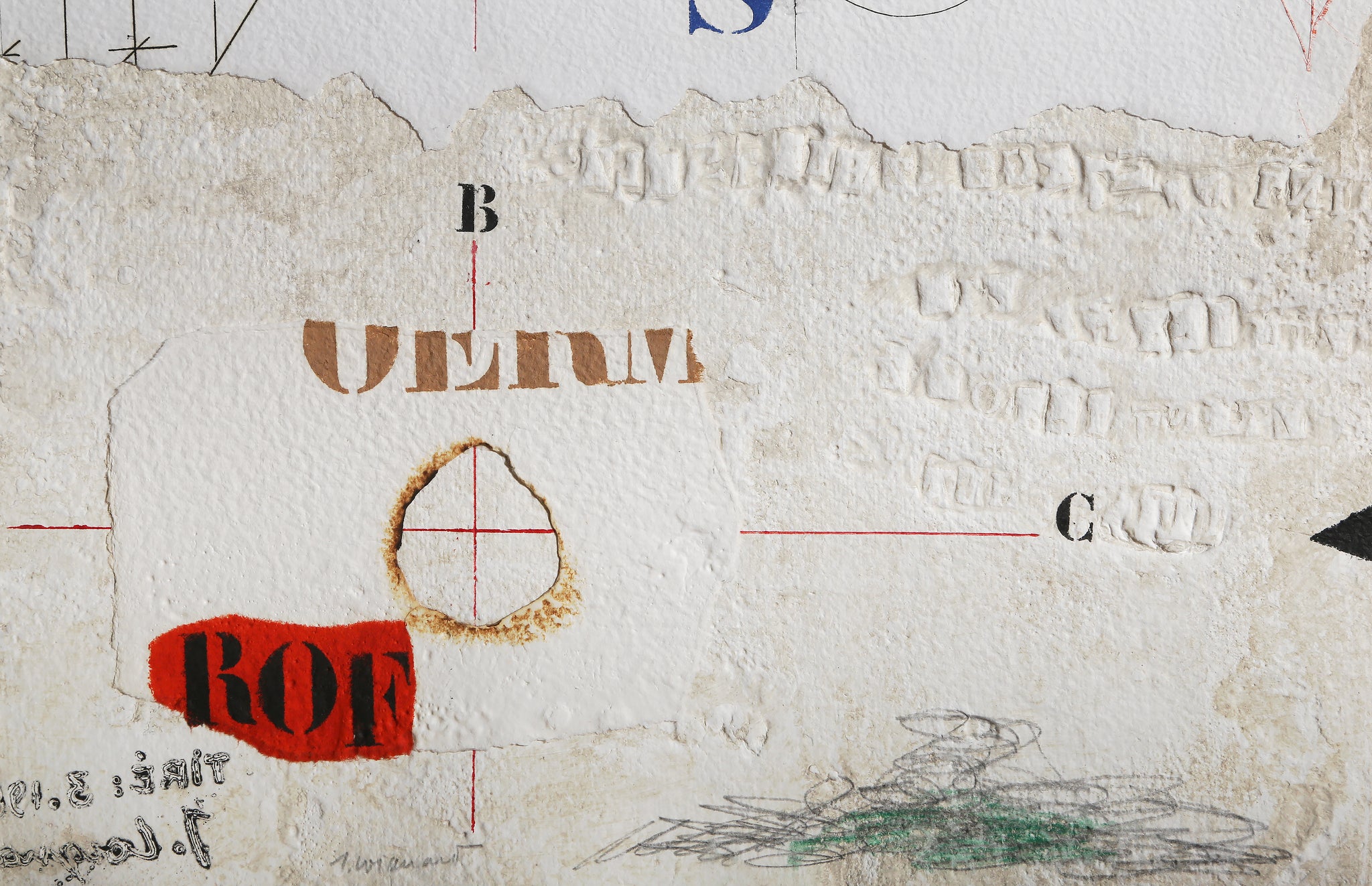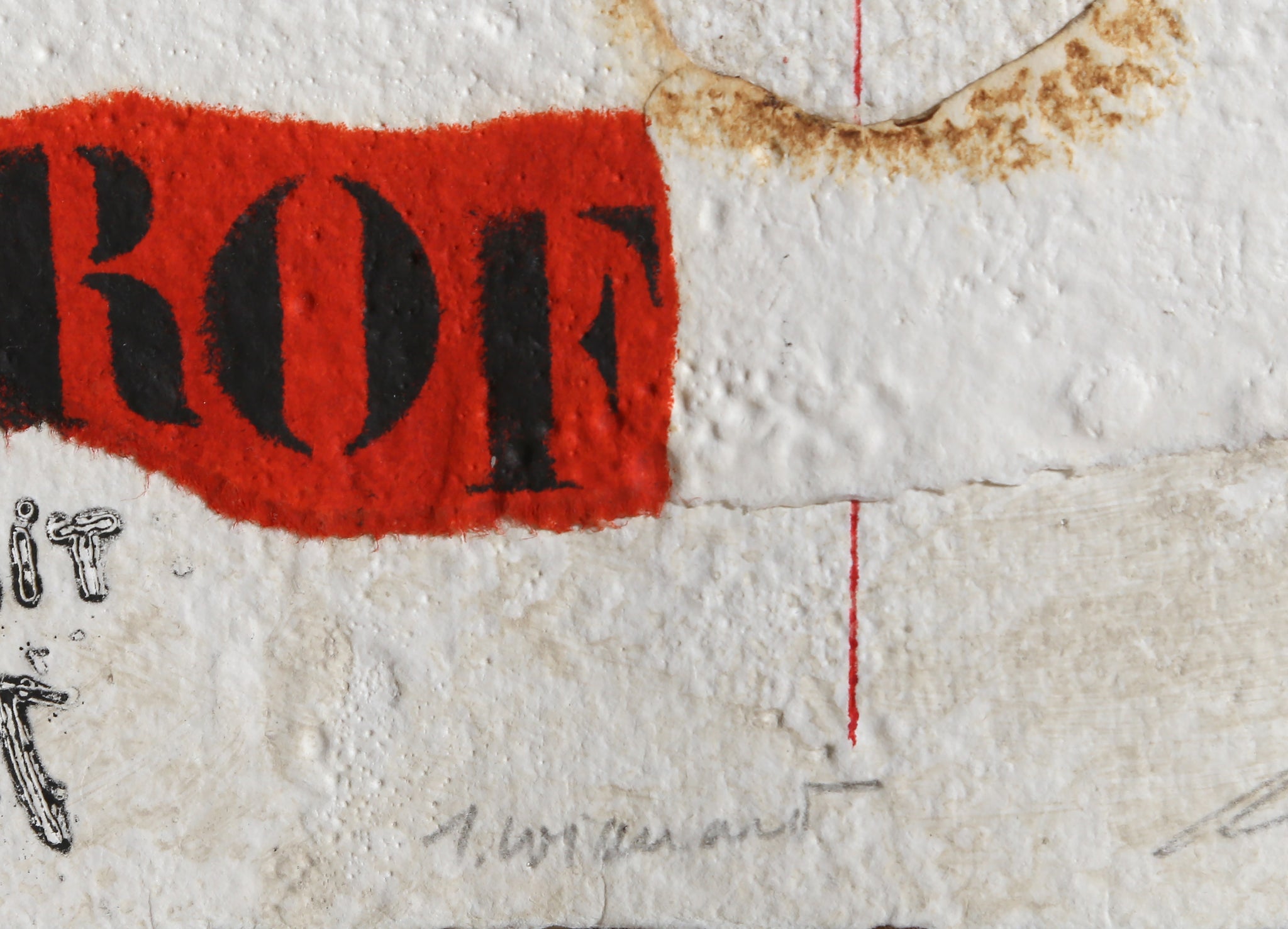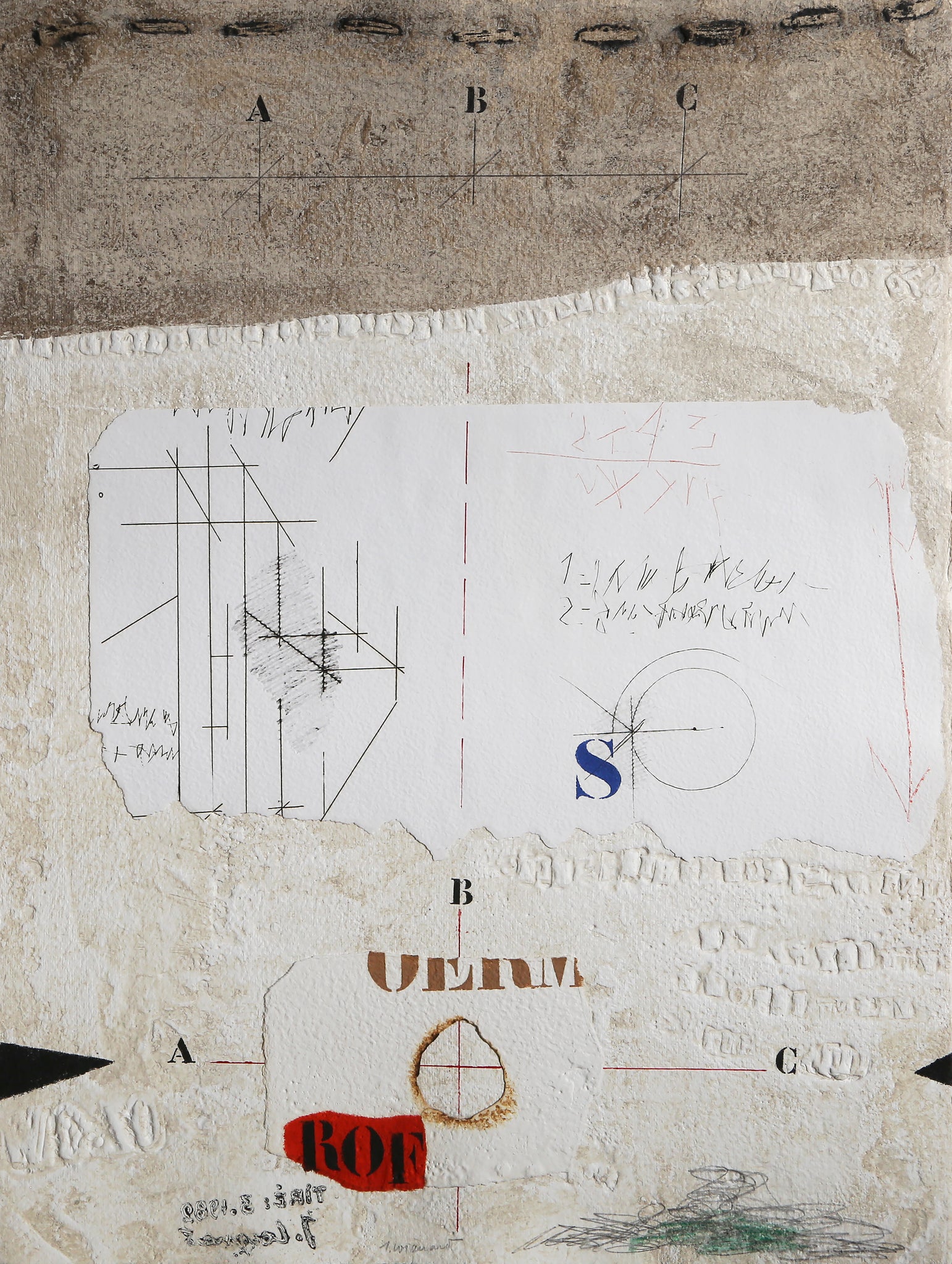 James Coignard, French (1925 - 2008) - Report D'Horizontalite, Portfolio: Song of the Broad-Axe, Year: 1982, Medium: Hand Colored Etching with Collage on hand-made Moulin de Larroque paper, signed in pencil lower right, Edition: 95, Size: 29.5 x 22.75 in. (74.93 x 57.79 cm), Printer: Pasnic, Paris, Publisher: Transworld Art, Inc, NYC