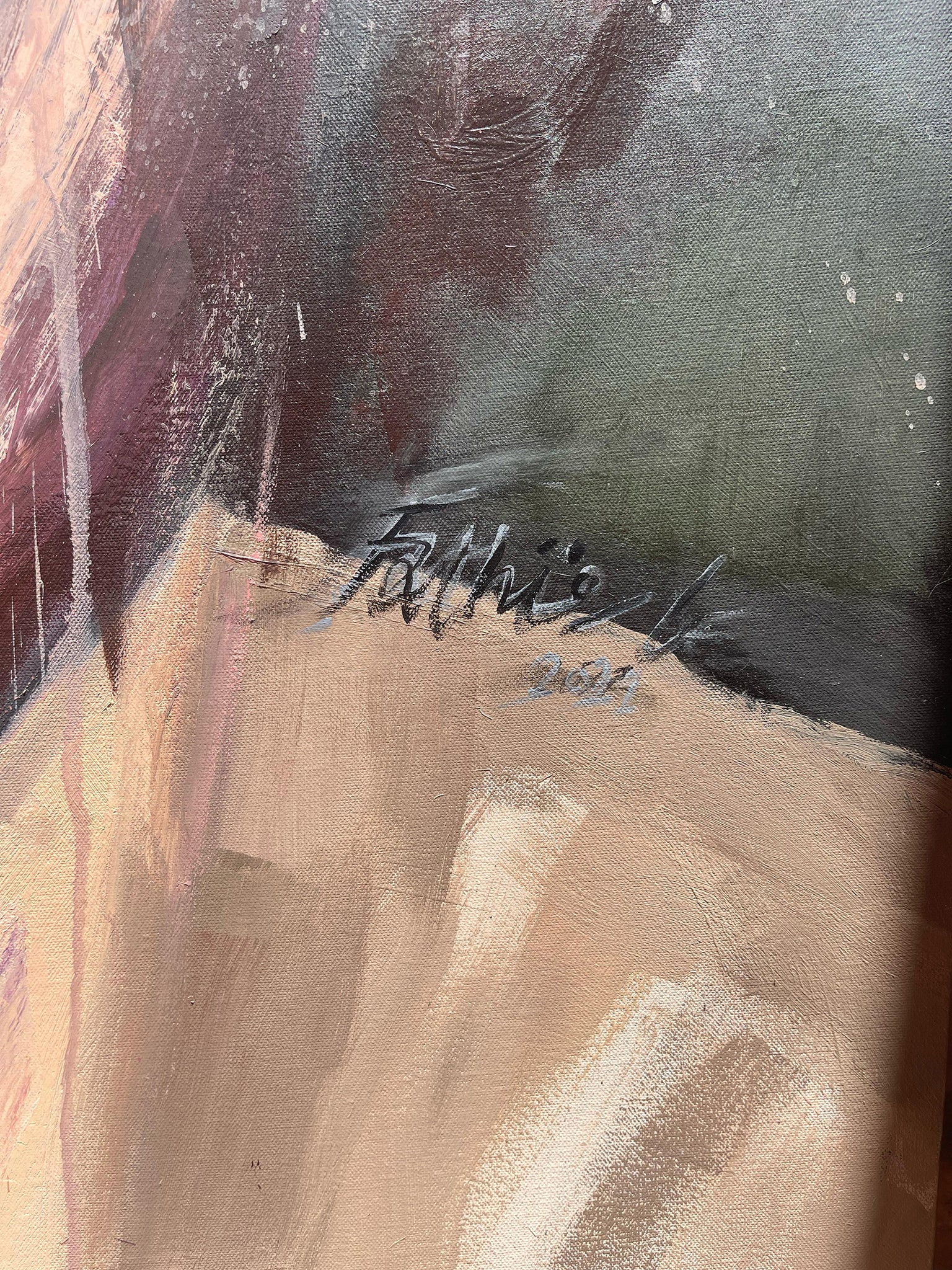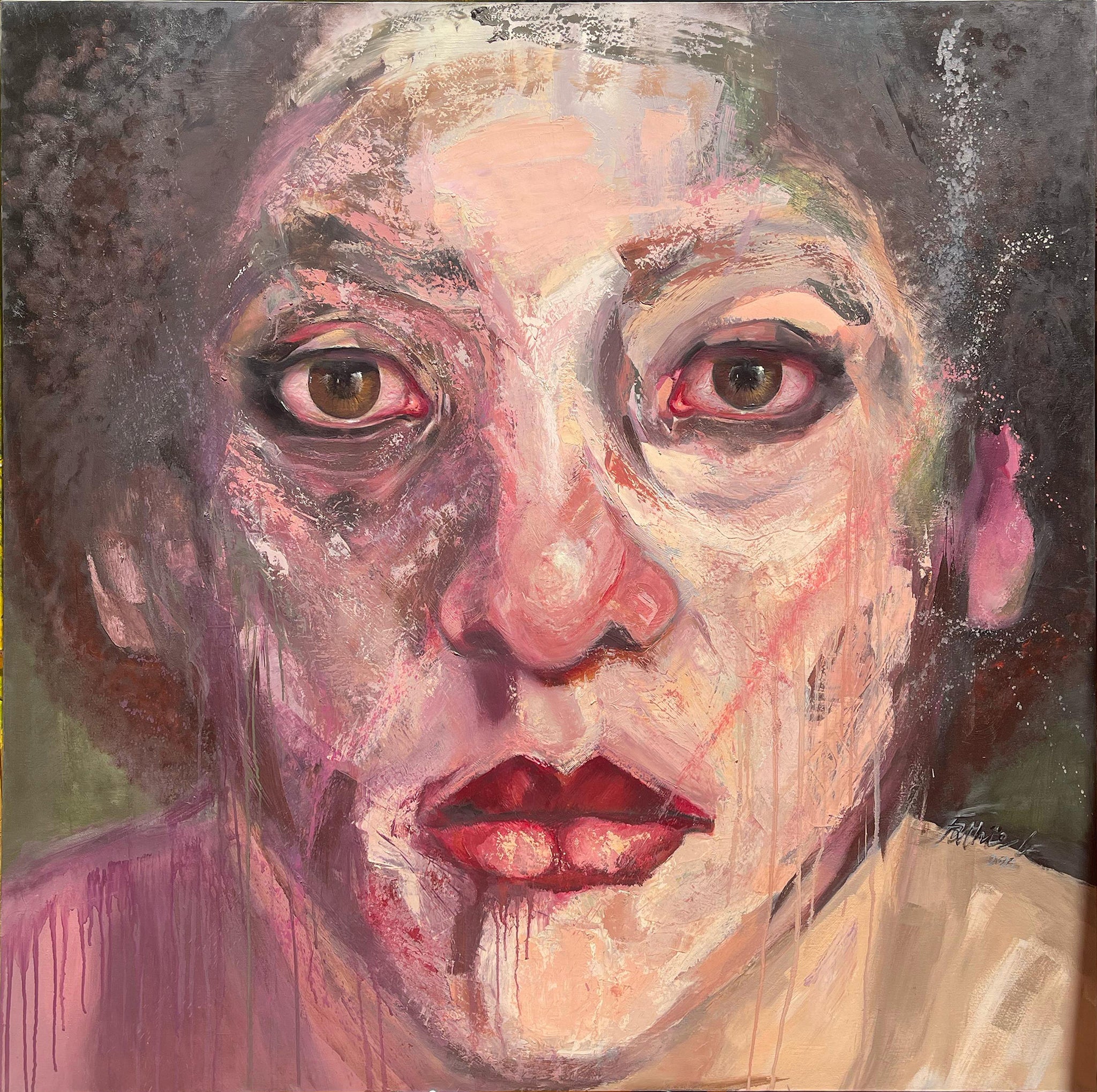 Fathi Aref, Jordanian - Silence. Year: 2024, Medium: Oil on Canvas, Size: 59.1 x 59.1 in. (150.11 x 150.11 cm)