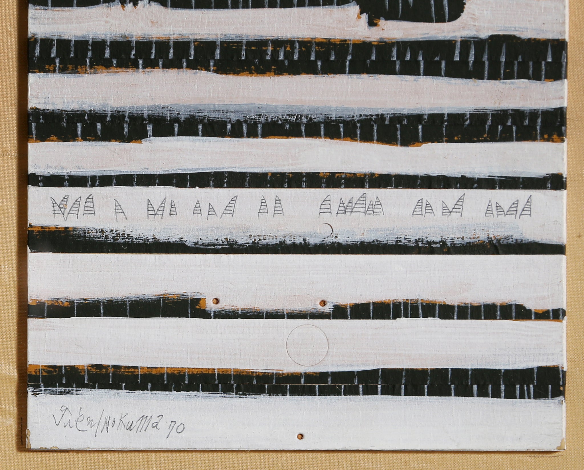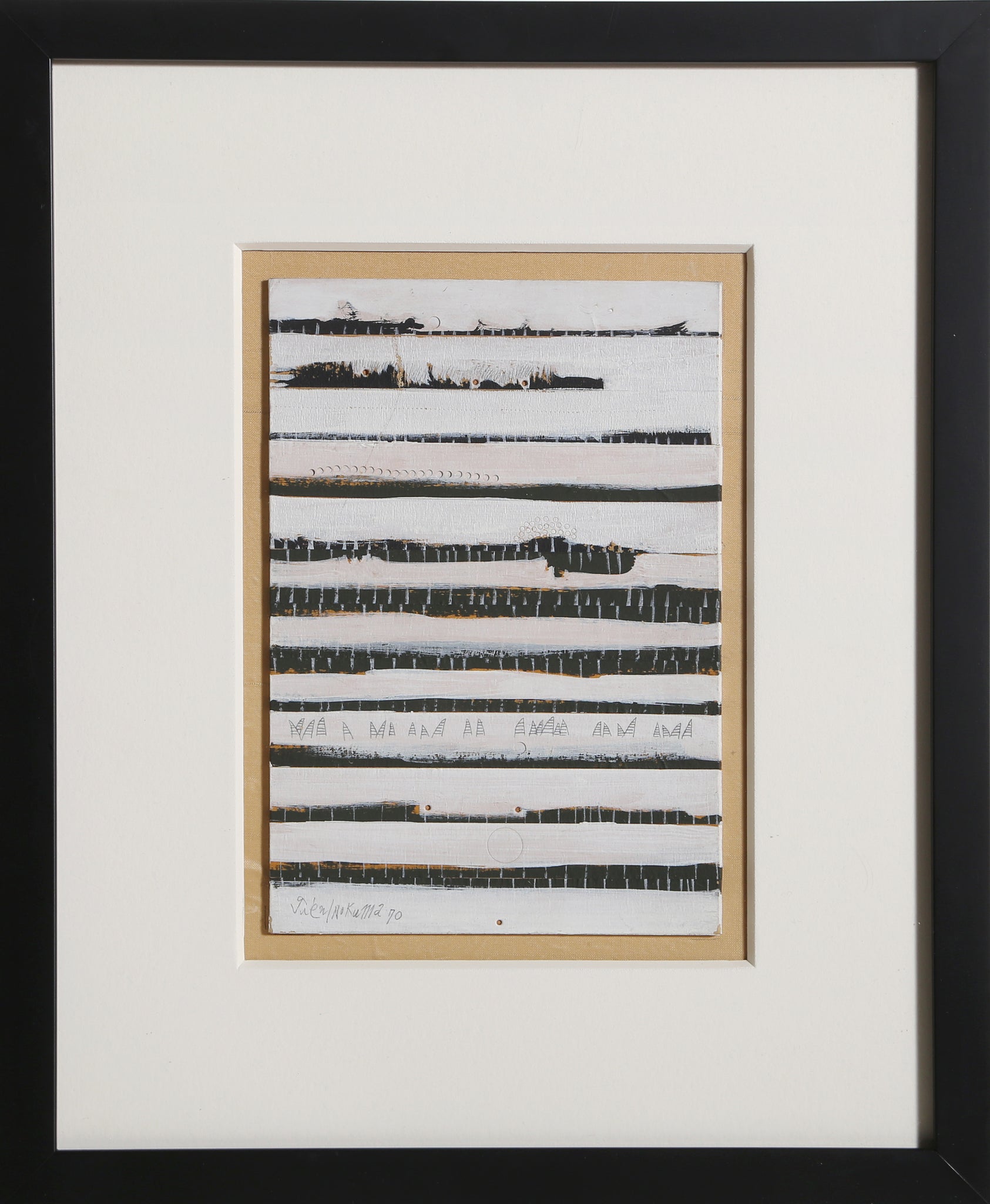 Genichiro Inokuma, Japanese (1902 - 1993) - Subterranean II. Year: 1970, Medium: Gouache, Graphite and Collage on board, signed and dated in pencil lower left, Size: 8.75 x 6.25 in. (22.23 x 15.88 cm), Frame Size: 16.25 x 13.5 inches